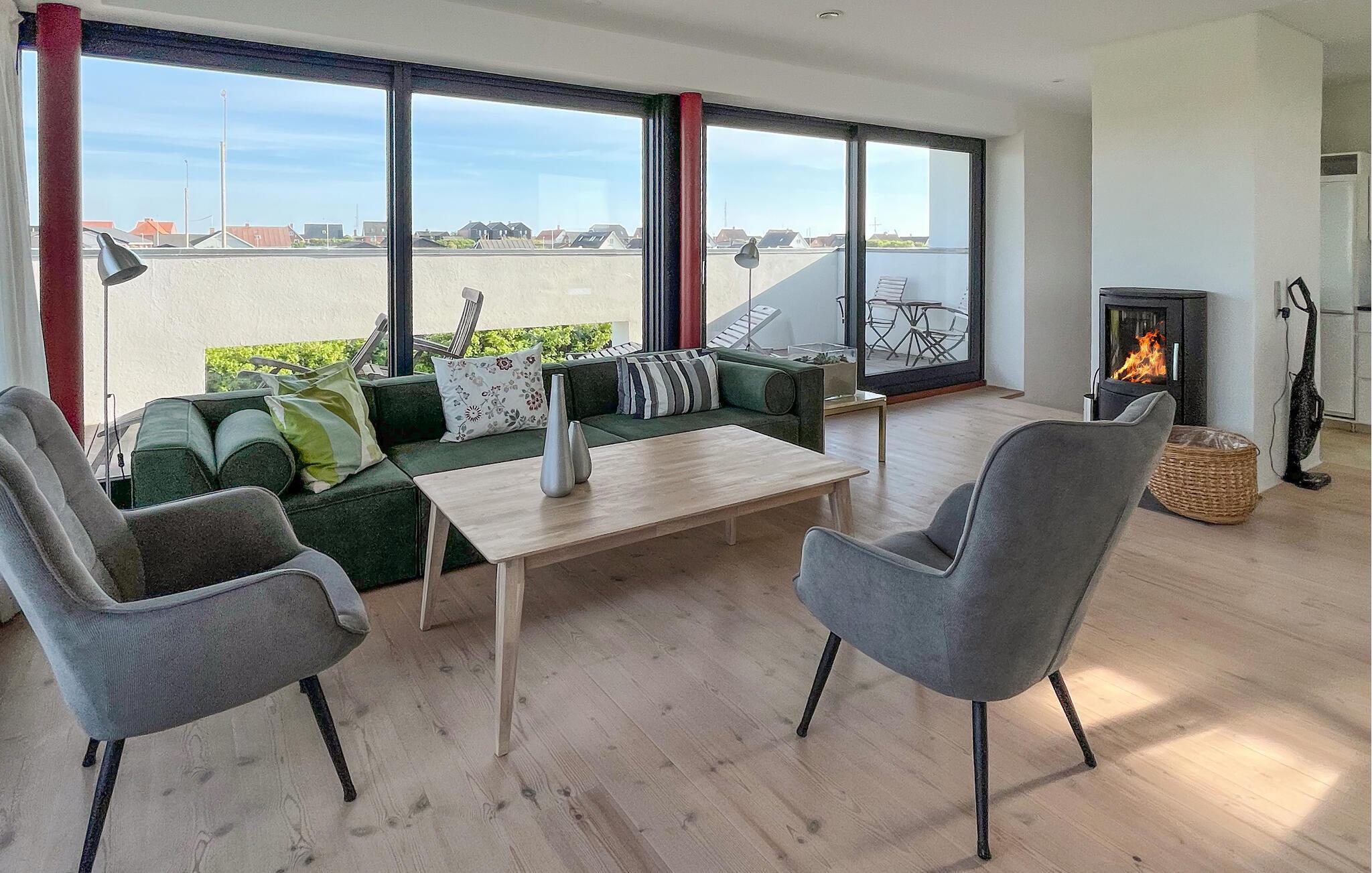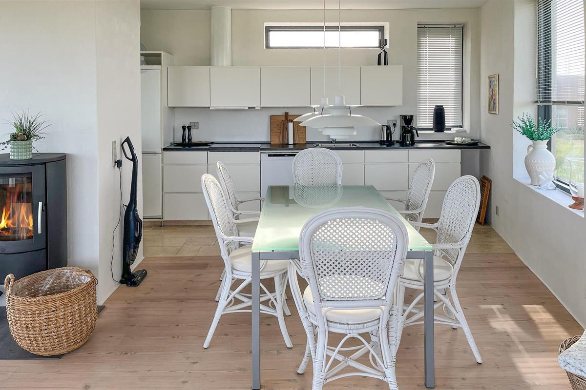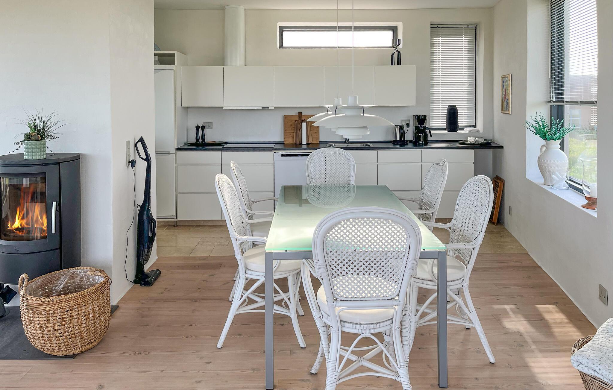 Beleef een droomvakantie in dit vakantiehuis in Thorsminde, gelegen tussen het rustige Nissum Fjord en de natuurlijke schoonheid van de Noordzee. Het moderne design, de ruime kamers en de nabijheid van de natuur maken dit de ideale keuze voor je volgende vakantie. Het lichte en ruime interieur van het huis nodigt je uit om te blijven hangen met zijn stijlvolle inrichting en grote ramen. De open keuken heeft alles wat je nodig hebt om heerlijke maaltijden te bereiden. Geniet van je maaltijd aan de stijlvolle eettafel of ontspan in de gezellige woonkamer met houtkachel. De badkamer met whirlpool zorgt voor ontspannende momenten na een lange dag op het strand.