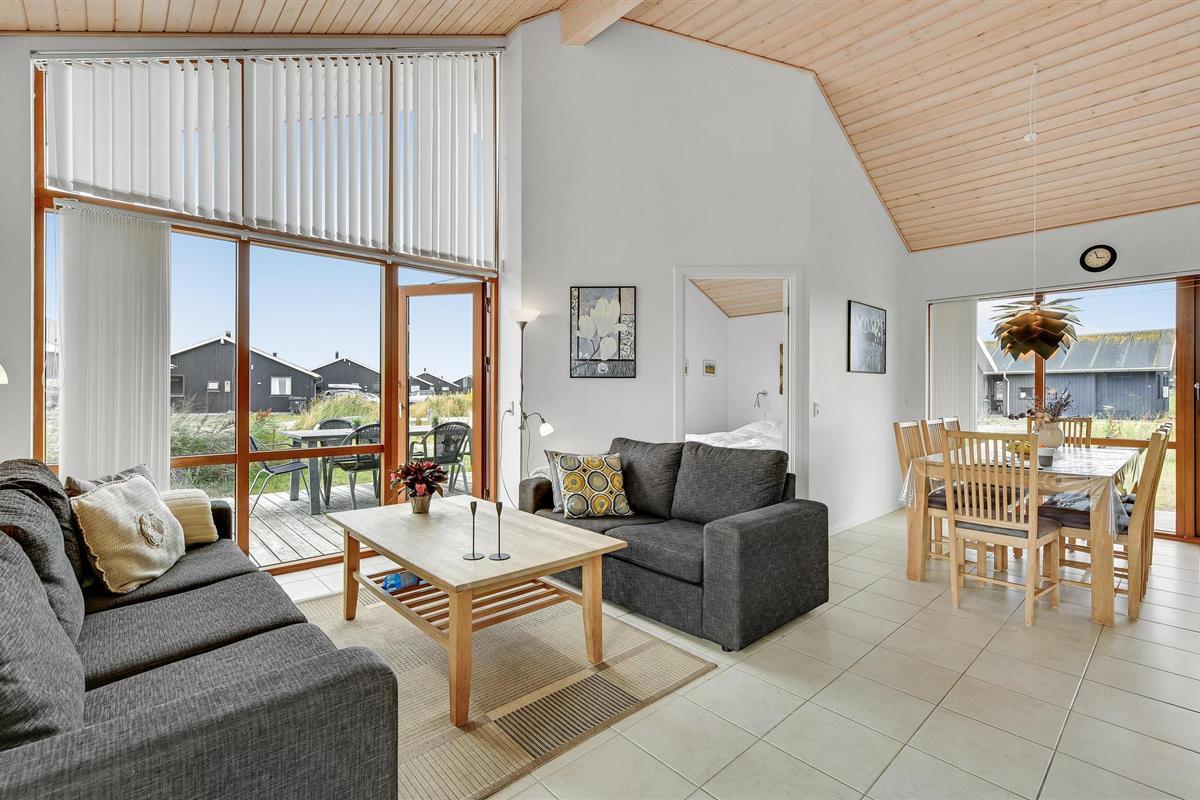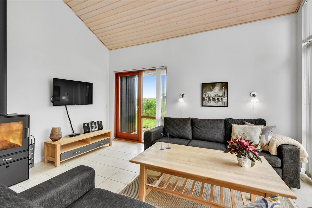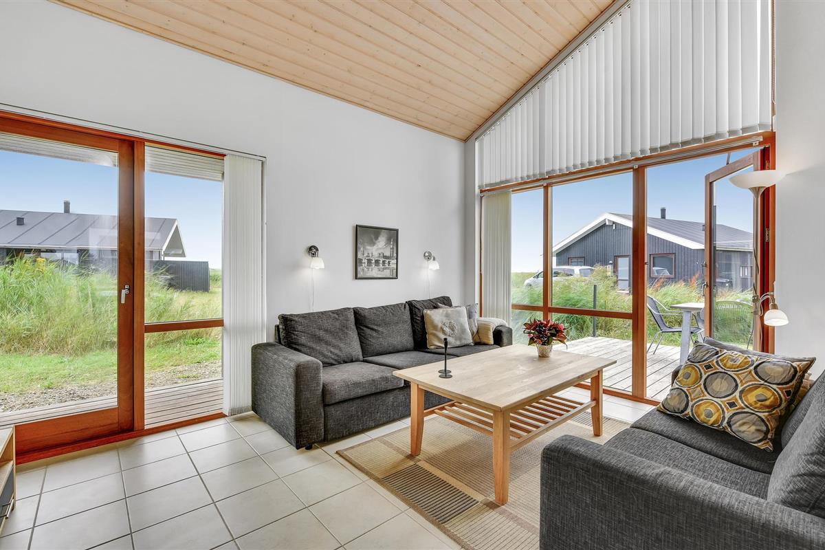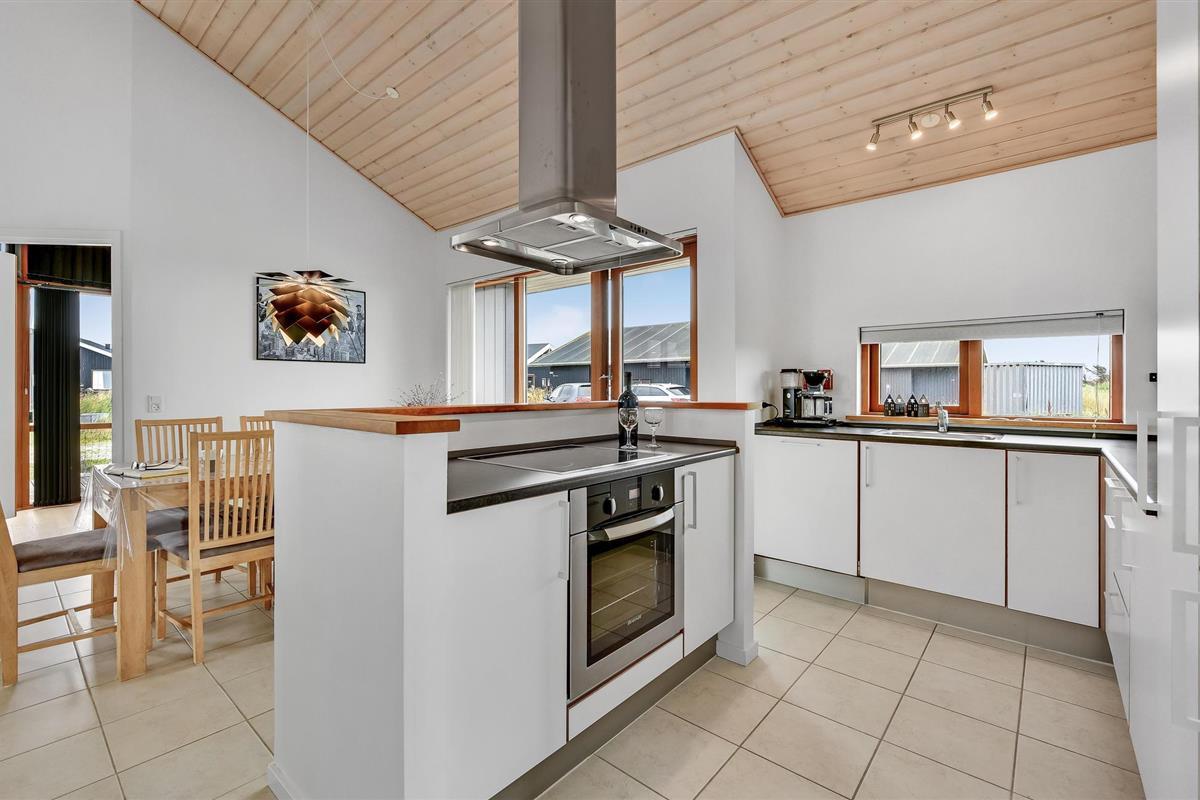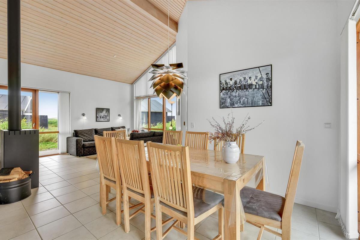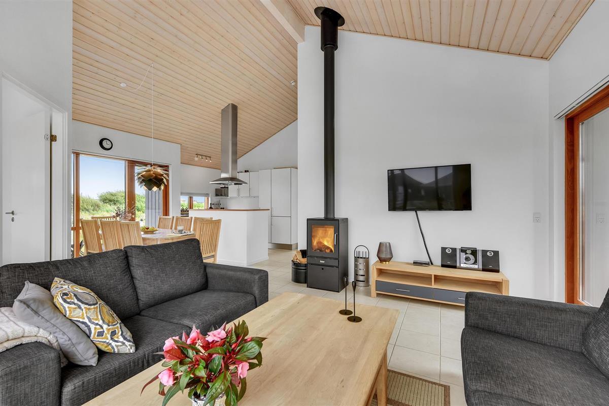 Dit vakantiehuis ligt aan de rand van Thorsminde in een klein vakantiehuizengebied met soortgelijke huizen. Het huis is goed ingericht en heeft drie slaapkamers en een tussenverdieping. Er zijn twee badkamers, waarvan één met sauna en whirlpool. De keuken is licht en staat in open verbinding met de woonkamer, waar een houtkachel voor een gezellige sfeer zorgt.