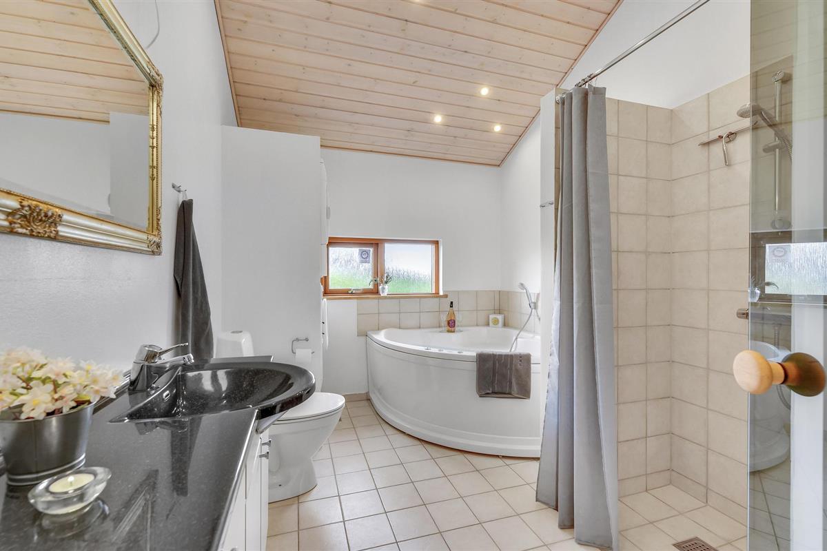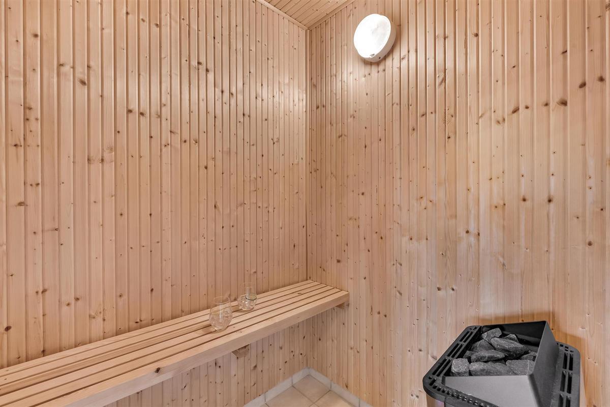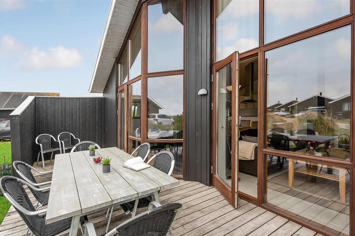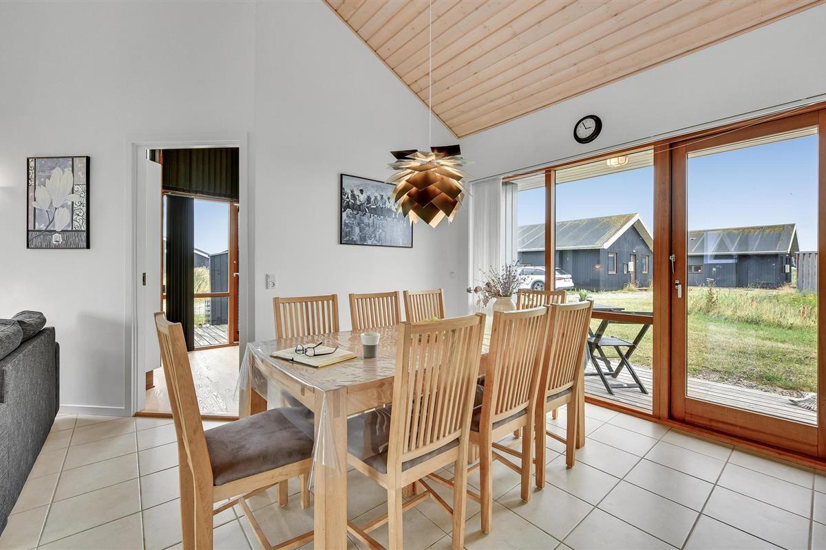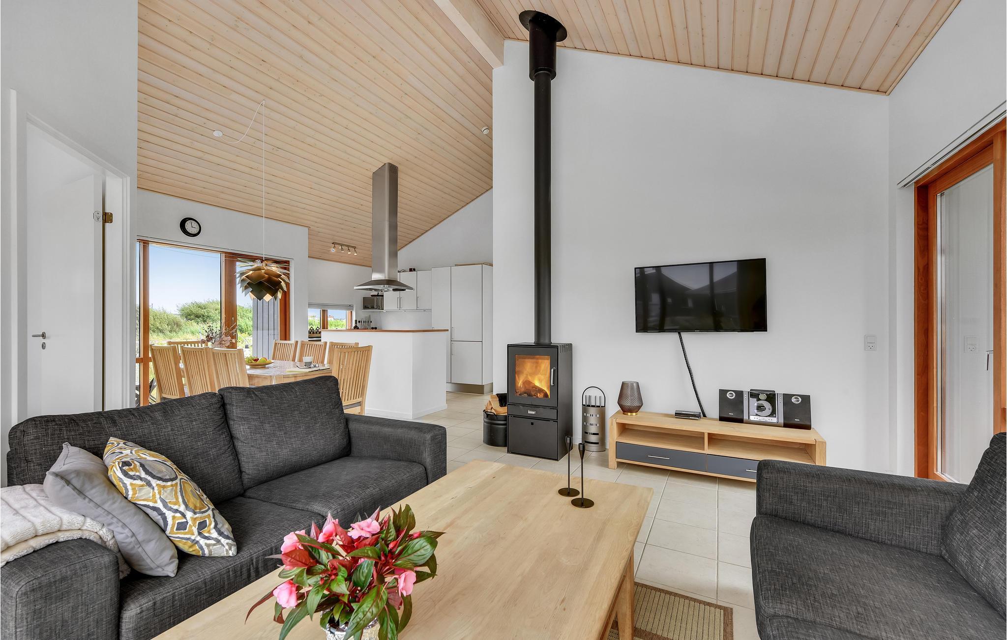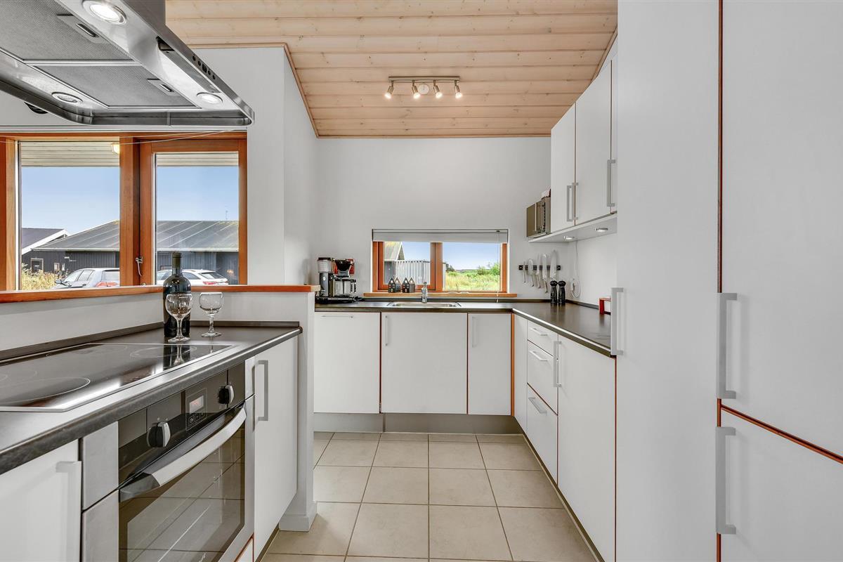 Dit vakantiehuis ligt aan de rand van Thorsminde in een klein vakantiehuizengebied met soortgelijke huizen. Het huis is goed ingericht en heeft drie slaapkamers en een tussenverdieping. Er zijn twee badkamers, waarvan één met sauna en whirlpool. De keuken is licht en staat in open verbinding met de woonkamer, waar een houtkachel voor een gezellige sfeer zorgt.