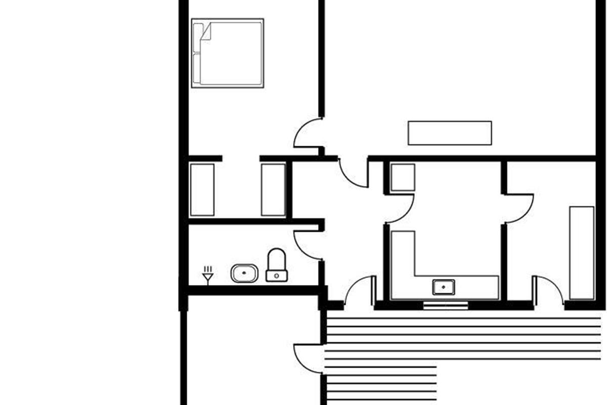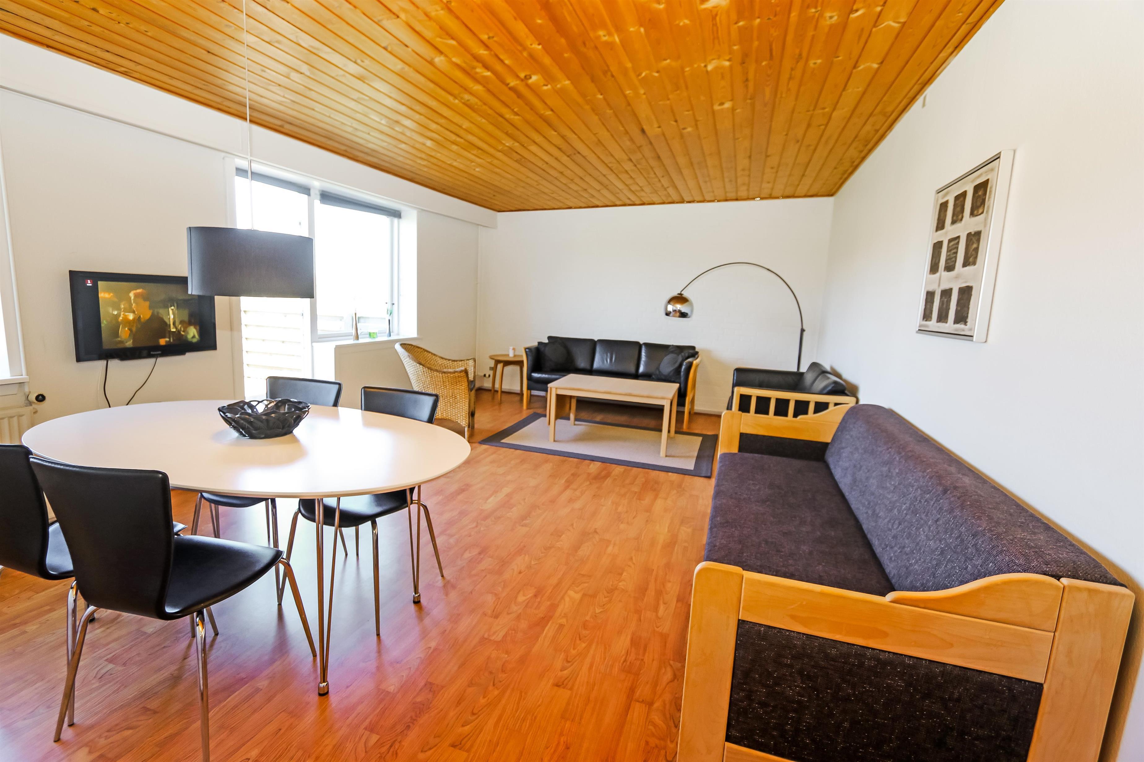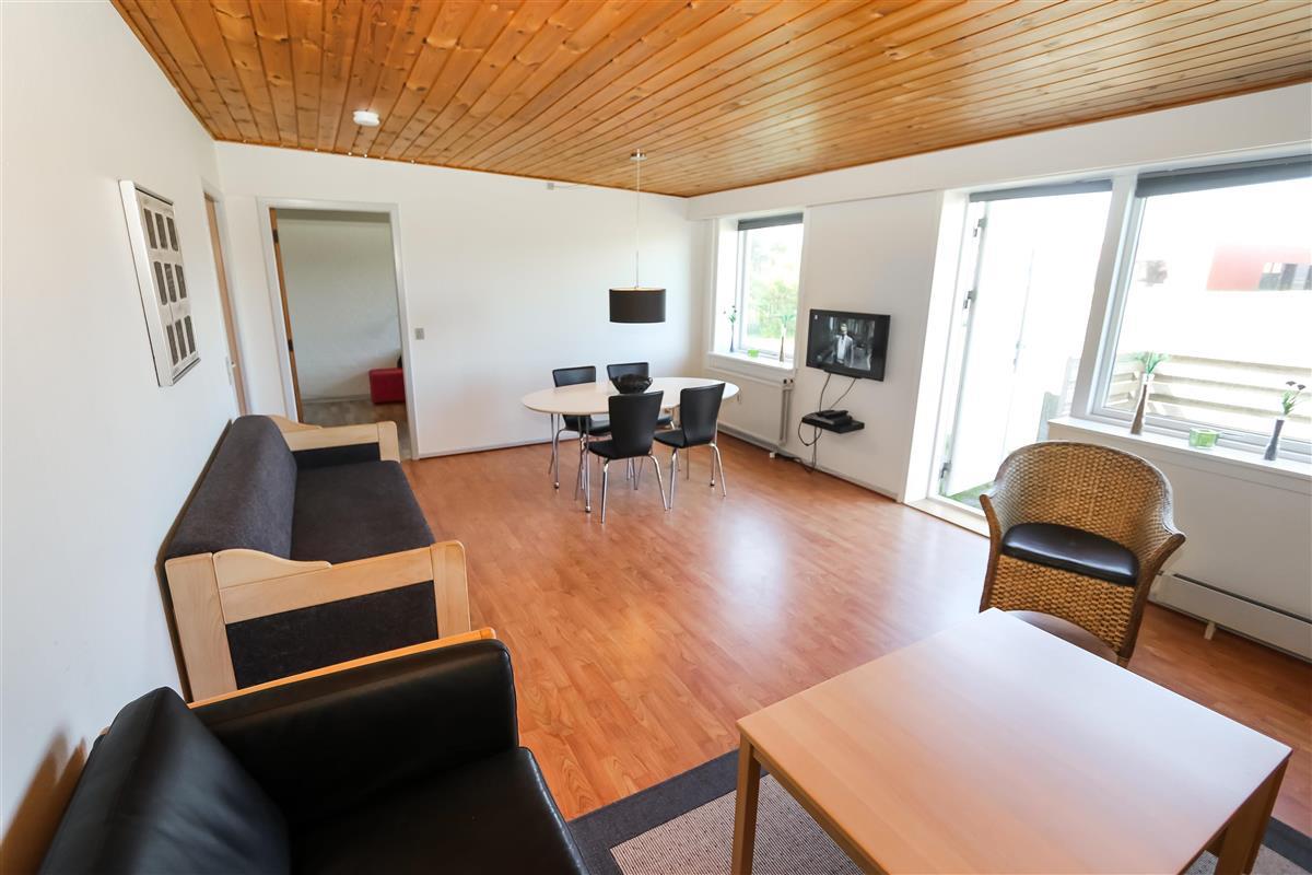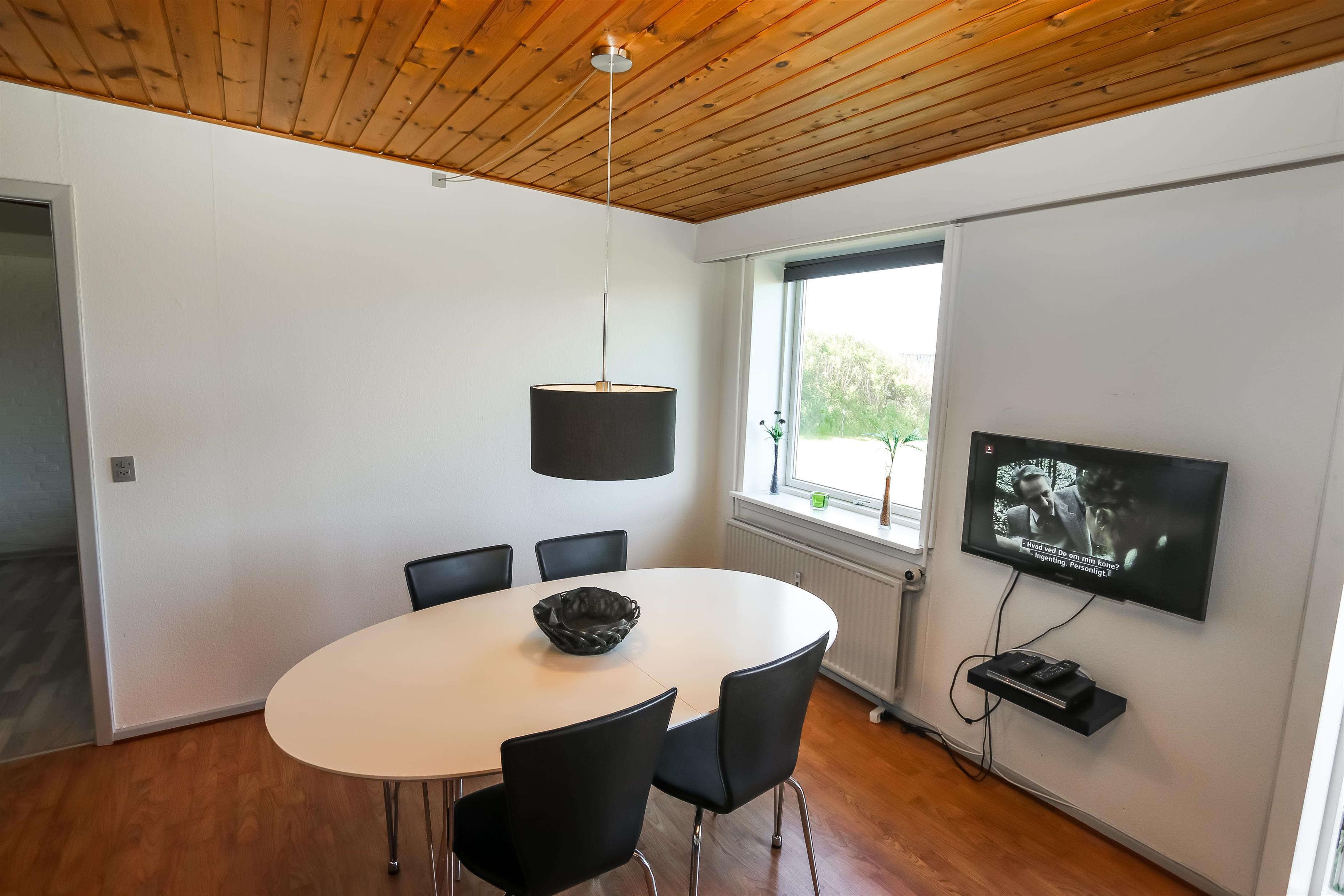 Gut eingerichtete Ferienwohnung auf 72 m² mit einem Schlafraum: 1DB. In Verbindung mit dem Schlafraum gibt es einen Walk in Closet. Der Wohnraum ist mit Couch/Doppelbettsofa, Esstisch, TV mit dänischen und deutschen Programmen, Radio ausgestattet. Gut ausgestattete Küche mit Cerankochfeld, Abzugshaube, Geschirrspüler und Kühlschrank mit Gefrierfach. Flur mit extra Waschbecken und Gefriertruhe. Der perfekte Raum zur gesonderten Aufbewahrung von Fisch oder anderem Gefriergut. Grosses Badezimmer mit Toilette, Waschbecken und Dusche. Es gibt Holzboden im Wohnraum und Linoleum in der Küche und im Badezimmer, der Schlafraum ist mit Teppichboden ausgelegt. Kinderstuhl und Kinderbett. Nichtraucher-Wohnung. 1 Haustier ist erlaubt.