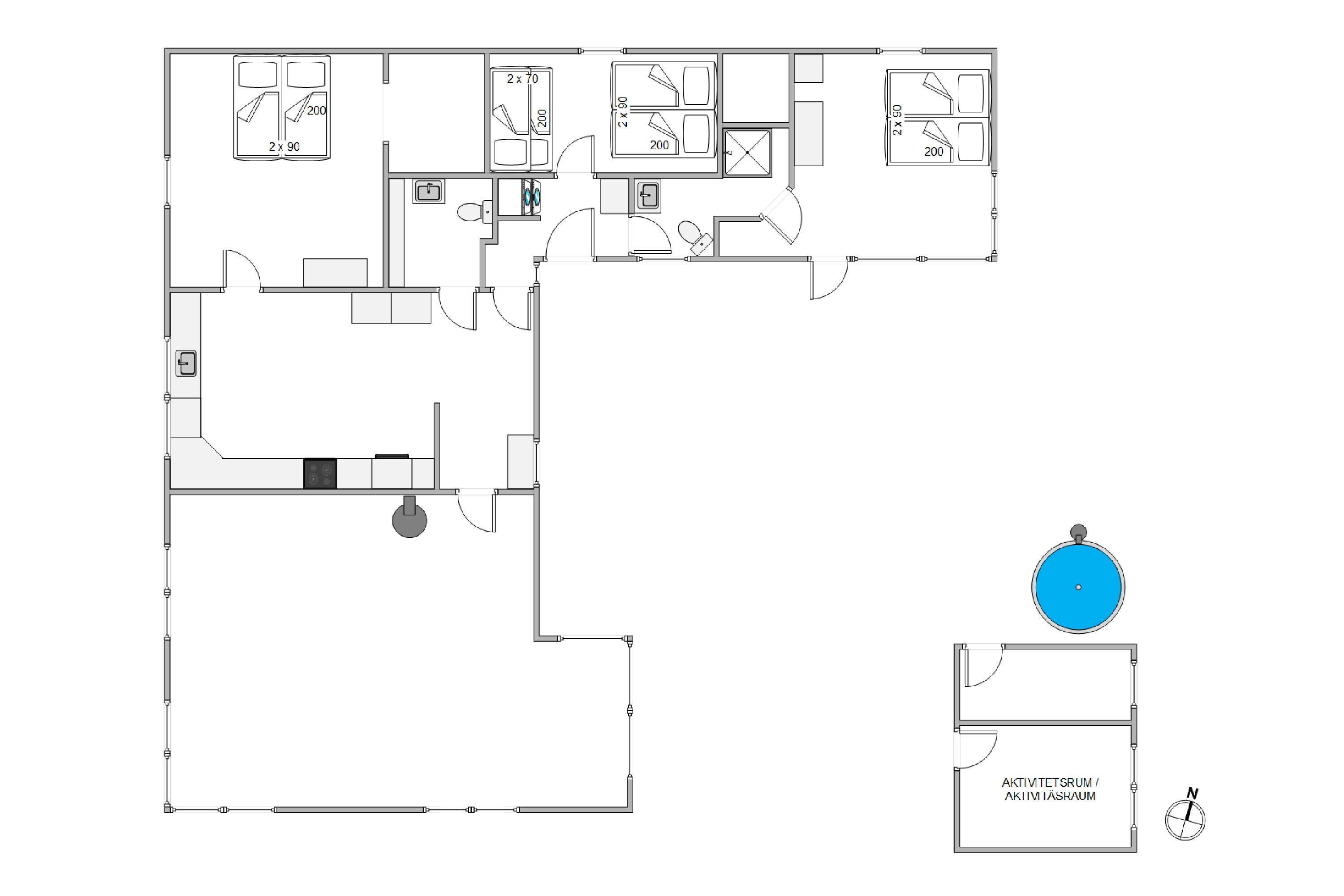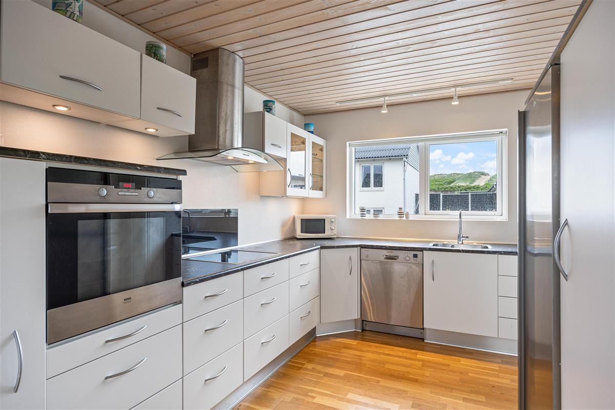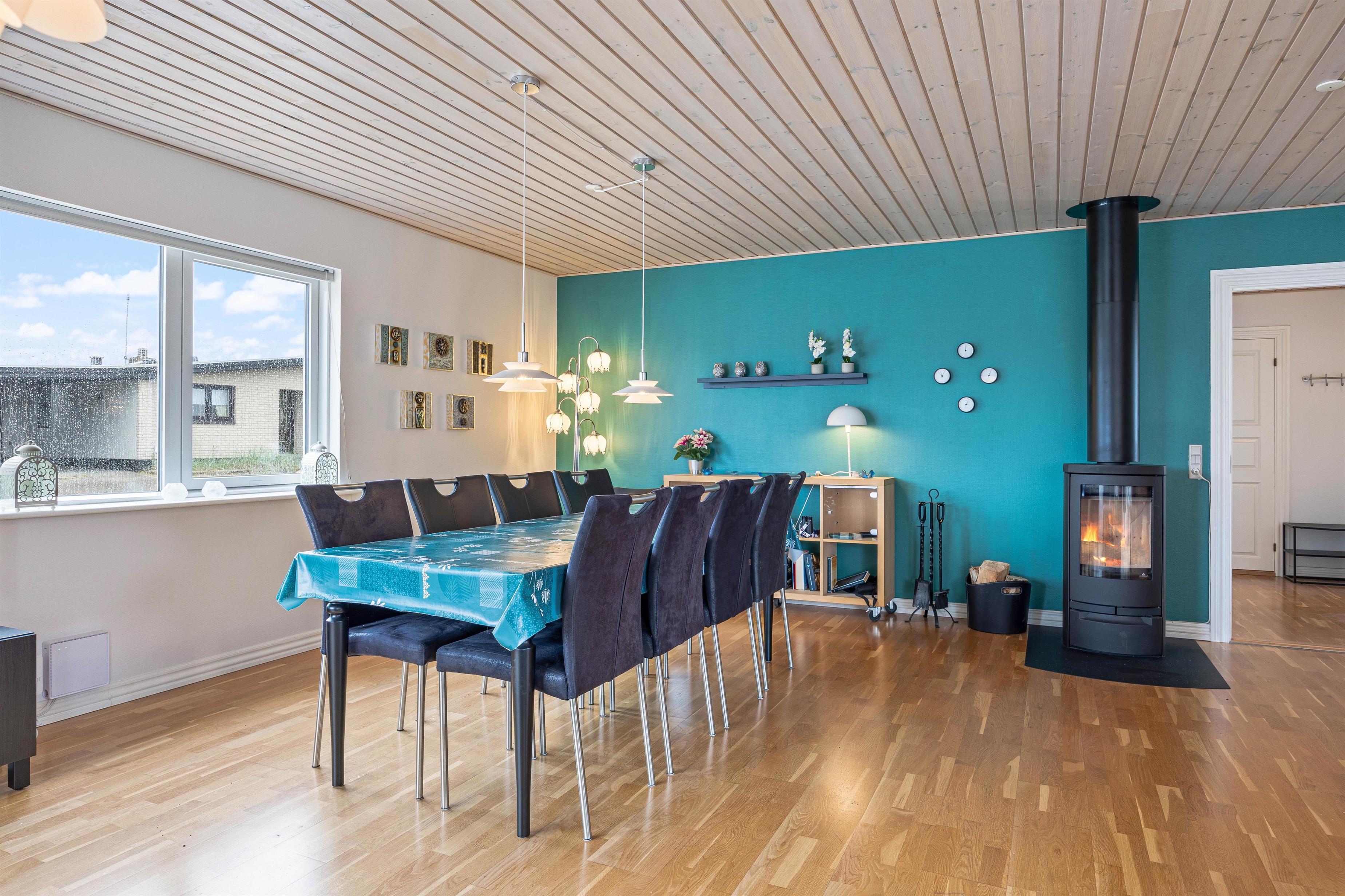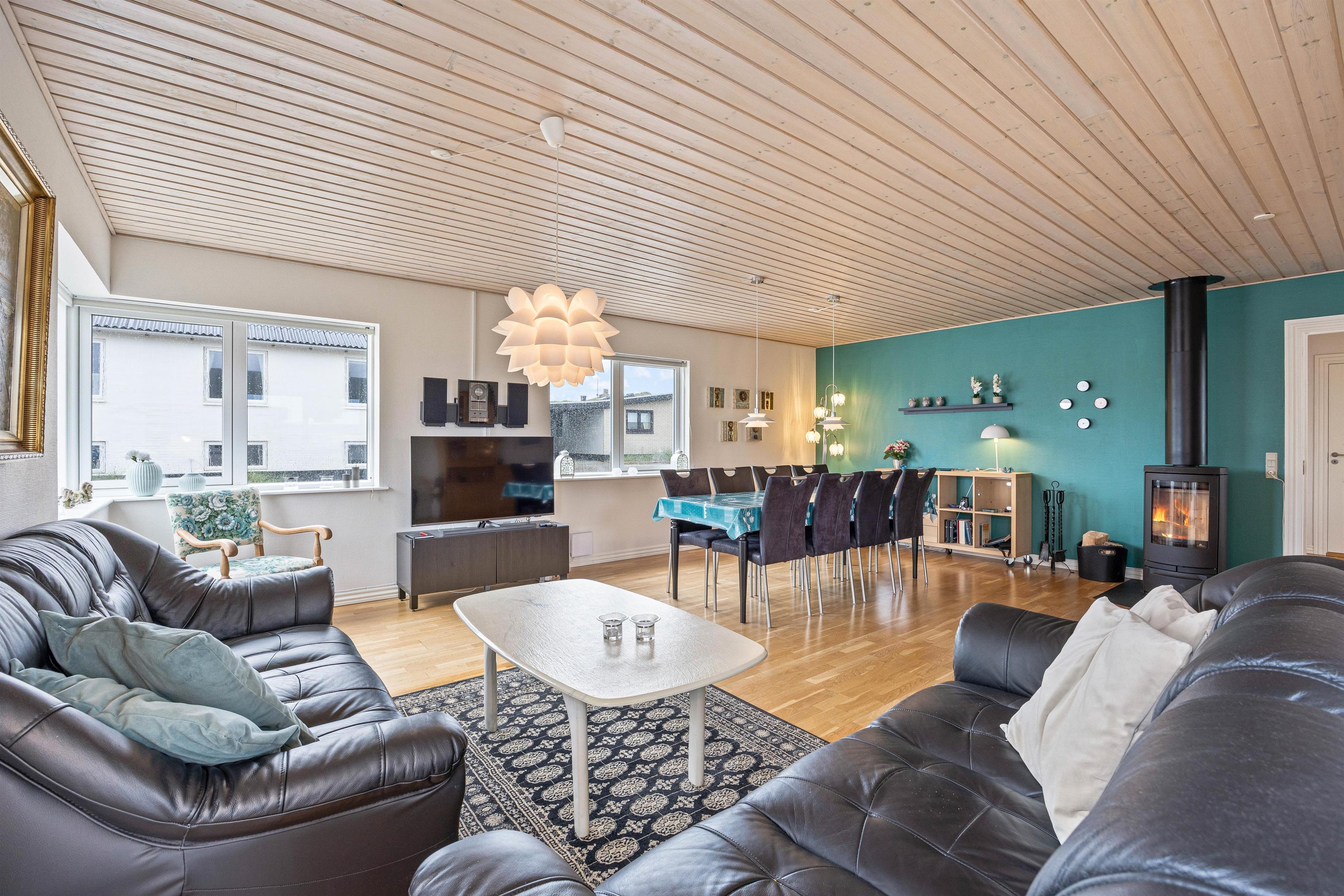 The holiday home provides everything needed for a relaxing holiday. With three bedrooms featuring three double beds and one bunk bed, everyone will find their ideal sleeping space. The welcoming wood-burning stove in the living room is perfect for relaxing evenings, while underfloor heating in the bathroom adds extra comfort. A dishwasher, washing machine and tumble dryer mean less time spent on household tasks and more time for relaxation.