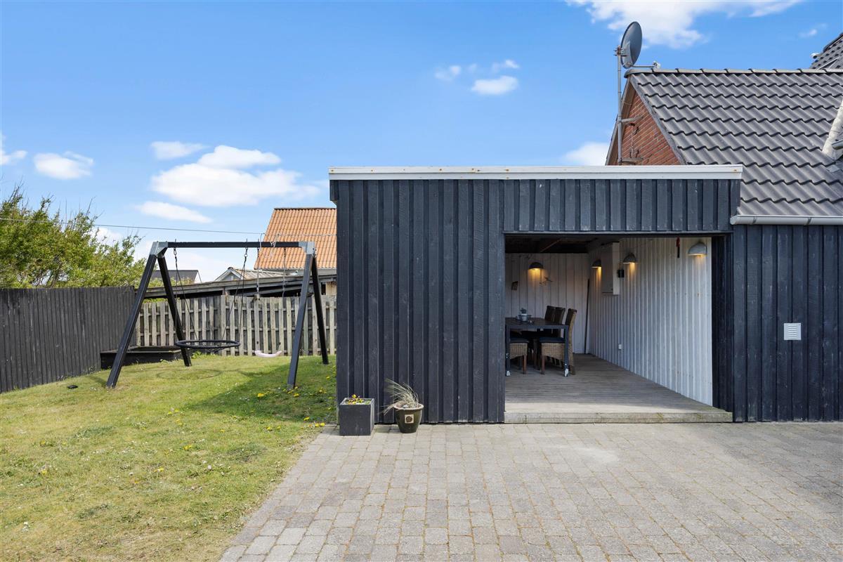 The holiday home features two terraces. The open terrace offers magnificent views across Nissum Fjord, whilst the second terrace, at the rear of the holiday home, is fully enclosed. Here, children and dogs can play safely without wandering off. A swing and sandpit provide additional entertainment for younger guests.