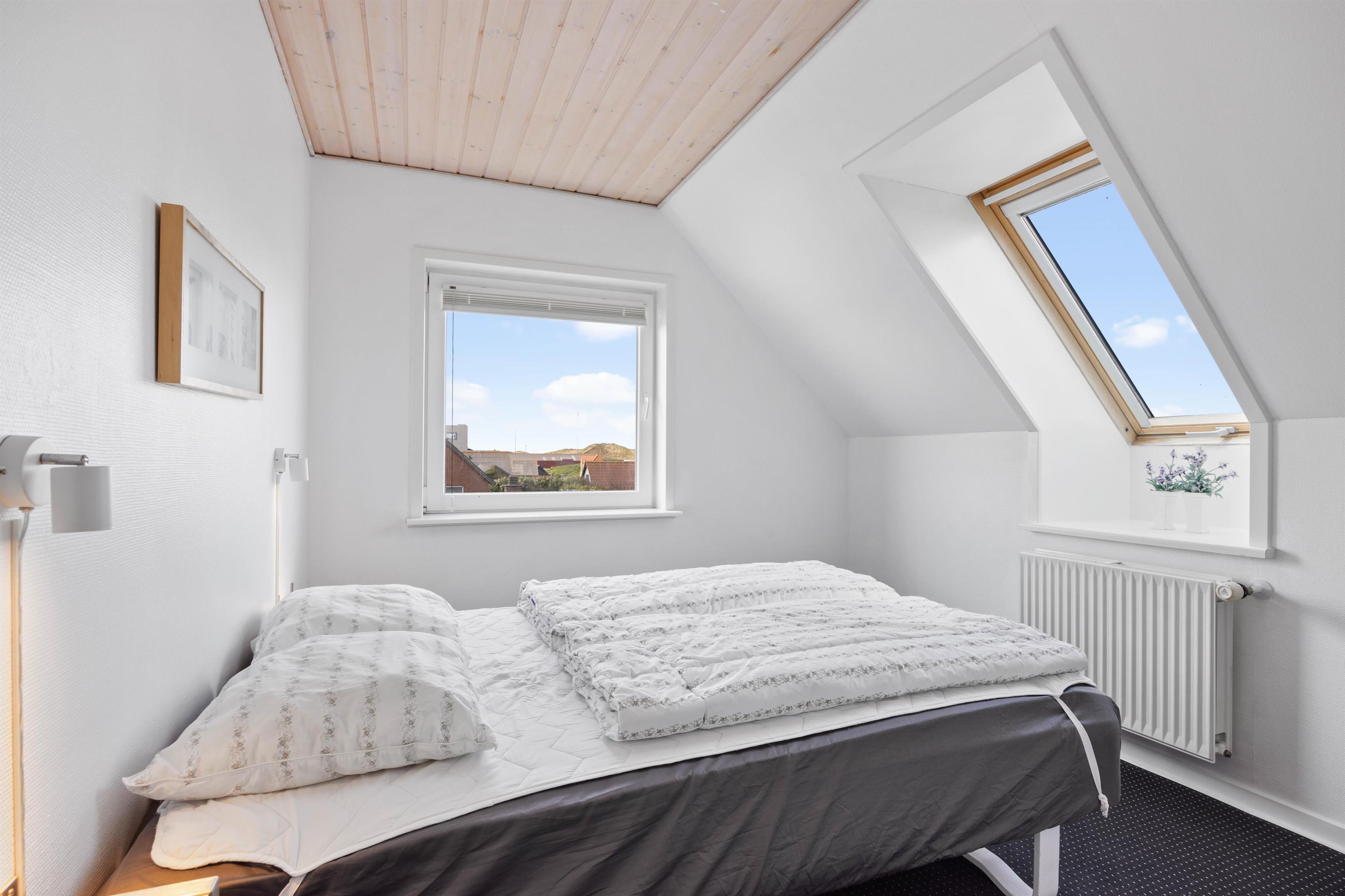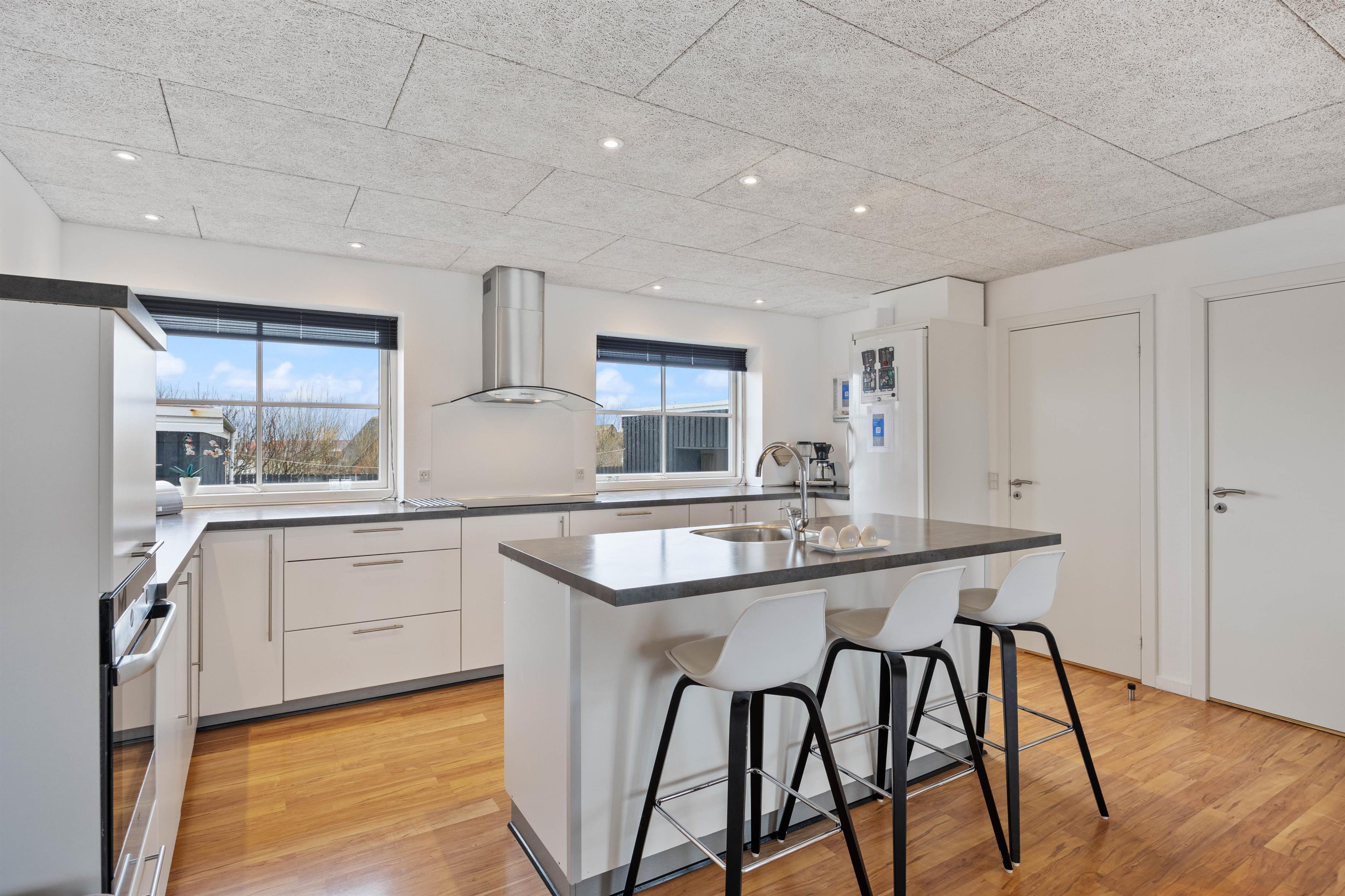 This welcoming holiday home greets you with bright interiors and abundant windows, allowing natural light to flood in whilst offering panoramic views of Nissum Fjord from the living room. The heart of the home is the spacious open-plan area combining the kitchen, living room and dining space. Here you can cook together, enjoy board games or plan your holiday activities. To minimise holiday housework, the holiday home is equipped with a dishwasher, washing machine and tumble dryer.