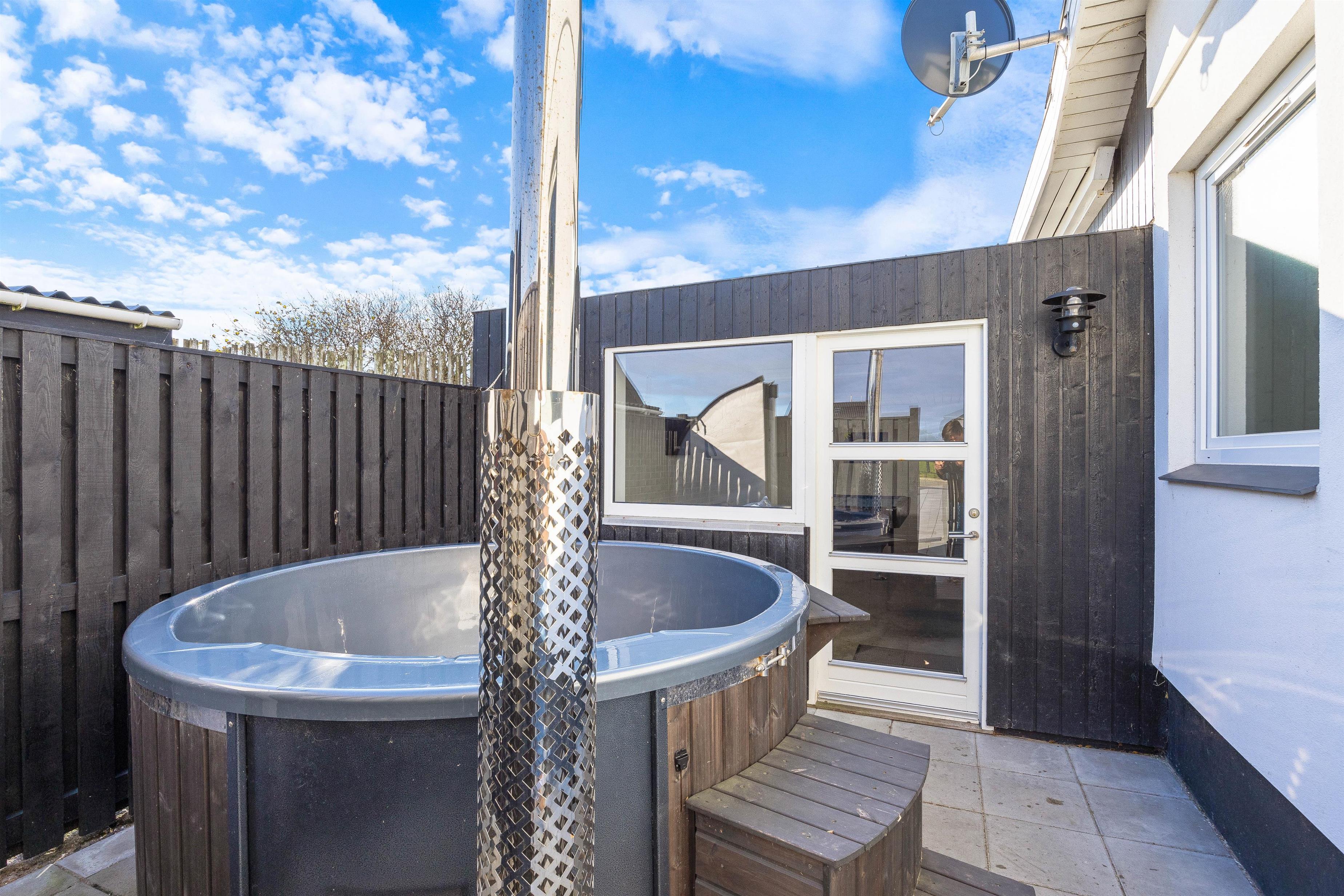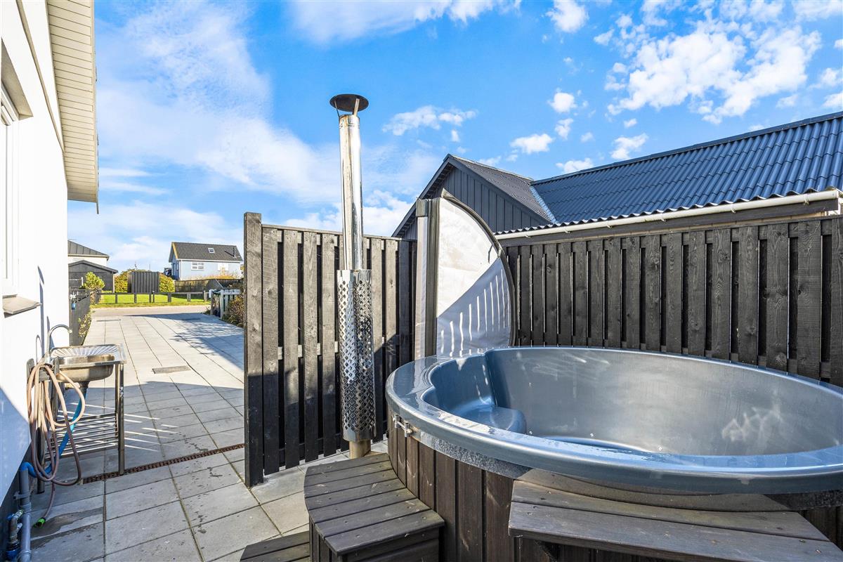 The large garden features comfortable garden furniture for outdoor relaxation. You can prepare delicious meals on the gas barbecue while children enjoy themselves on the swing or in the sandpit. A special highlight is the traditional Nordic hot tub in the outdoor area, perfect for relaxation at any time of day.