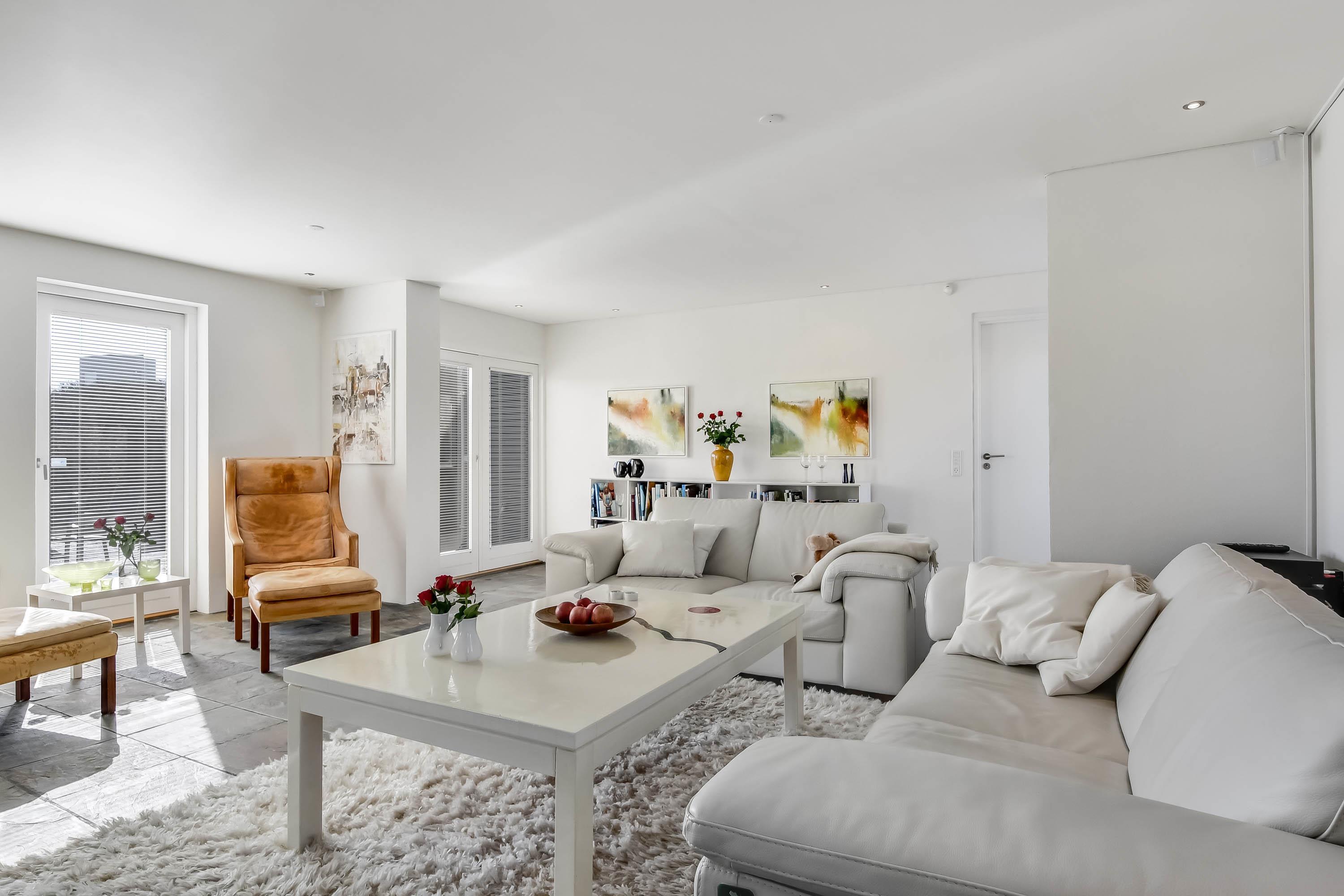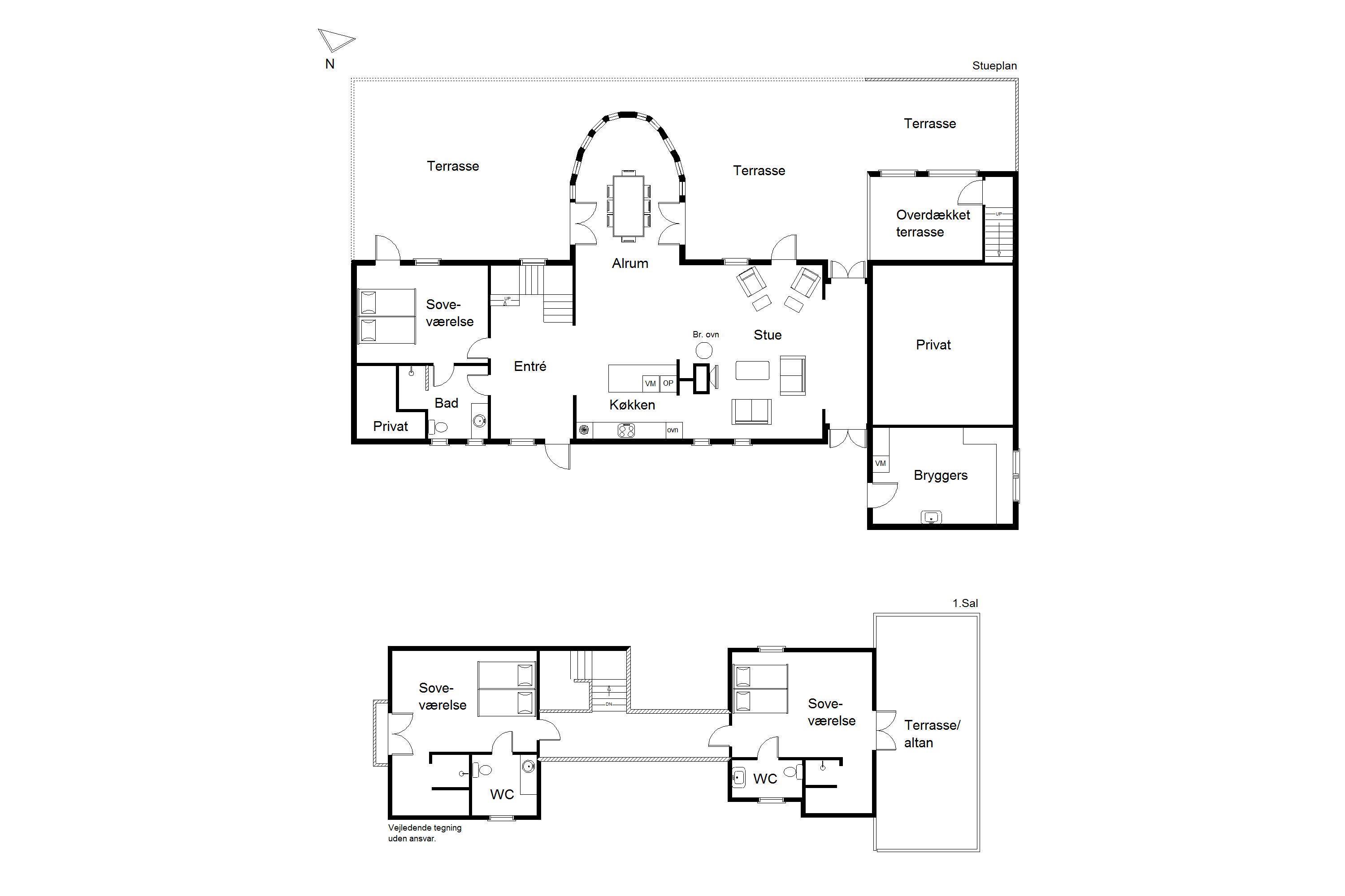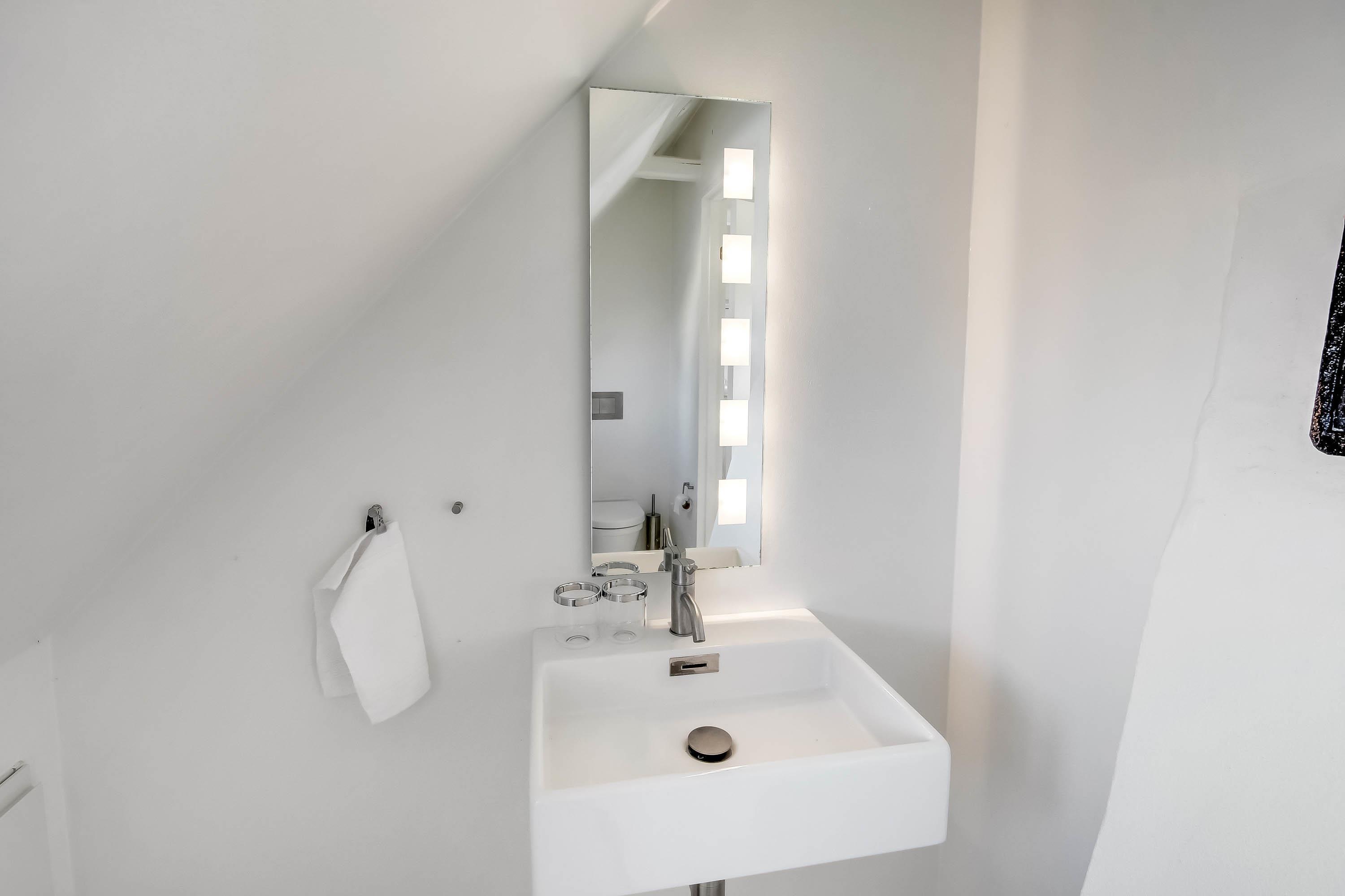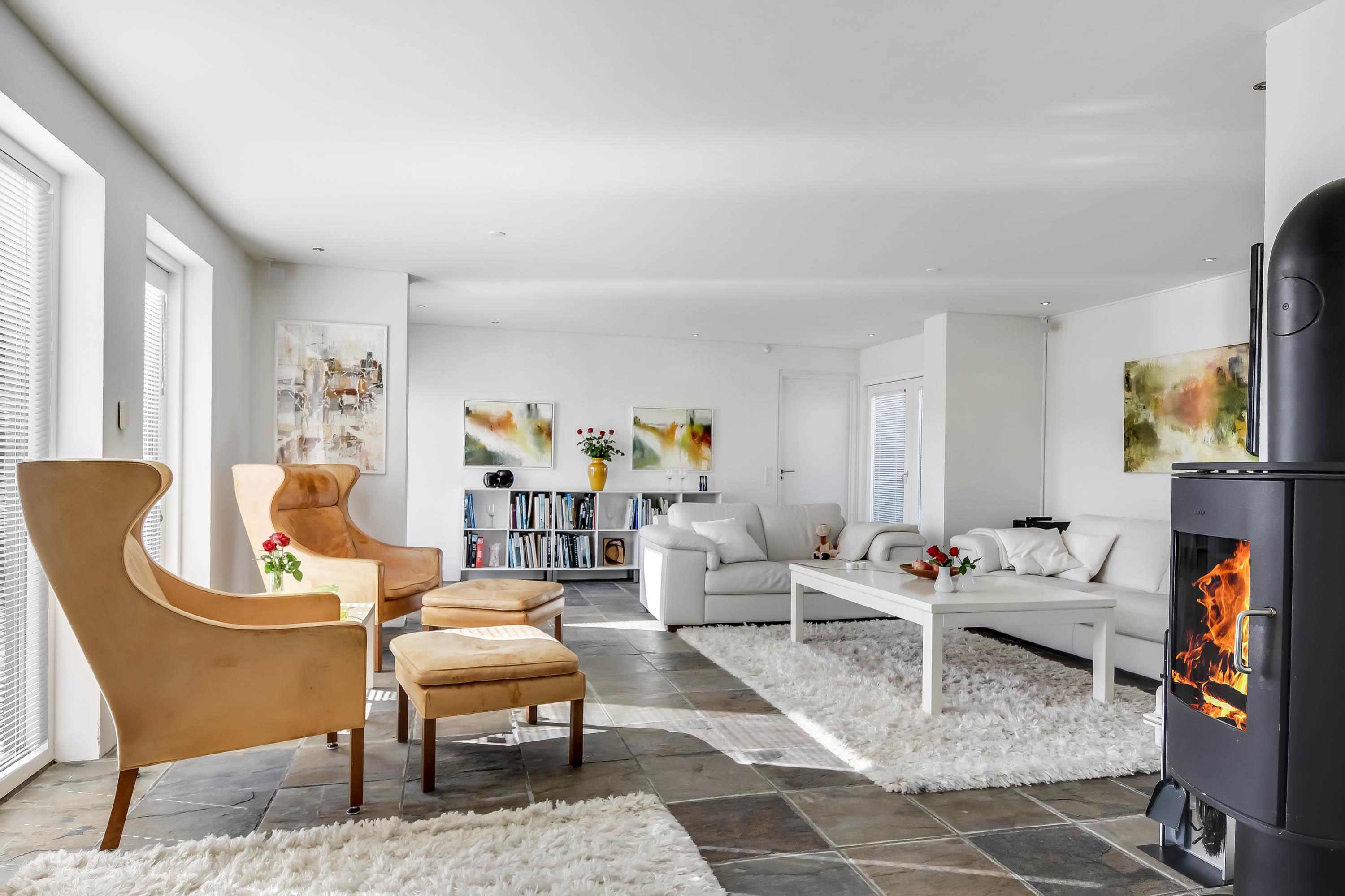 Layout: spacious entrance areawith stairs to the first fllor. Brightly furnished living room with slate floor, open white designer kitchen, dining area and beautiful wood-burning stove. A total of 3 bedrooms, all with wooden floors, good double beds and each with its own bathroom are located on the 1st floor.