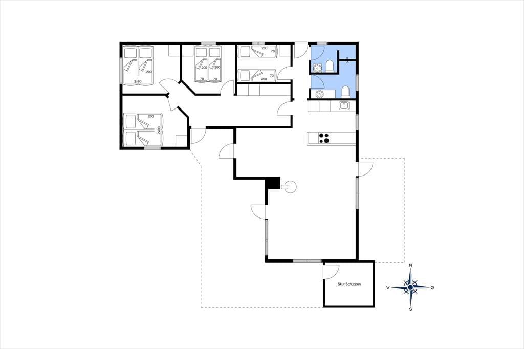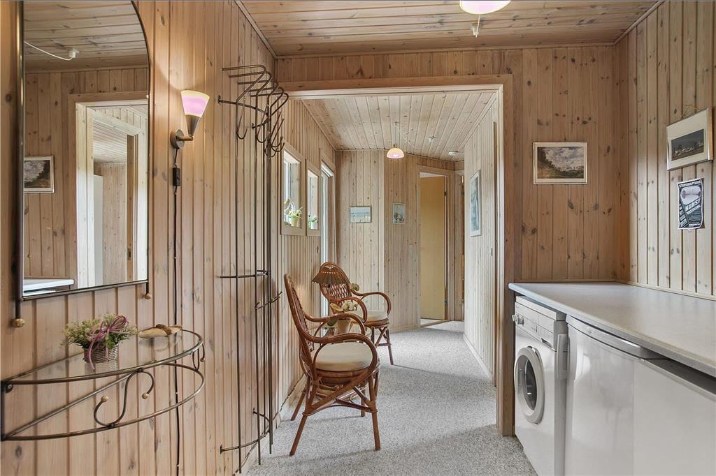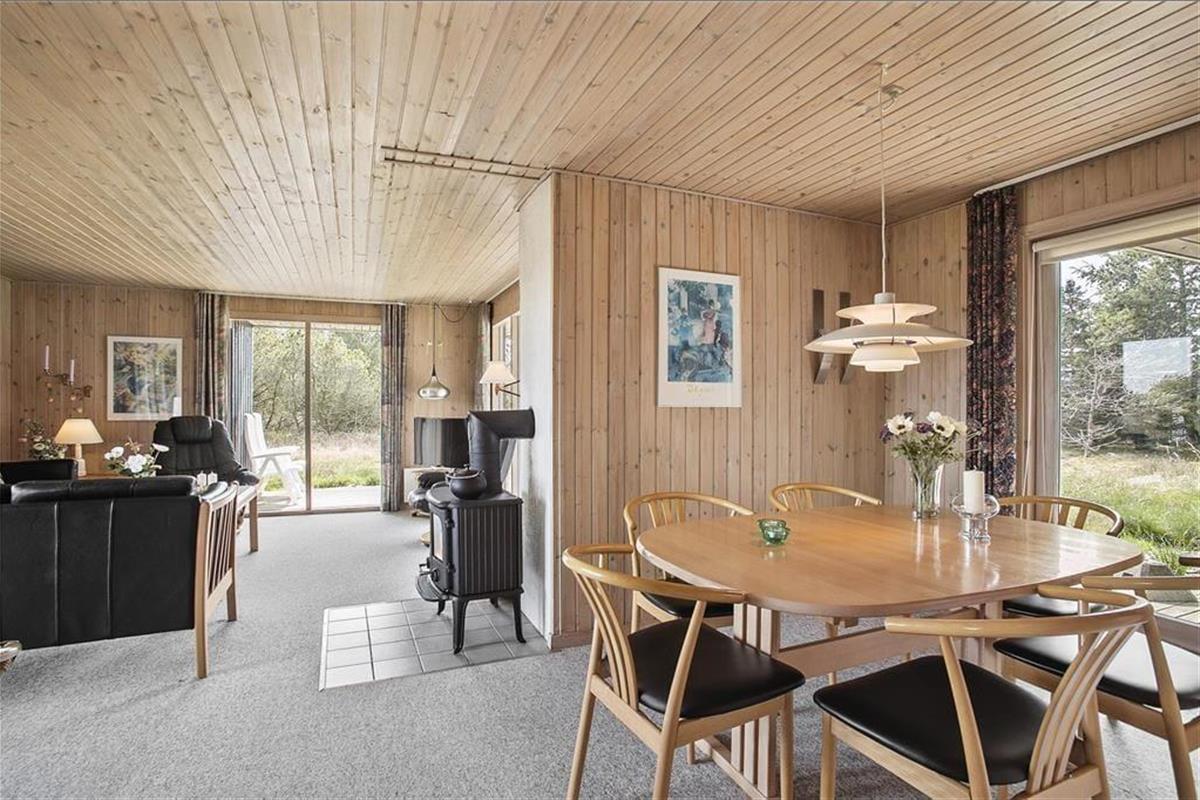Das Grundstück liegt am Ende einer Sackgasse. Die andere Seite ist unbebaut, sodass Sie nichts anderes als schöne, weitläufige Natur erwartet. Ihr Sommerurlaub lädt daher zum Zurücklehnen und Genießen der Ruhe ein, eventuell unterbrochen durch den ein oder anderen schönen Spaziergang in der näheren Umgebung. Ihr Weg könnte Sie beispielsweise an den nur 700 Meter entfernten Strand führen. Thorup Strand ist für seine nachhaltige Küstenfischerei bekannt. Zu den besonderen Urlaubserlebnissen in dieser Gegend zählt es, einmal zuzuschauen, wie die Fischkutter mit ihrem täglichen Fang in traditioneller Weise hinauf an den Strand gezogen werden. Selbstverständlich lockt der kleine Fischerort auch mit seinem schönen Strand, der zu erfrischenden Bädern in den blauen Nordseewellen einlädt. Auch den ein oder anderen Ausflug zu den “Svinkløvene”, nach Klim oder an die anderen traumhaften Strände der Jammerbucht können wir Ihnen nur wärmestens ans Herz legen.