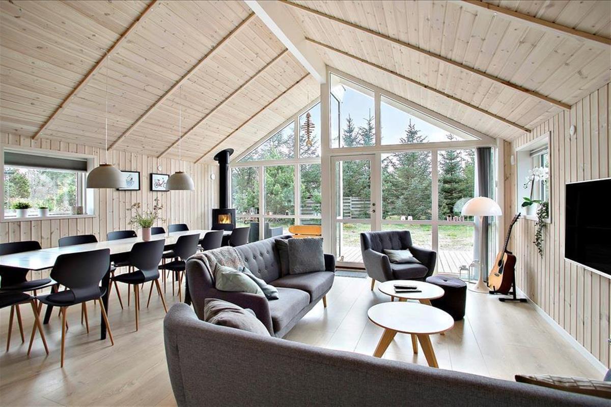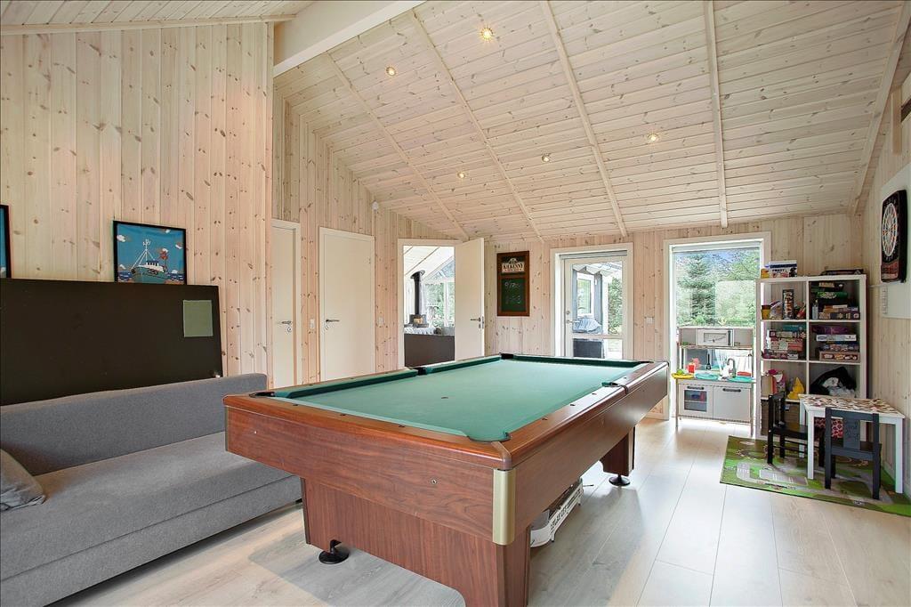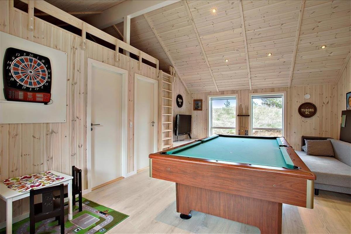 Freuen Sie sich auf einen Urlaub in einem Haus, in dem einfach alles funktioniert und die einfache und komfortable Einrichtung eine Augenweide ist. . Eines der tollen Details, die das luxuriöse Wohngefühl maßgeblich erhöhen, ist der attraktive, runde Whirlpool, der zusammen mit der Sauna im größeren der beiden Badezimmer liegt. Der Kaminofen, die offene Küchenabteilung und die riesige Fensterpartie am Giebel sind nur einige der Dinge, die Ihre Stunden im Wohnraum zu einem ganz besonders gemütlichen und behaglichen Erlebnis machen. Wer gerne aktiv ist wird sich mit Sicherheit im Aktivitätsraum des Hauses wohlfühlen, in dem unter anderem ein Billardtisch und eine PS4 für Spaß und Unterhaltung sorgen. Allabendlich begeben Sie sich in vier Schlafräumen zur Ruhe. Da der Aktivitätsraum im Übrigen auch mit einem Schlafsofa ausgestattet ist, beherbergt dieses traumhafte Urlaubsdomizil bis zu 10 Gäste.