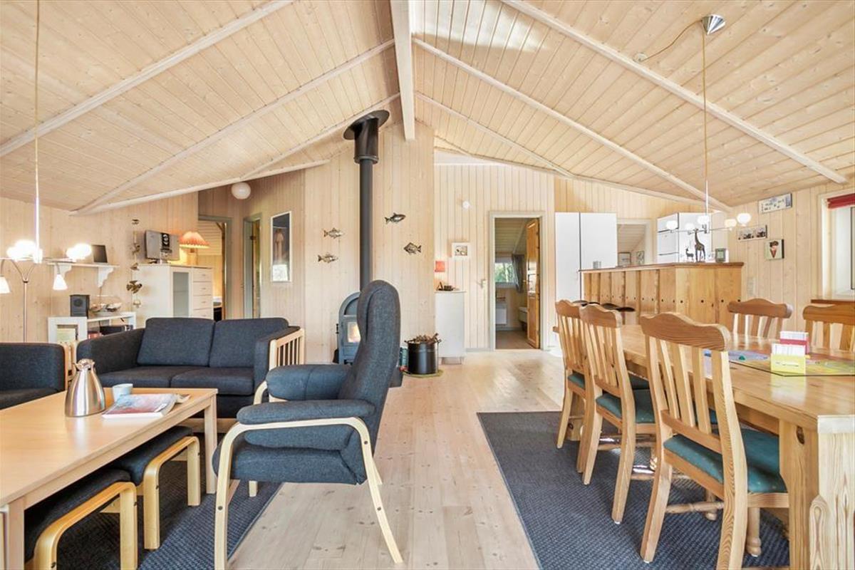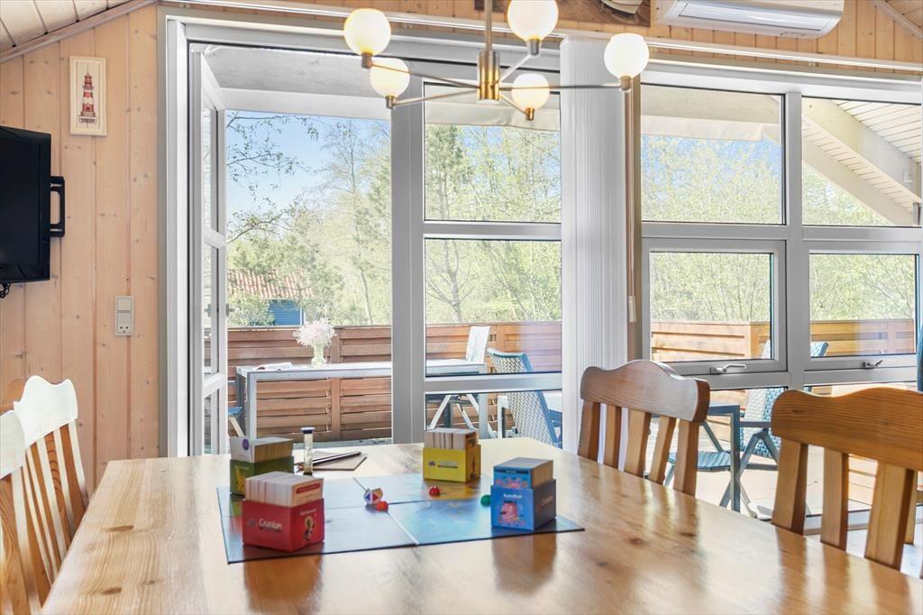 Sie wohnen in ruhiger Lage in der Sackgasse Tyttebæstien. Das Gebiet ist angenehm grün und befindet sich nah am Waldgebiet Vester Thorup Klitplantage. Urlauber, die nach einem friedvoll und inmitten schöner Natur gelegenen Ferienhaus Ausschau halten, sind hier bestens aufgehoben. Den Waldspielplatz Thorup Strands erreichen Sie zu Fuß nach rund zehn Minuten. Lediglich eineinhalb Kilometer trennen Sie vom Kutteranlandeplatz der kleinen Fischersiedlung, an dem nach alter Tradition auch heute noch die Fischerboote an den Strand hinauf gezogen werden. Beim rötlichen Fischhändler können Sie schonend gefangenen Frischfisch kaufen. Alternativ können Sie sich gleich vor Ort mit köstlichen Fischgerichten verwöhnen lassen, die Sie an den Tischen und Bänken direkt vor dem Strand genießen - eine schönere Kulisse dürfte schwer zu finden sein! Entlang der Nordsee reihen sich zahlreiche schöne Küstenorte und Sehenswürdigkeiten aneinander. Hierzu zählen beispielsweise der Vogelfelsen Bulbjerg und die Hafenstadt Hanstholm, die unmittelbar an den Nationalpark Thy grenzen. Gen Osten erwartet Sie Svinkløv mit seinem berühmten Badehotel, in dem Sie unbedingt einmal einen Nachmittagskaffee genießen sollten. Der Höhenzug Svinkløvene begeistert mit traumhaften Panoramaausblicken über die Jammerbucht.