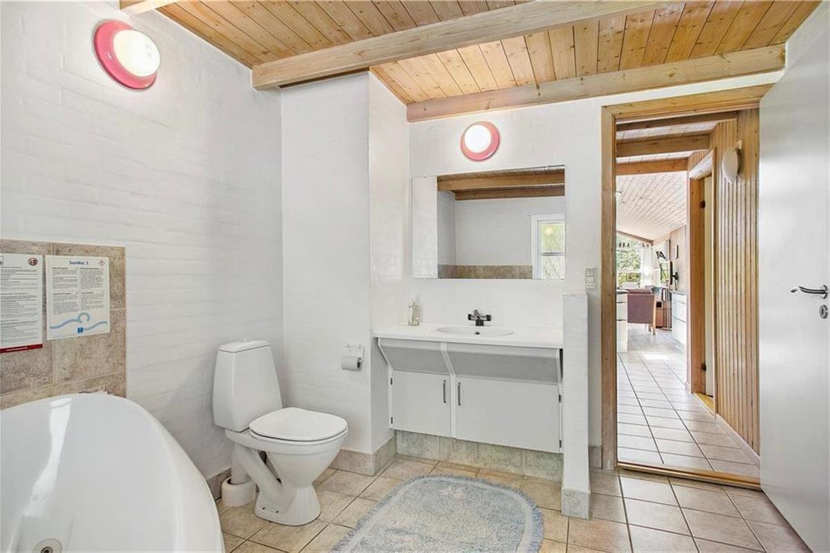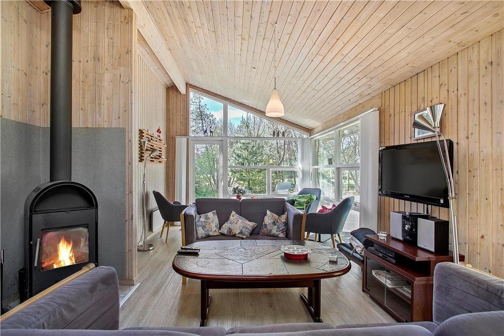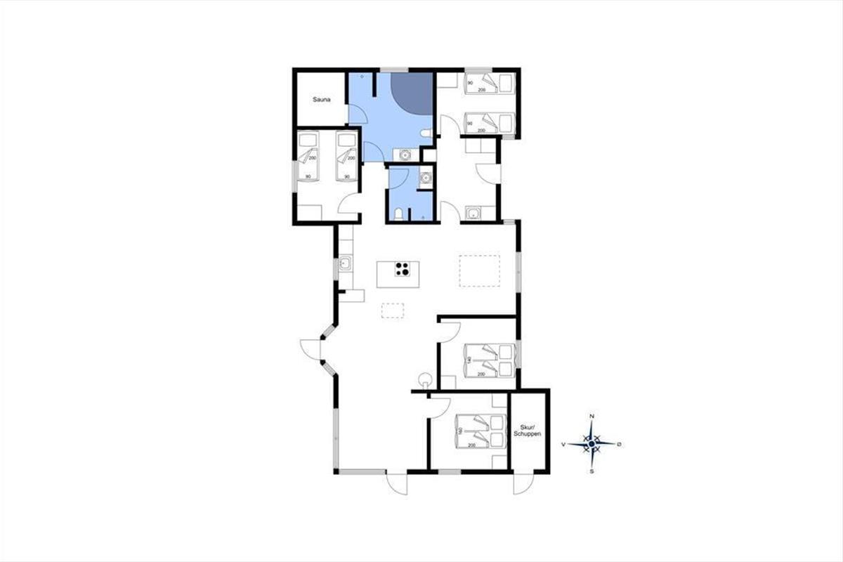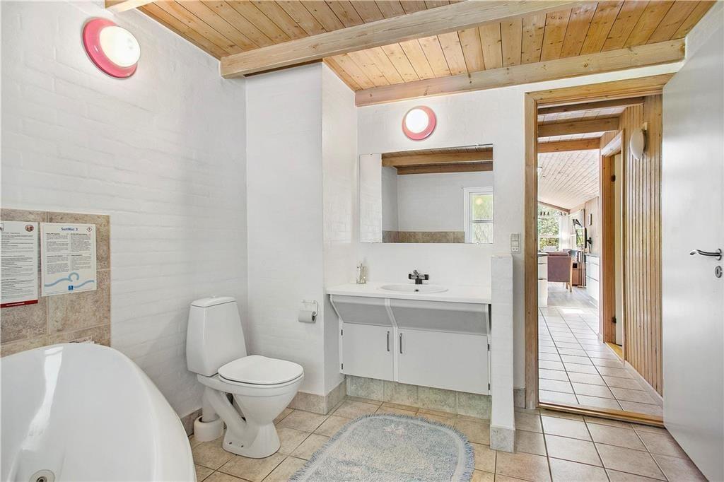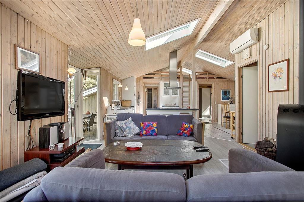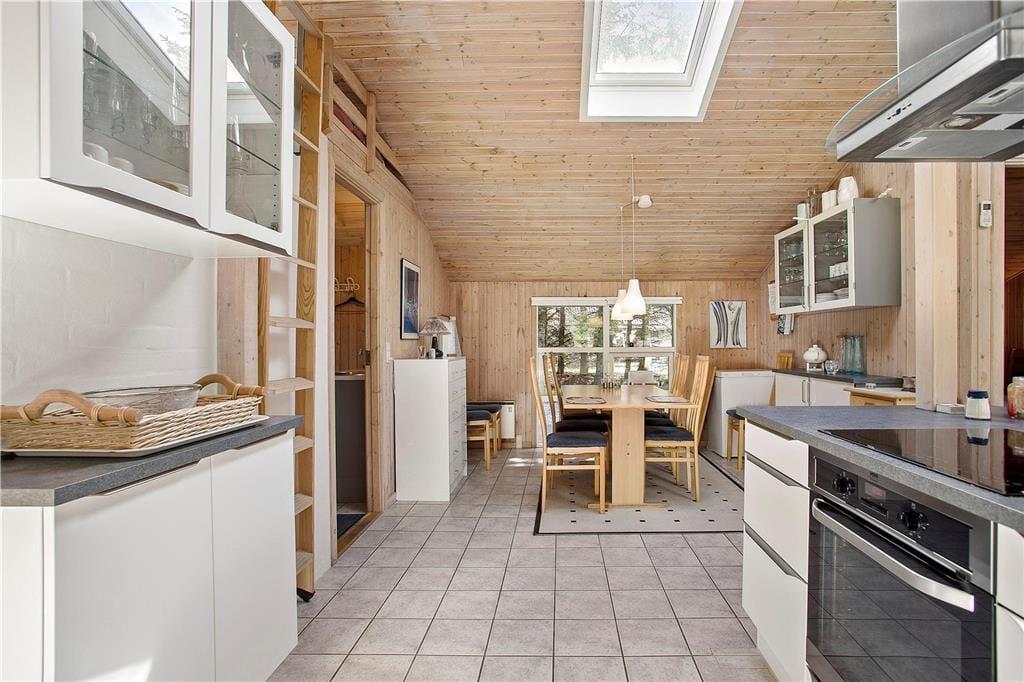 Das Ferienhaus empfängt Sie mit einem großen Aufenthaltsbereich, der die Küche, den Essplatz und das Wohnzimmer beinhaltet. Der Aufenthaltsbereich wird mit Sicherheit schnell zum Treffpunkt Ihrer gesamten Familie avancieren. Die großen Fensterflächen und die Oberlichter gewährleisten einen schönen Lichteinfall. Neben dem Wohnbereich befinden sich außerdem zwei Bäder und vier Schlafräume im Haus.