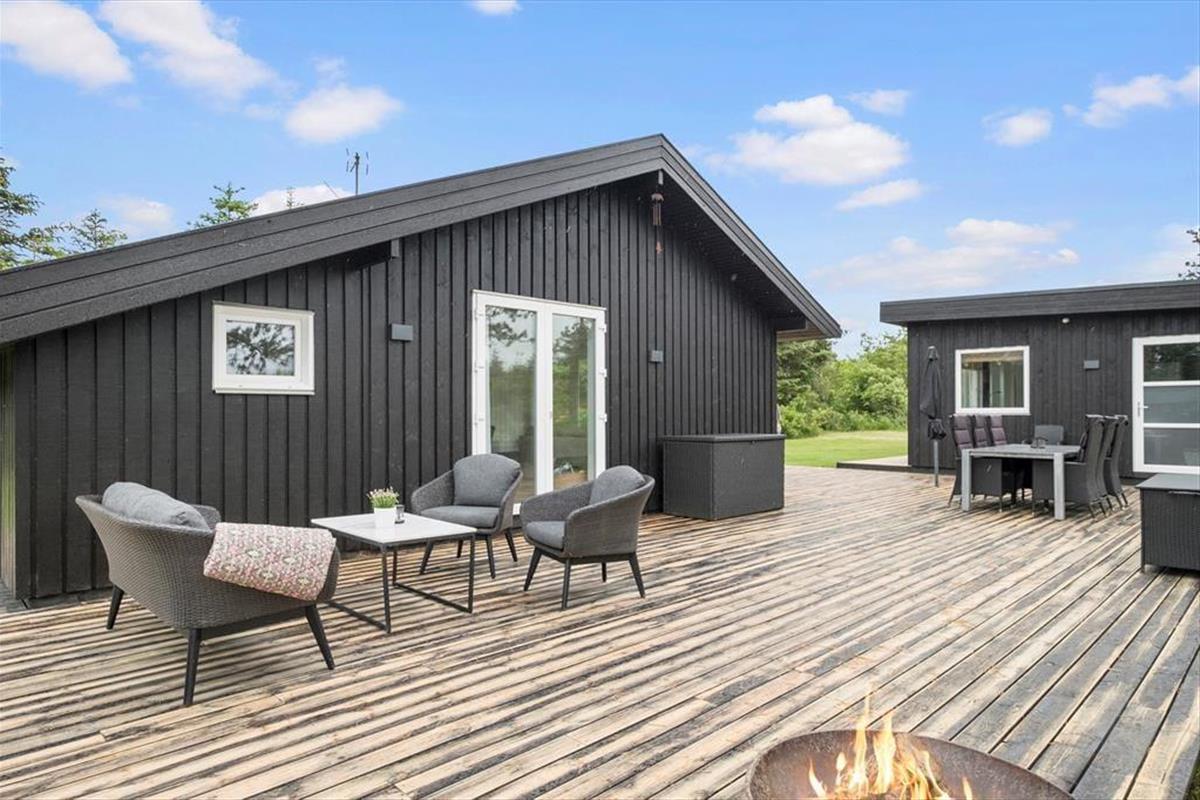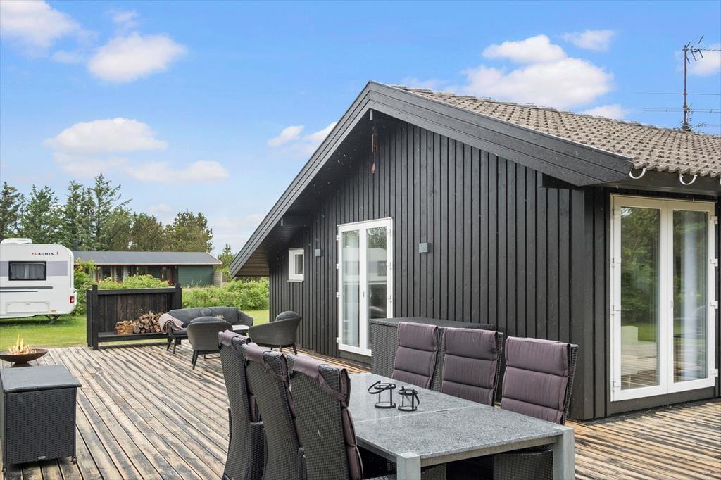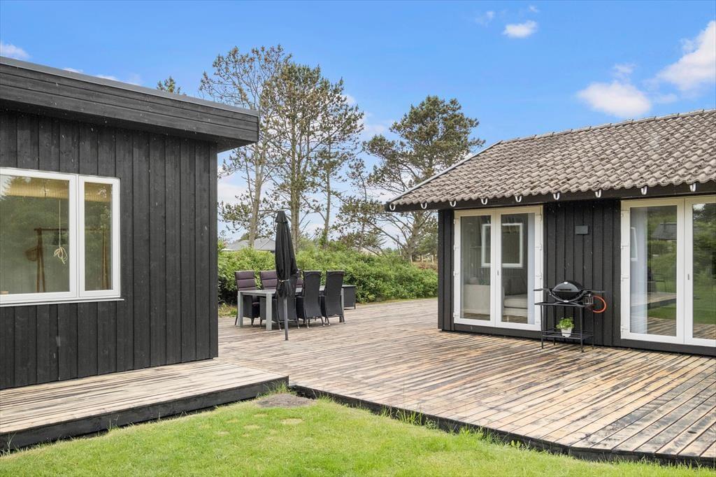 Die große Terrasse fungiert als schöne Verlängerung des Aufenthaltsraums. Sobald die Sonne hoch über Thorup Strand steht, wird es dich unwiderstehlich hinaus ins Freie ziehen. Du genießt die Wahl zwischen mehreren komfortablen Gartenmöbelgarnituren. Eine Lagerfeuerstelle, ein Gasgrill und ein Sonnenschirm runden das Angebot unter freiem Himmel wunderbar ab. Die Grasfläche animiert garantiert nicht nur deine Kinder zum vergnügten Umhertollen und zu Gartenspielen aller Art. Falls ihr einen Hund mitbringt, könnt ihr mit einem hauseigenen mobilen Zaun und Pfählen einen Bereich abstecken, in dem er sich sicher ohne Leine aufhalten kann.