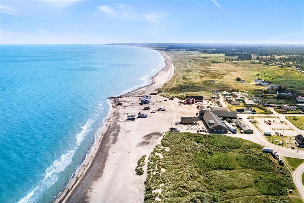 Die Lage im kleinen Schotterweg Fiskerstien ist überaus attraktiv. Ringsum geht es angenehm friedvoll und idyllisch zu. Binnen kurzer Zeit erreicht ihr zu Fuß den Wald und den Strand. Lediglich zehn Minuten trennen das Haus zu Fuß vom stimmungsvollen Kutteranlandeplatz am Thorup Strand, an dem ihr dabei zusehen könnt, wie Fischkutter nach alter Tradition mit einer Winde hinauf auf den Strand gezogen werden. Das Fiskehuset verwöhnt euch mit allen erdenklichen Köstlichkeiten aus dem Meer, die ihr mit ins Ferienhaus nehmen oder vor Ort mit Aussicht aufs Wasser genießen könnt. Hier zu sitzen und frisch zubereitete Schollenfilets zu essen ist für viele Urlauber einer der Urlaubshöhepunkte! Unvergesslich und schön sind selbstverständlich auch erfrischende Bäder in den rauschenden Nordseewellen und lange Strandspaziergänge. Für Abwechslung sorgen Abstecher in des Waldgebiet Vester Thorup Klitplantage, das so manch schönes Naturerlebnis bereithält.