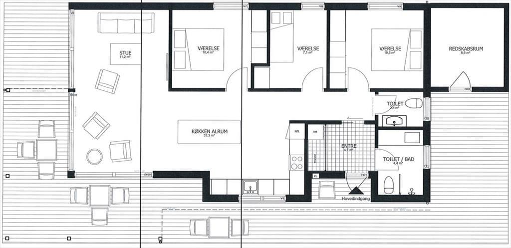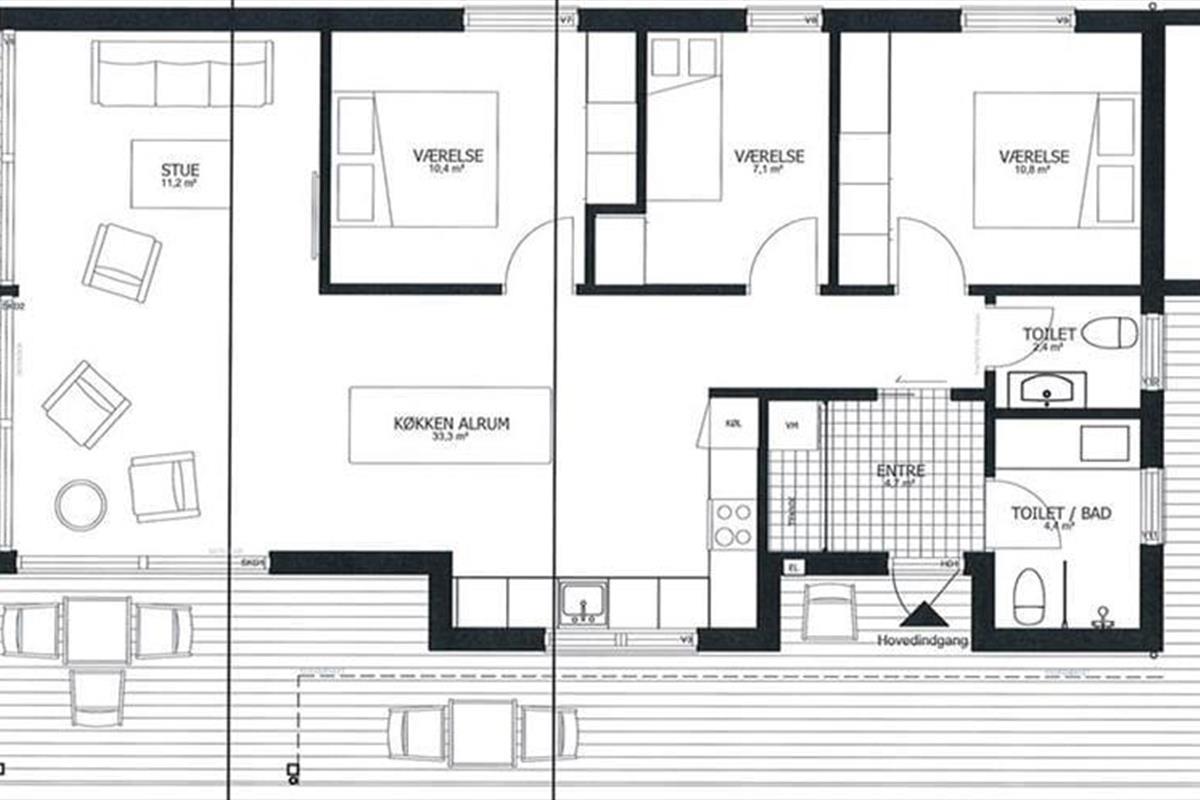 Dieses neu gebaute Ferienhaus aus dem Jahr 2025 in der Hedestien 9 in Thorup Strand verbindet modernen Komfort mit einer attraktiven Lage in der Nähe des Meeres. Die Einrichtung ist hell, einladend und funktional – ideal für entspannte Stunden und geselliges Beisammensein. Die gut ausgestattete Küche ist offen mit dem Wohnbereich verbunden, große Fensterfronten lassen viel Licht herein und schaffen eine behagliche Atmosphäre. Das Haus verfügt über drei gute Schlafzimmer, ein großes Badezimmer mit Dusche sowie ein zusätzliches Gäste-WC – perfekt für Familien oder befreundete Paare, die ein Plus an Komfort schätzen.
