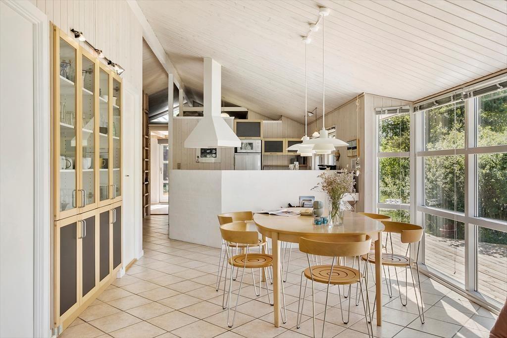 Sobald du das Haus betrittst, spürst du eine klassische und einladende Sommerhaus-Atmosphäre, die es leicht macht, zur Ruhe zu kommen. Im Wohnzimmer, geprägt von hellen Holzverkleidungen und einer hohen Decke, kannst du gemütliche Abende vor dem Kamin verbringen. Die Küche ist offen und mit dem Wohnraum verbunden, sodass du die Urlaubsmahlzeiten zubereiten kannst, während die Gespräche durch den Raum fließen. Wenn der Tag sich dem Ende zuneigt, bieten drei gemütliche Schlafzimmer einen Platz für eine erholsame Nachtruhe. Außerdem gibt es ein Badezimmer und ein Gäste-WC – ein praktischer Vorteil für Familien oder Gruppen, die zusammen Urlaub machen.