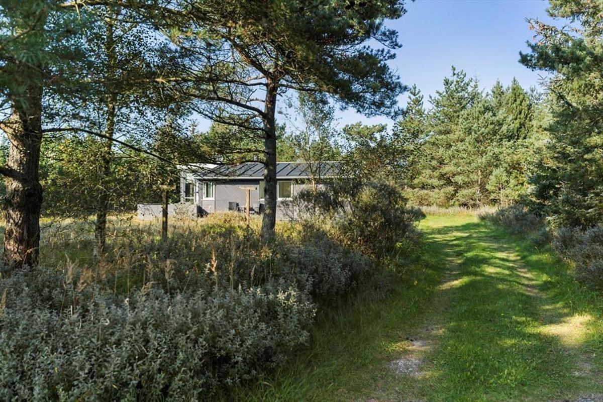 Das Ferienhaus liegt auf einem schönen und charmanten Naturgrundstück mit Bäumen, hohem Gras und kleinen Büschen. Rund um das Ferienhaus erstreckt sich eine Terrasse mit mehreren kleinen gemütlichen Ecken, und in der südwestlichen Ecke ist die Terrasse komplett abgeschottet. Es stehen gute Gartenmöbel, ein Grill, eine Sandkiste und ein Wäscheständer auf dem Grundstück zur Verfügung.