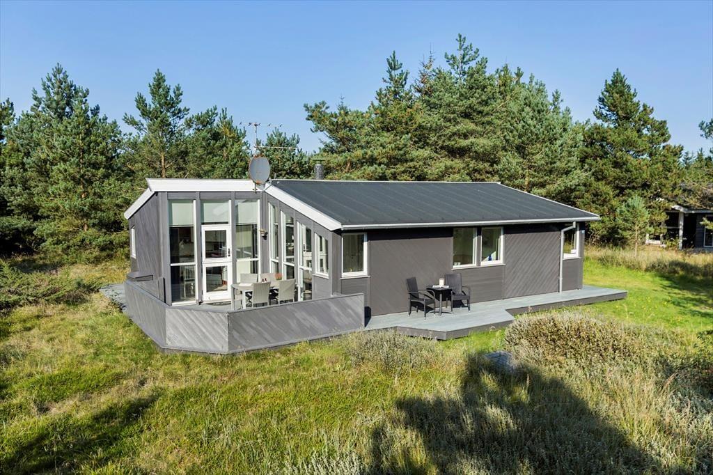 In diesem familienfreundlichen Ferienhaus ist nahezu die Garantie für ein wunderbares Urlaubserlebnis gegeben! Die großen Fenster sorgen für wunderbare Lichtverhältnisse und alle Zimmer sind mit hochwertigen Qualitätsmöbeln eingerichtet. Im Wohnzimmer steht ein toller Morsø-Kamin, der eine gemütliche Stimmung verbreitet und das Haus auch außerhalb der Saison in den kühleren Monaten bewohnbar macht. Das Ferienhaus verfügt über einen Küchen-Wohnbereich, ein Badezimmer und drei Schlafzimmer. Zwei Schlafzimmer befinden sich im Eingangsbereich und eignen sich ideal als Kinderzimmer, die vom Wohnzimmer separat liegen. In dem tollen Badezimmer sind Duschkabine, Whirlpool und Sauna vorhanden, so können Sie sich Ihren eigenen kleinen Wellnessbereich schaffen, ohne ein großes Loch in Ihre Geldbörse zu reißen oder extra rausfahren zu müssen. Hier steht alles zur Verfügung, was Sie für einen gelungenen und unvergesslichen Familienurlaub in Nordjütland benötigen!