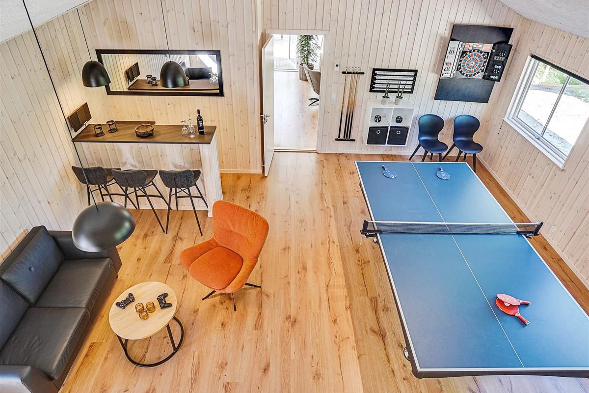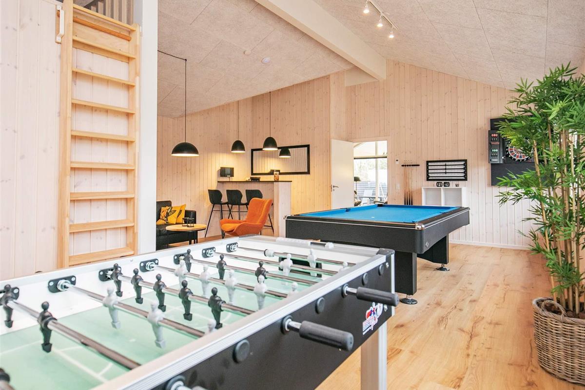 Nach dem Schwimmen kann der Freizeitspaß im sogenannten Aktivitätsraum des Hauses weitergehen, wo für ein familieninternes Turnier eine kombinierte Billard- und Tischtennisplatte sowie Kickertisch, Darts und eine PlayStation4 zur Verfügung stehen. Die Zuschauer können währenddessen an der kleinen Bartheke oder in der gemütlichen Sitzgruppe entspannen bzw. von dort aus anfeuern.