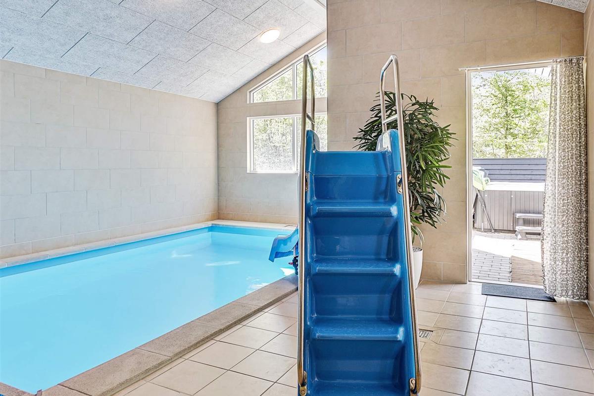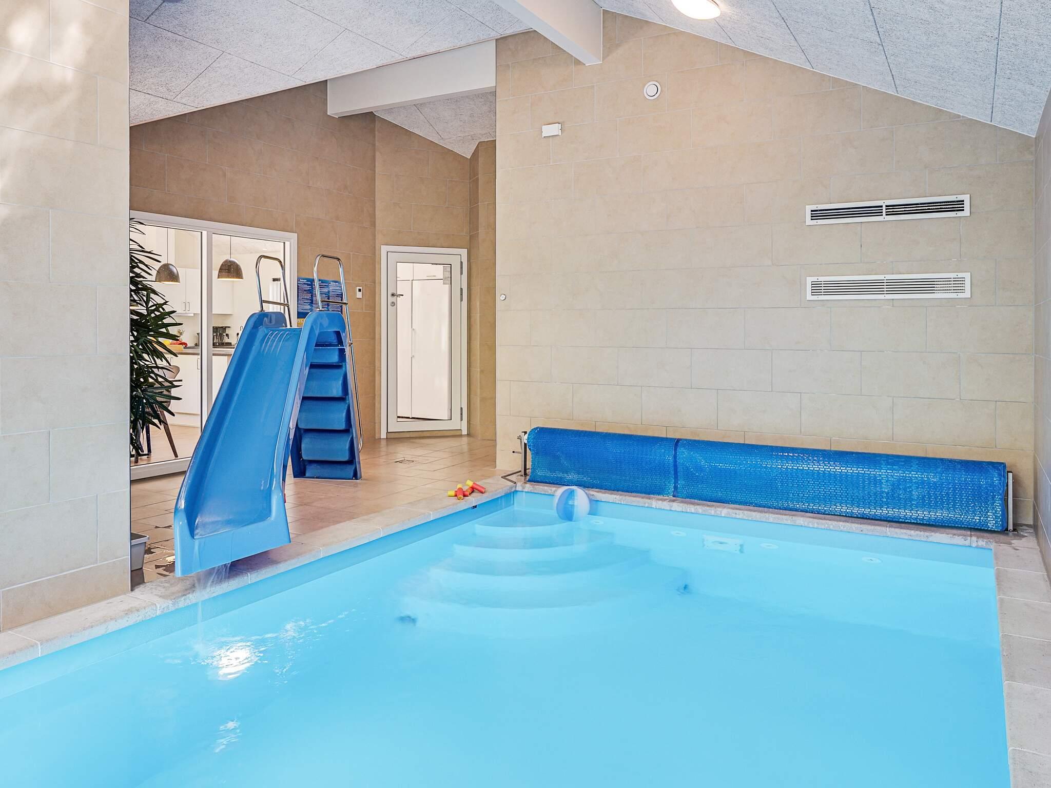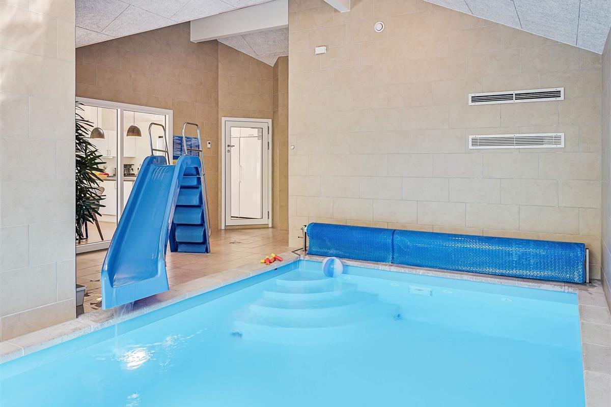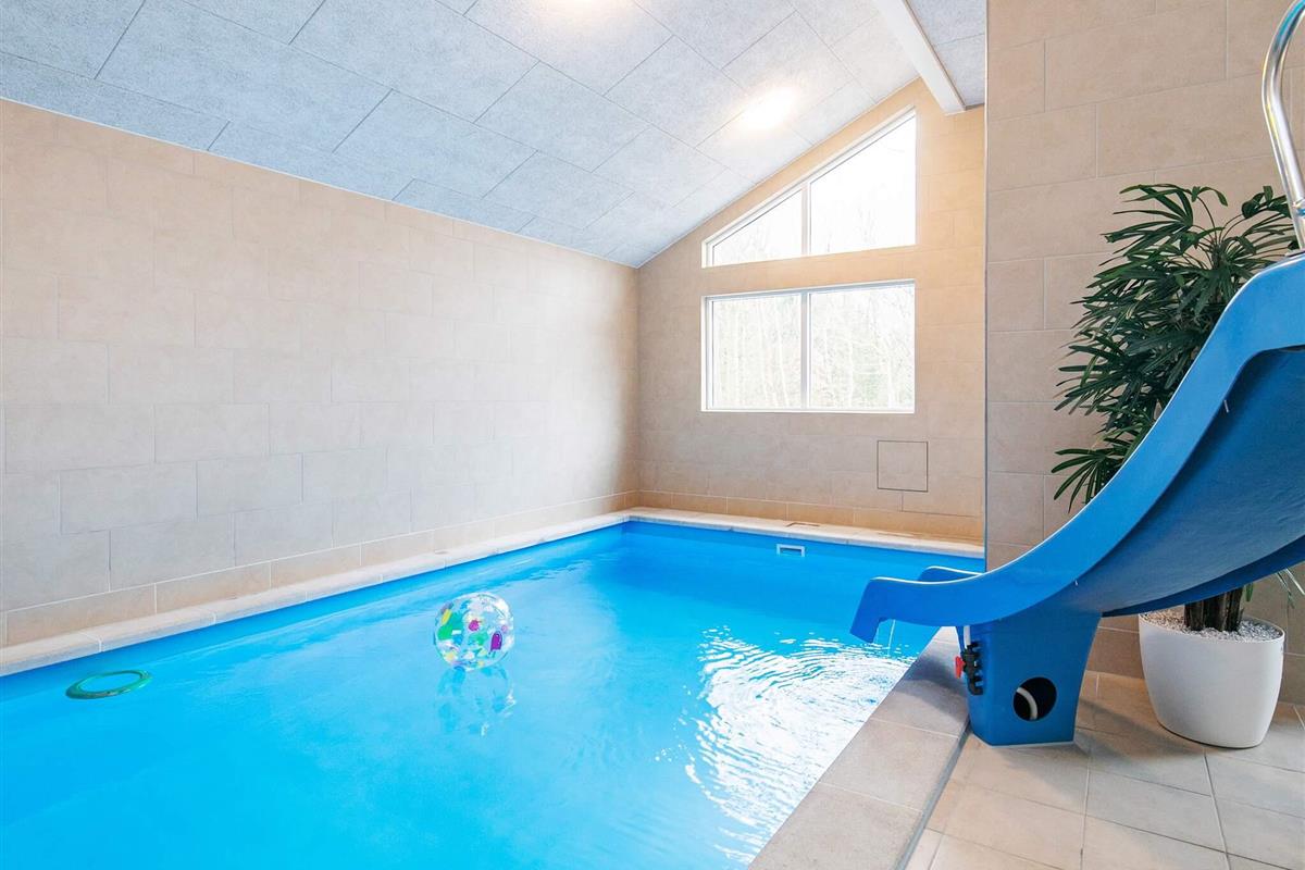 Im Poolbereich des Hauses können Sie im großen Pool mit Wasserrutsche und römischer Treppe Badespaß genießen. Anschließend lockt die Sauna des Hauses mit Wärme und Wohlbefinden. Entspannung und Wellness findet man auch im Freien, bei einem warmen, sprudelnden Massagebad im Außen-Whirlpool.