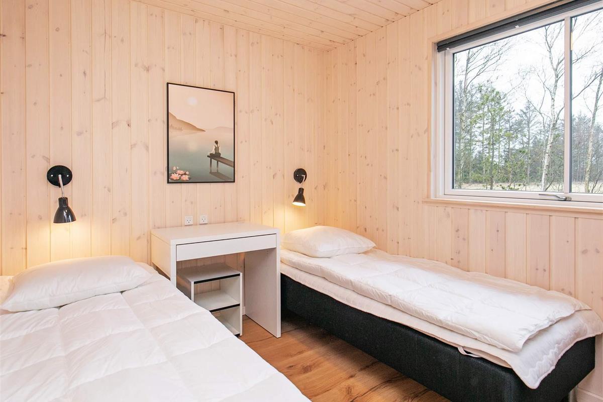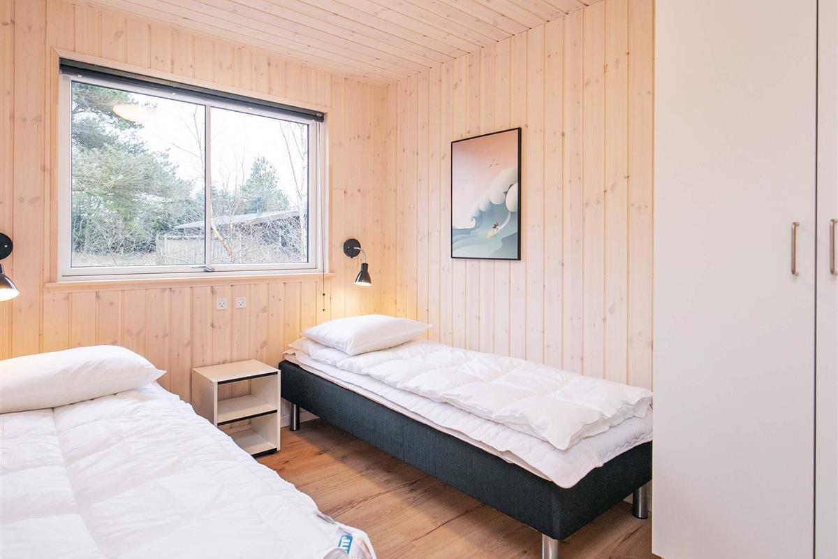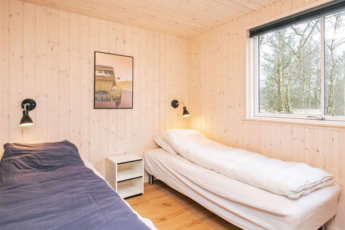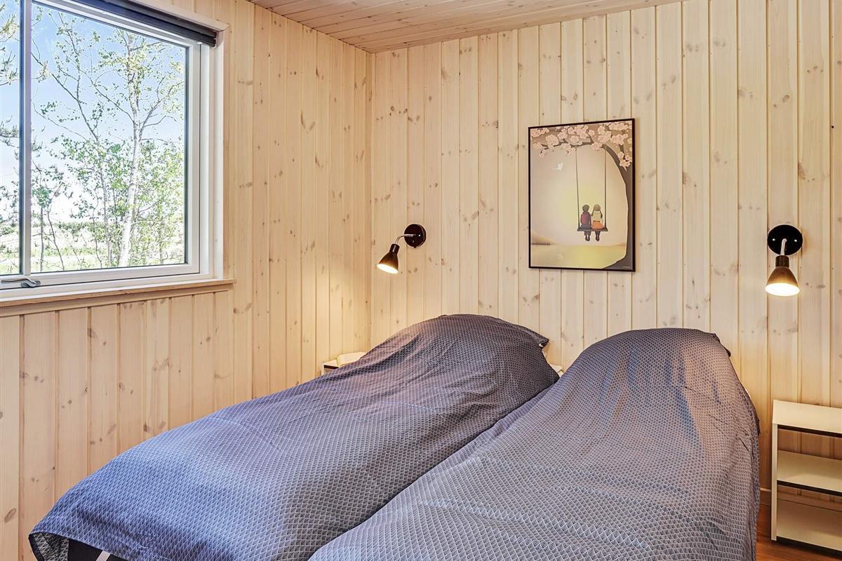 Die insgesamt 18 Schlafplätze im Ferienhaus wurden auf sieben Schlafzimmer sowie vier Zustellbetten oben auf dem Hems unter der Dachschräge verteilt. Letztere sind besonders bei größeren Kindern und Jugendlichen sehr beliebt.