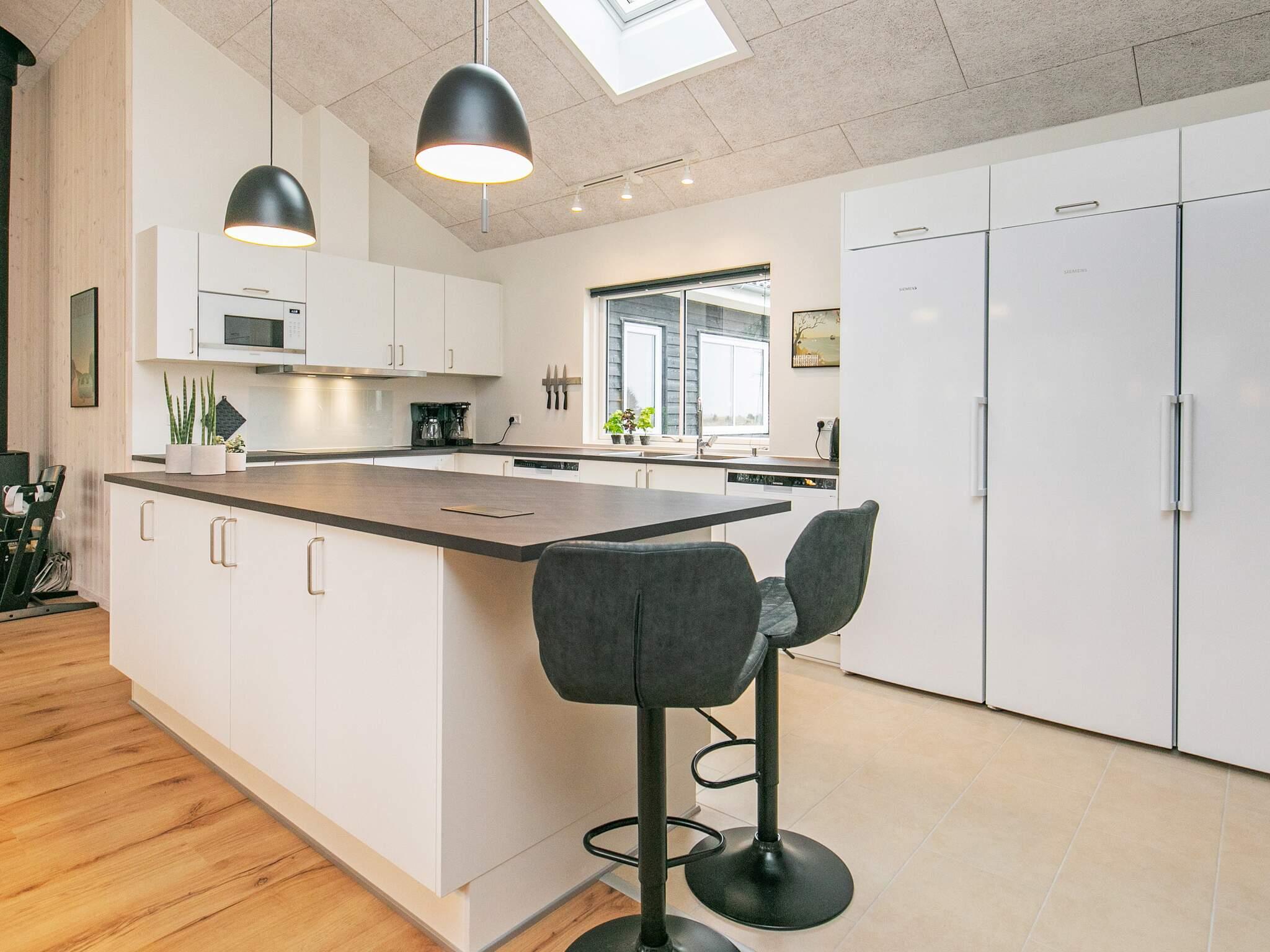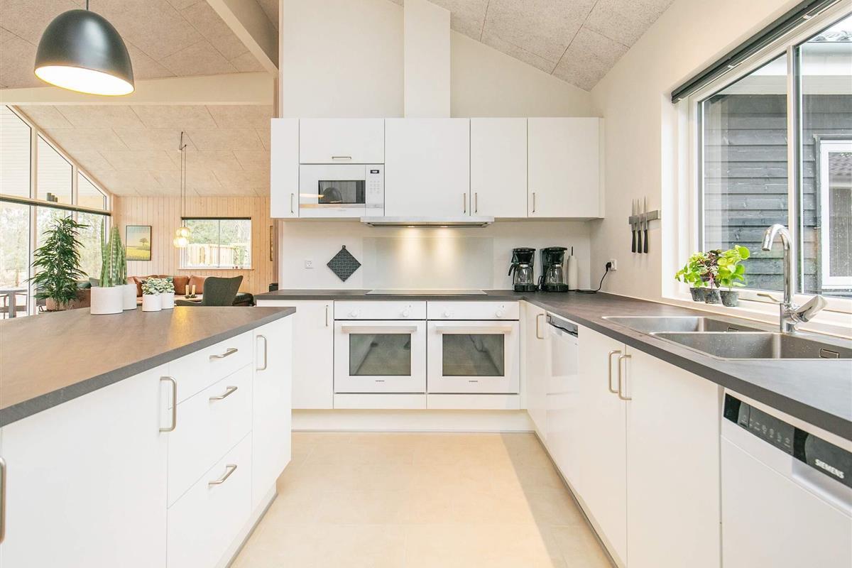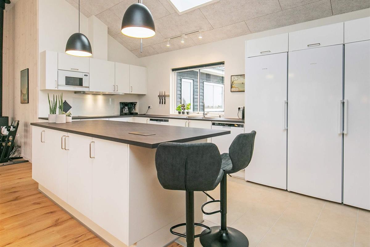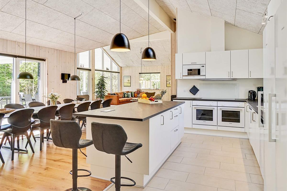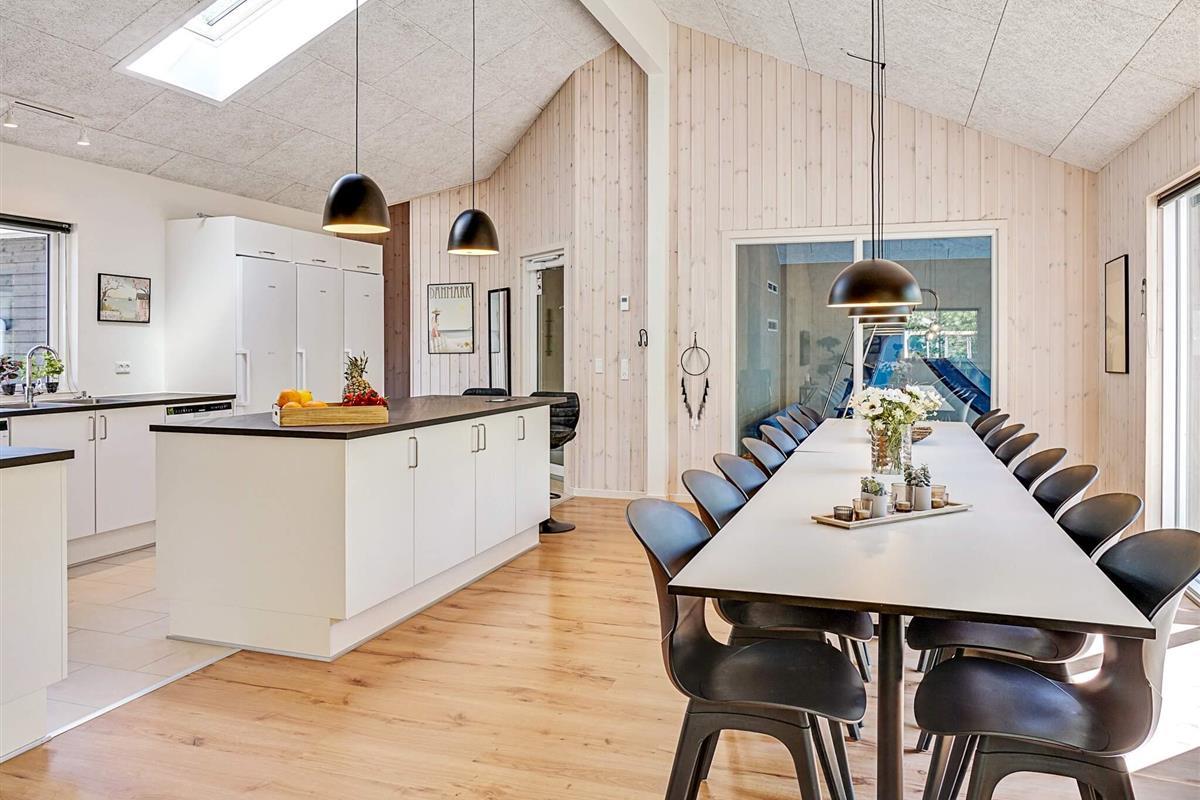 Wenn Sie gerne zusammen kochen, gibt es hierfür Platz im großen, offenen Küchen-/Essbereich des Hauses, der nicht nur schön eingerichtet, sondern auch mit u.a. zwei Backöfen, Geschirrspüler und großem Kühlschrank bestens ausgestattet ist. Für die Mahlzeiten steht ein bewonders langer Esstisch bereit, an dem sich die ganze Familie versammeln kann.