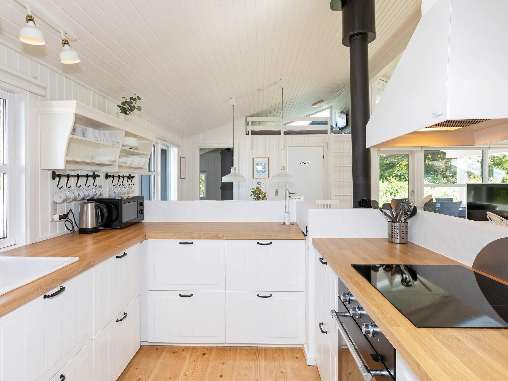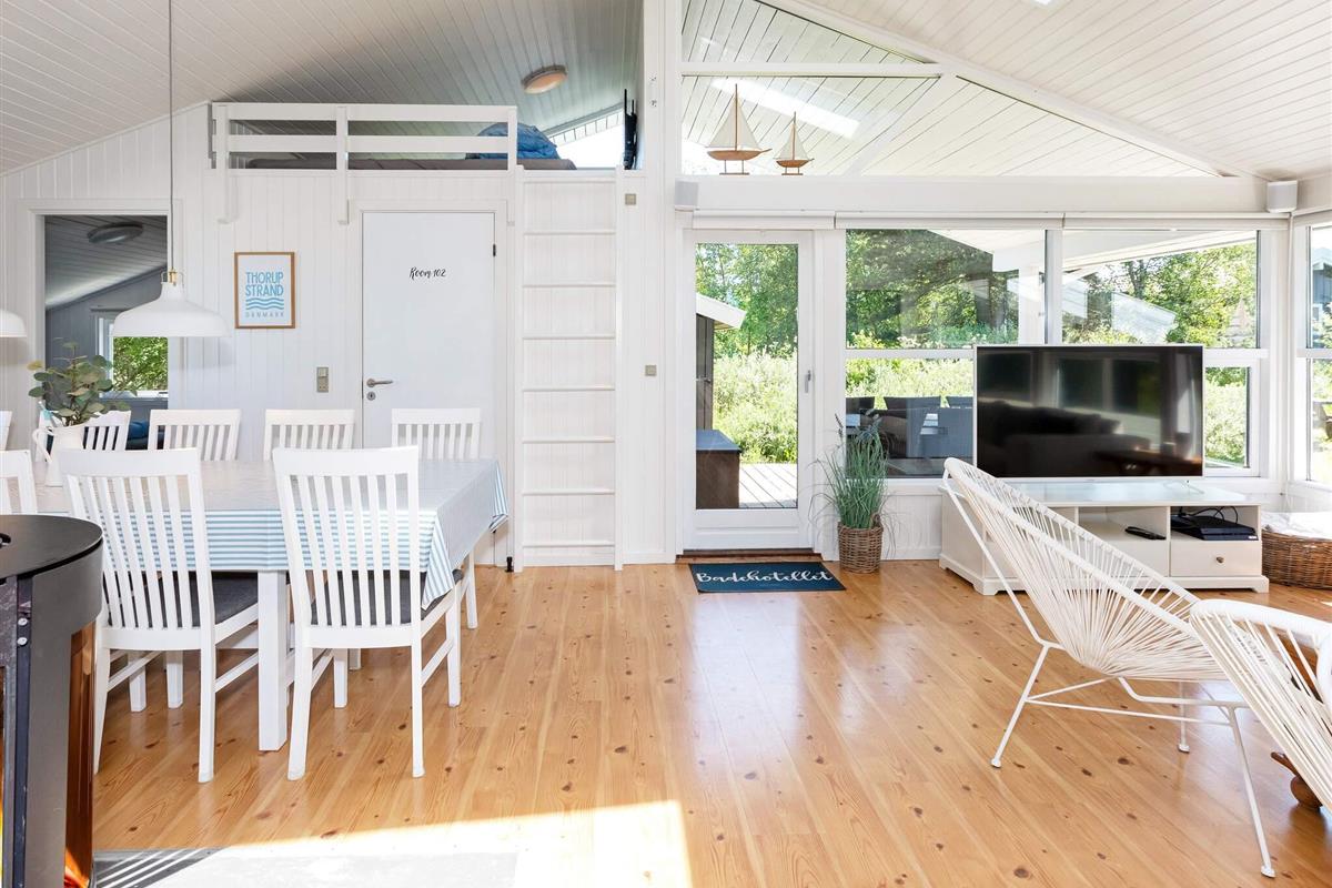 Das Haus liegt nur wenige hundert Meter von dem kleinen Fischerdorf Thorup Strand entfernt, wo die Fischkutter direkt am Strand liegen. Die imposanten Dünen Bulbjergs sind nicht weit entfernt. Besuchen Sie den Vergnügungspark Fårup Sommerland oder Aalborg mit dem Zoo und der bekannten Straße Jomfru Ane Gade mit vielen Cafés - beides ist nur ca. eine halbe Stunde Fahrtzeit entfernt. Hier liegen auch viele interessante Museen und Attraktionen. Geringe Entfernung in das Badeland. In der Umgebung gibt es außerdem gute Einkaufsmöglichkeiten sowie 18-Loch-Golfplätze, ein Bowlingcenter, ein Reitcenter und einen Tennisplatz in Fjerritslev, ca. 12 km entfernt.