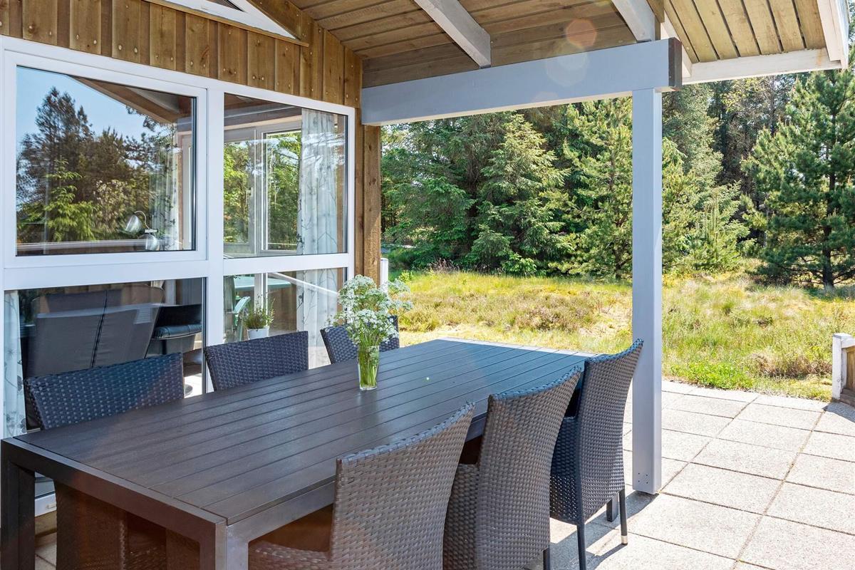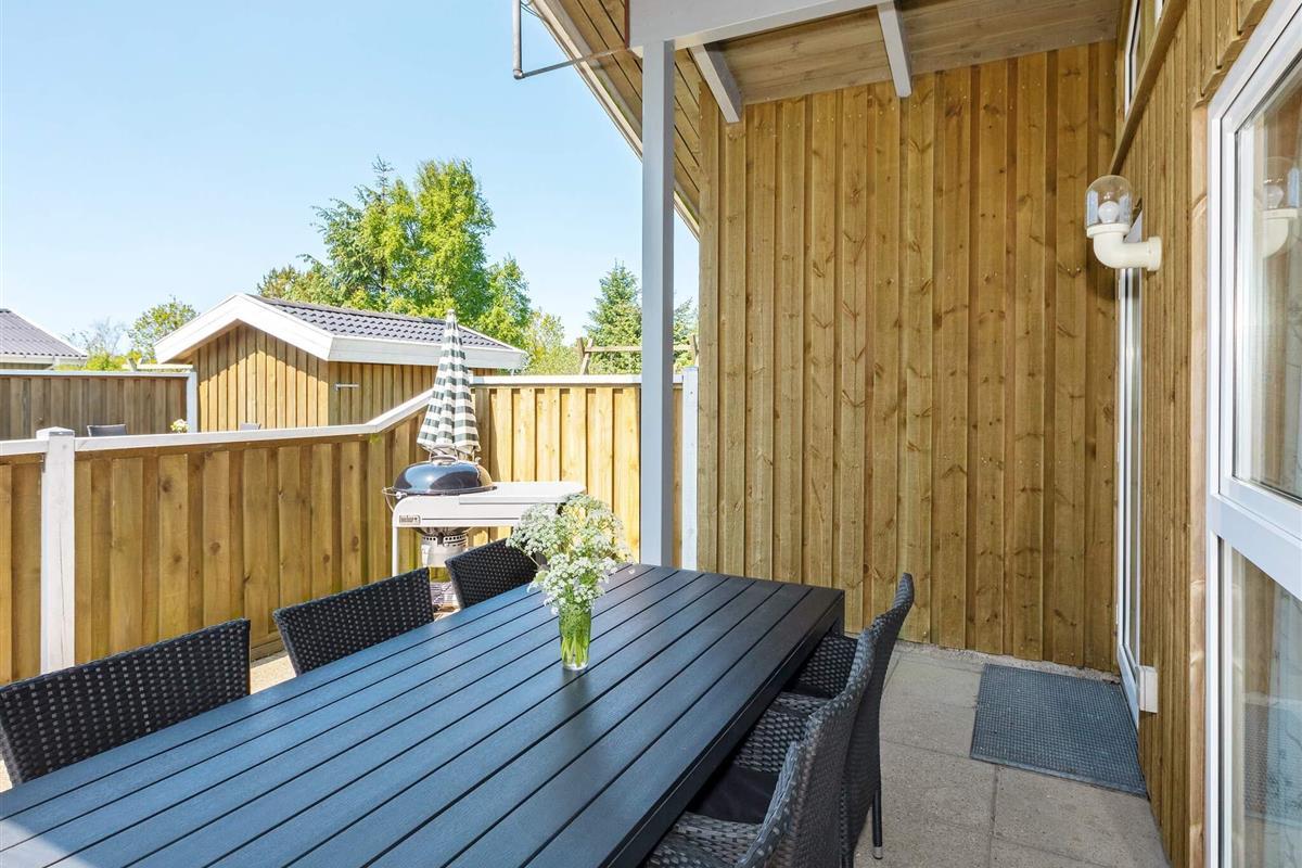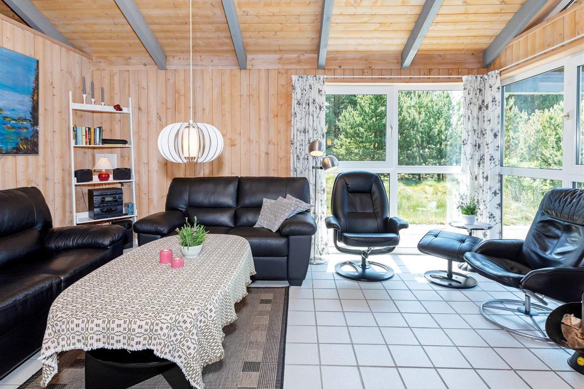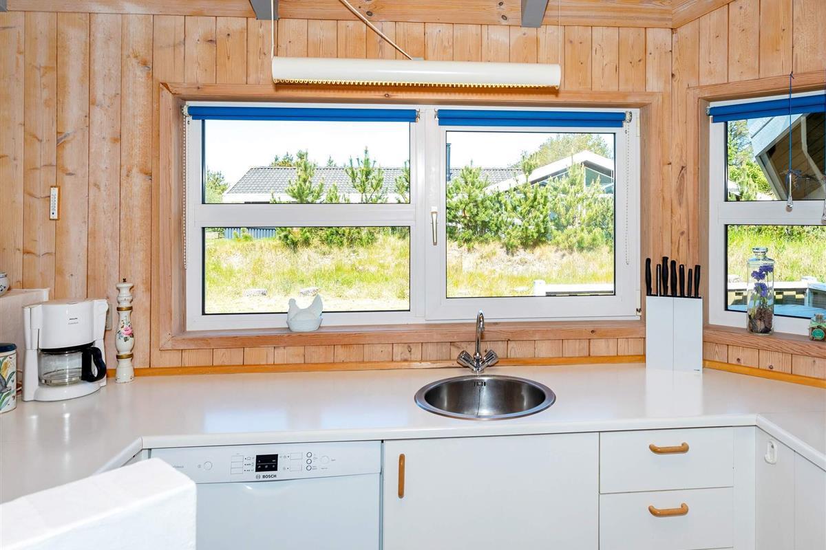 Die offene Küche ist gut ausgestattet und geht nahtlos in das Wohnzimmer über – ein gemütlicher Raum für gemeinsame Mahlzeiten und Entspannung. Hier können Sie die Wärme des Holzofens genießen, Musik auf der Stereoanlage hören oder fernsehen – sowohl deutsche als auch dänische Sender. Vom Wohnbereich aus gelangen Sie direkt auf die teilweise überdachte Terrasse, die sich perfekt für ruhige Morgenstunden beim Kaffeetrinken oder Sommerabende im Freien eignet. Praktische Details wie Fußbodenheizung in Küche und Wohnzimmer sowie eine Wasch-Trockner-Kombination sorgen das ganze Jahr über für Komfort und Bequemlichkeit.