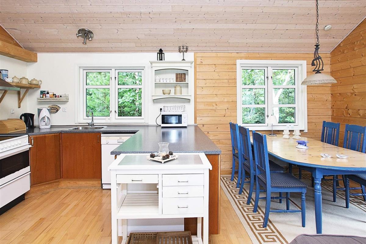 Gemütliches Ferienhaus auf einem Naturgrundstück mit Wiese, Bäumen und einigen Spielgeräten für Kinder. Zudem schöne Holzveranda mit mehreren Sitzgelegenheiten. Familienfreundliche Einrichtung mit Kinderbett und Hochstuhl. Zudem Sauna sowie technische Annehmlichkeiten wie WLAN, Parabol, Waschmaschine und Trockner im Haus. Im großen Bad steht auch eine Whirlwanne für 2 Personen bereit. Die Kücheneinrichtung ist älter.