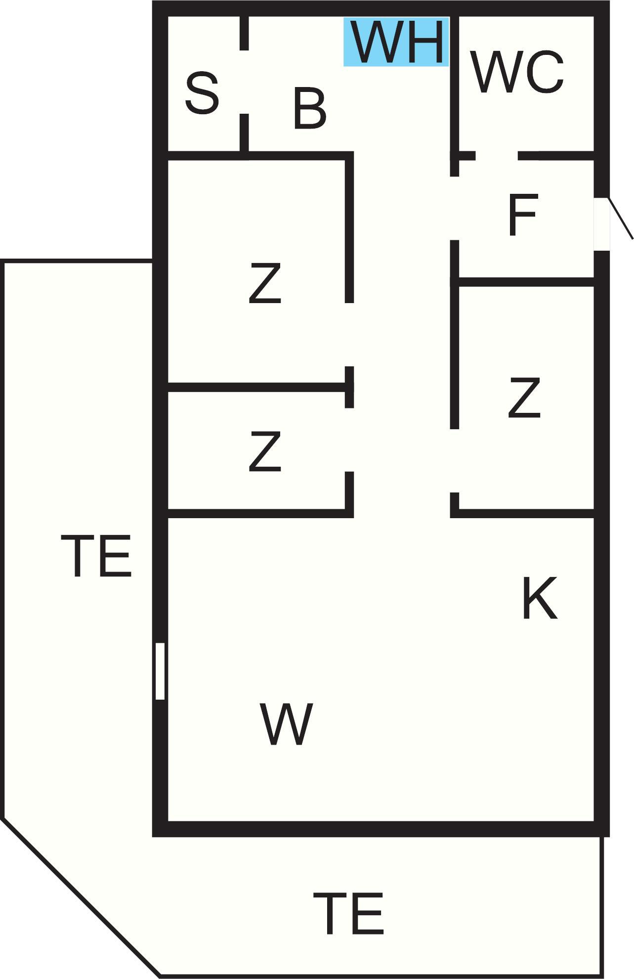 Bad: WC, Waschb., Dusche, Fußbodenheiz.