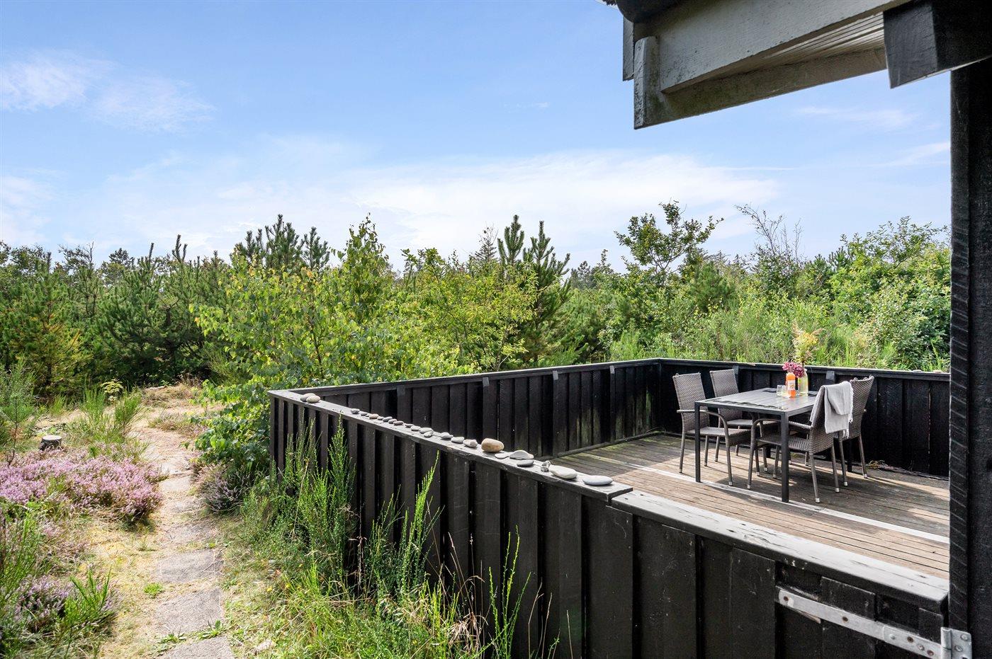De vakantiewoning is gelegen op een 1223 m² groot natuural grond. Afstand tot de zee 350 m. Dichtstbijzijnde winkel 2500 m. Er is een golfbaan op een afstand van 12500 m. Bij de vakantiewoning hoort 25 m² terras. Waarvan in totaal 25 m² beschut terras. Gereedschapsruimte. Parkeerplaats bij het huis.