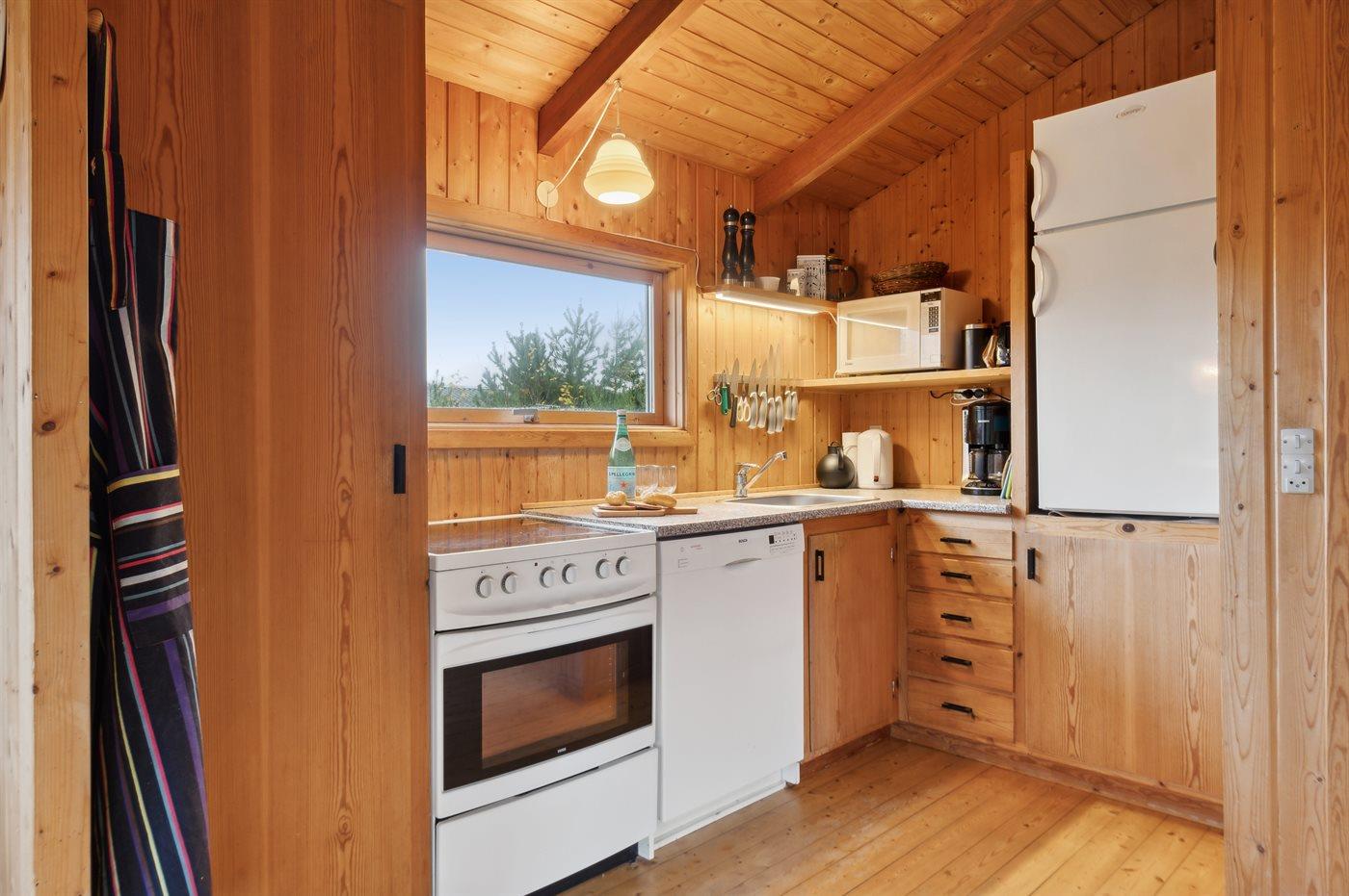 De keuken is uitgerust met koelkast Er zijn 4 keramische kookplaten, heteluchtoven, magnetron en vaatwasser.