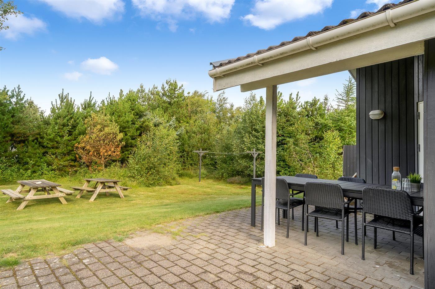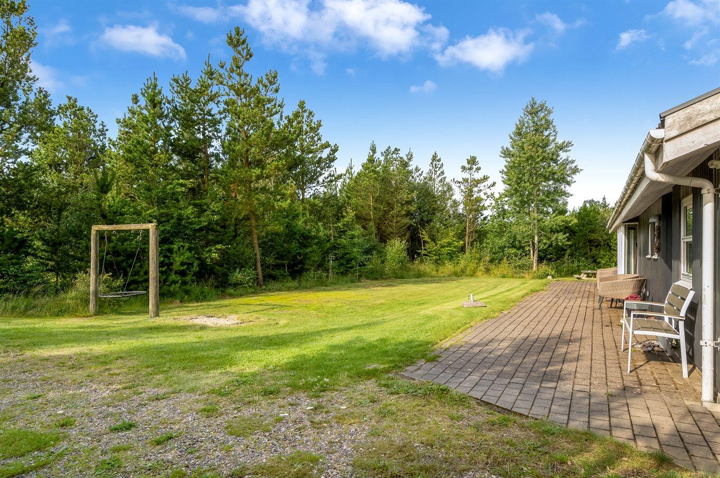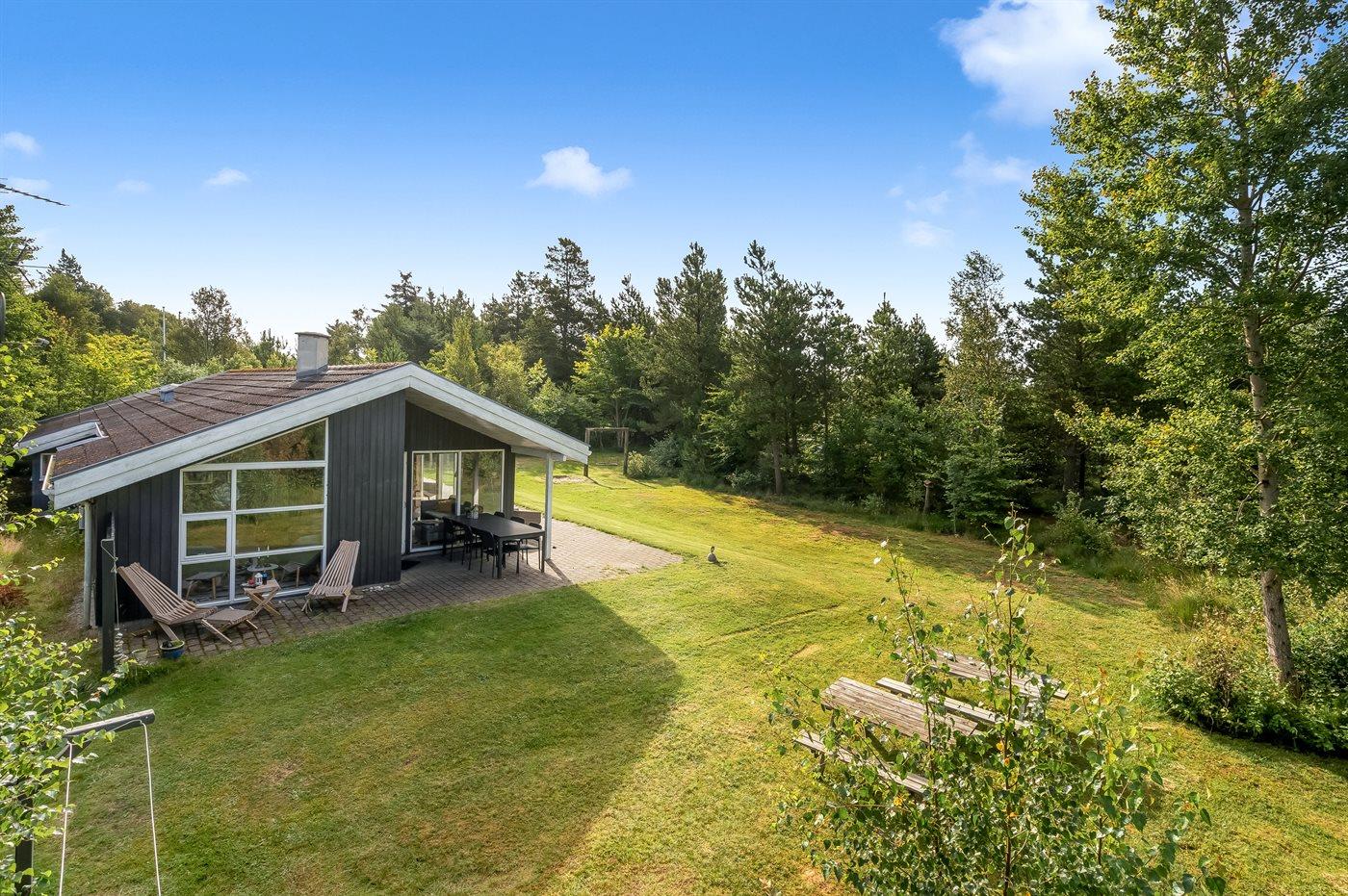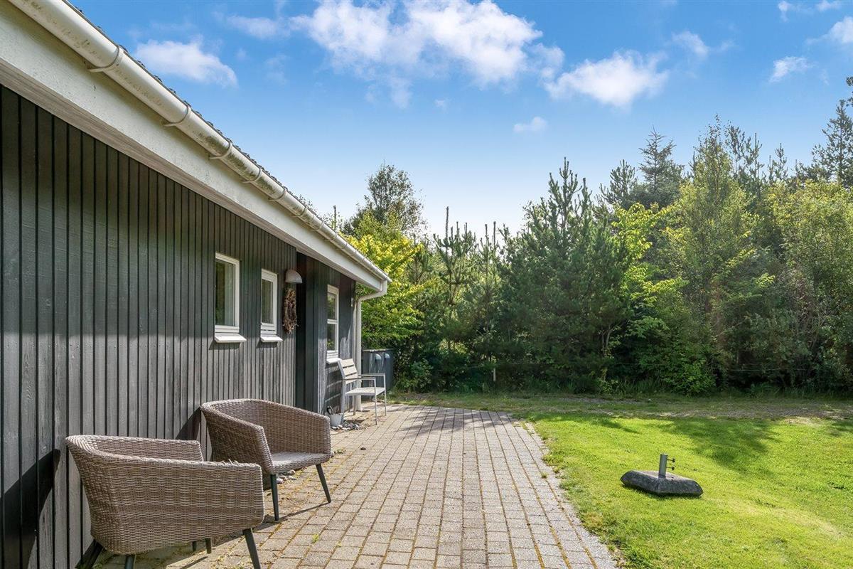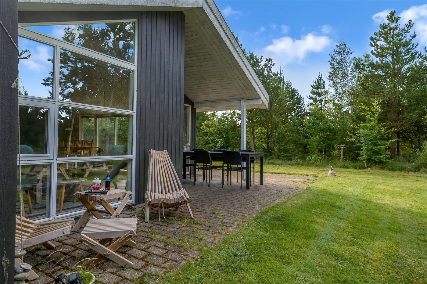 De vakantiewoning is gelegen op een 1300 m² groot natuural grond. Afstand tot de zee 800 m. Dichtstbijzijnde winkel 2000 m. Er is een golfbaan op een afstand van 10000 m. Bij de vakantiewoning hoort 35 m² terras. Daarnaast is er een 6 m² groot overdekt terras. Gereedschapsruimte. Schommel. Zandbak. Barbecue. Het huis heeft een stopcontact voor het opladen van een elektrische auto. Oplaadstekker type 2. Met 11 kW-laadvermogen. Parkeerplaats bij het huis.