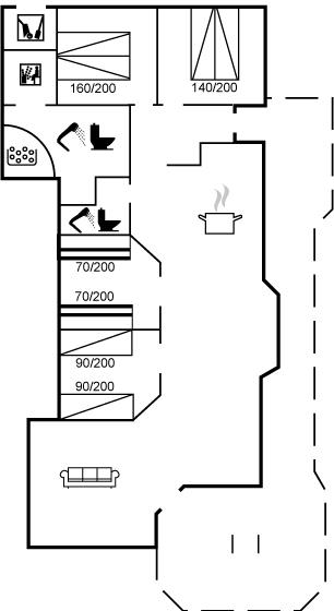 Er is 2 badkamers met douchehok en 2 toiletten. Er is vloerverwarming in 2 van de badkamers. De sauna biedt de gelegenheid tot ontspanning.