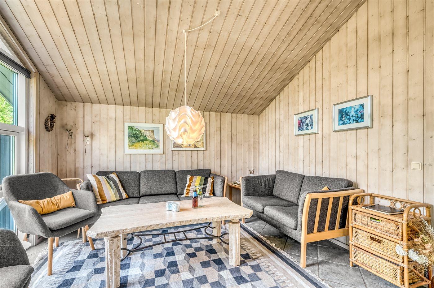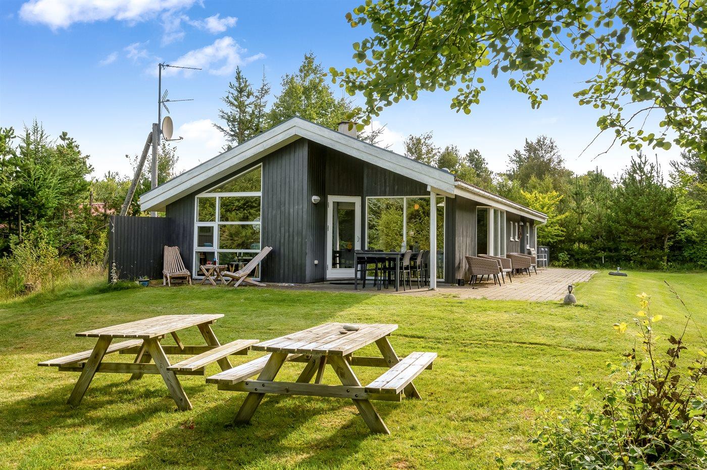 Ruim en modern vakantiehuis bij Thorup Strand met sauna, bubbelbad en elektrische auto-oplaadpunt.