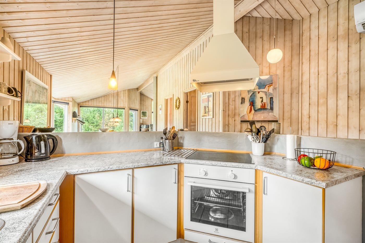 De keuken is uitgerust met koelkast Er zijn 4 keramische kookplaten, heteluchtoven, magnetron en vaatwasser.