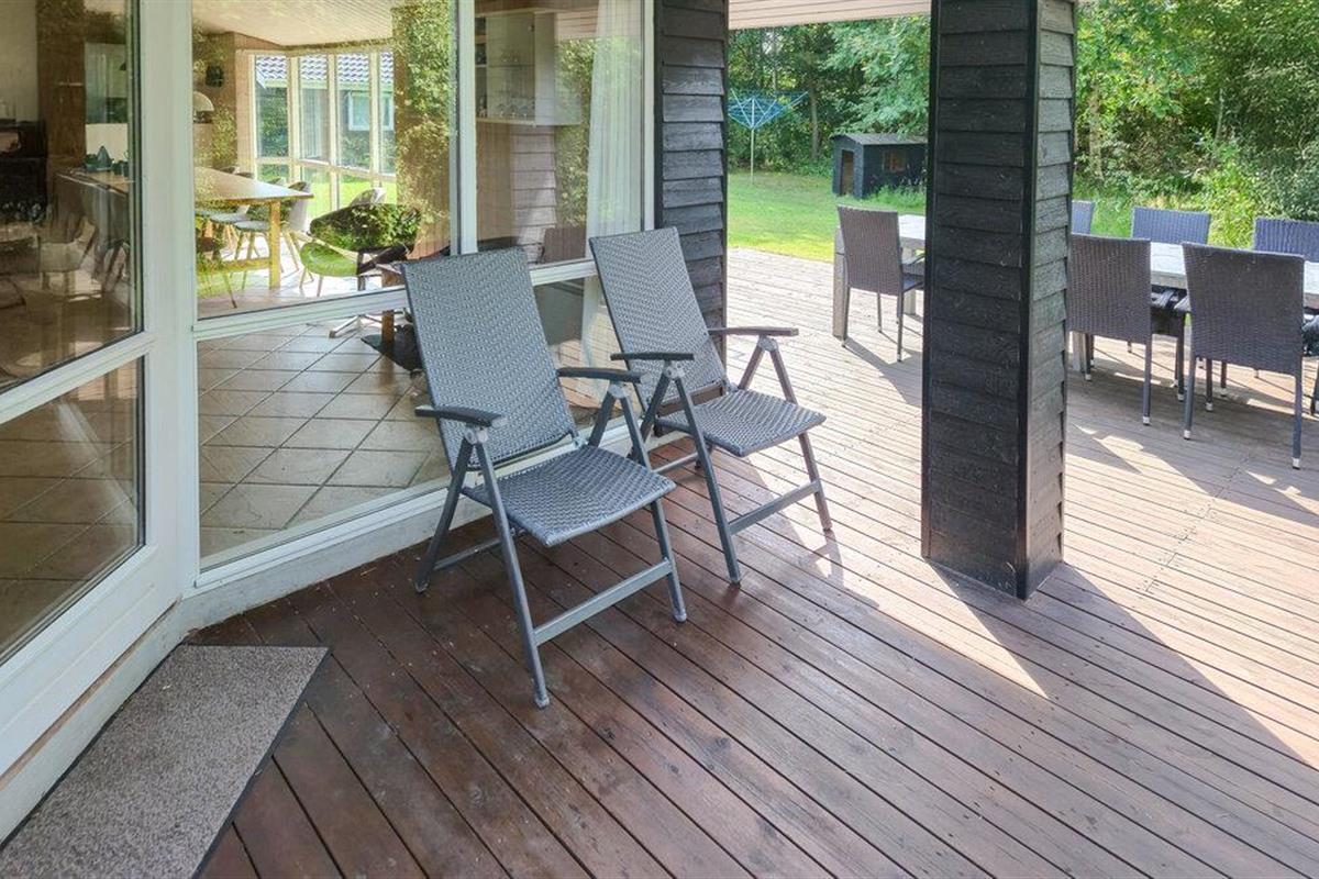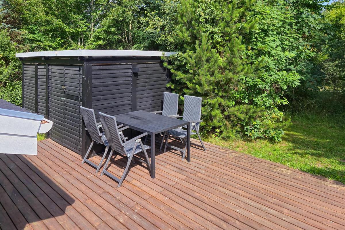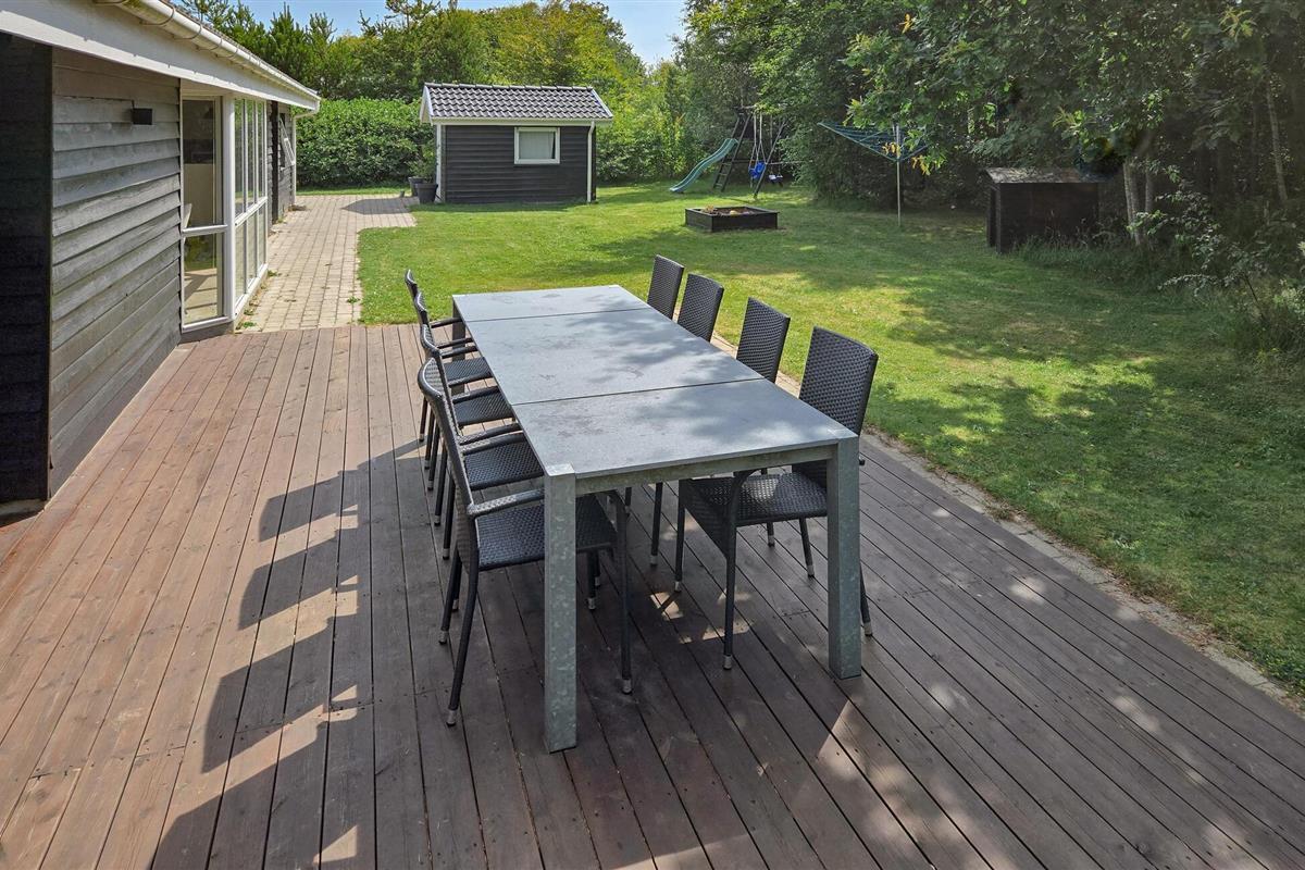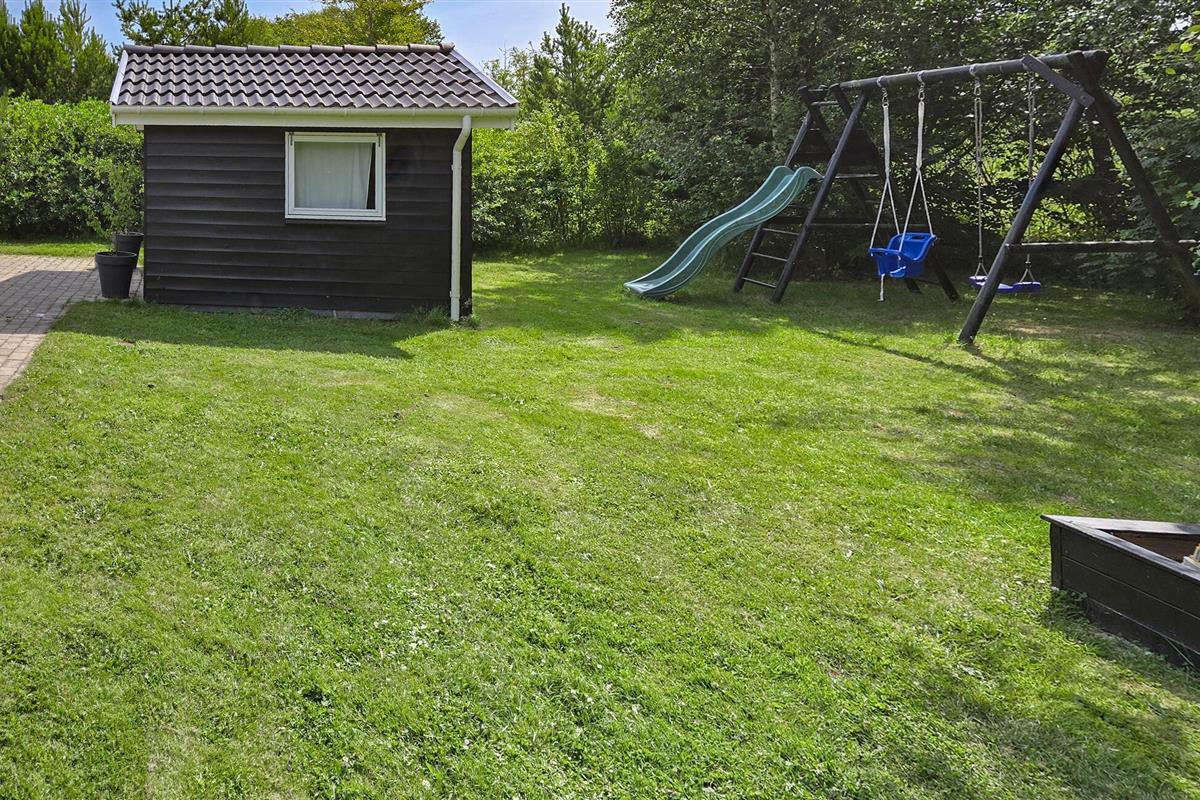 Geniet buiten op het grote houten terras van de frisse zeelucht terwijl je kinderen zich uitleven in de zandbak, op de schommels of op de glijbaan.