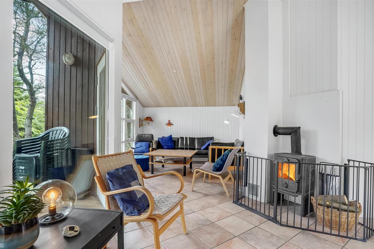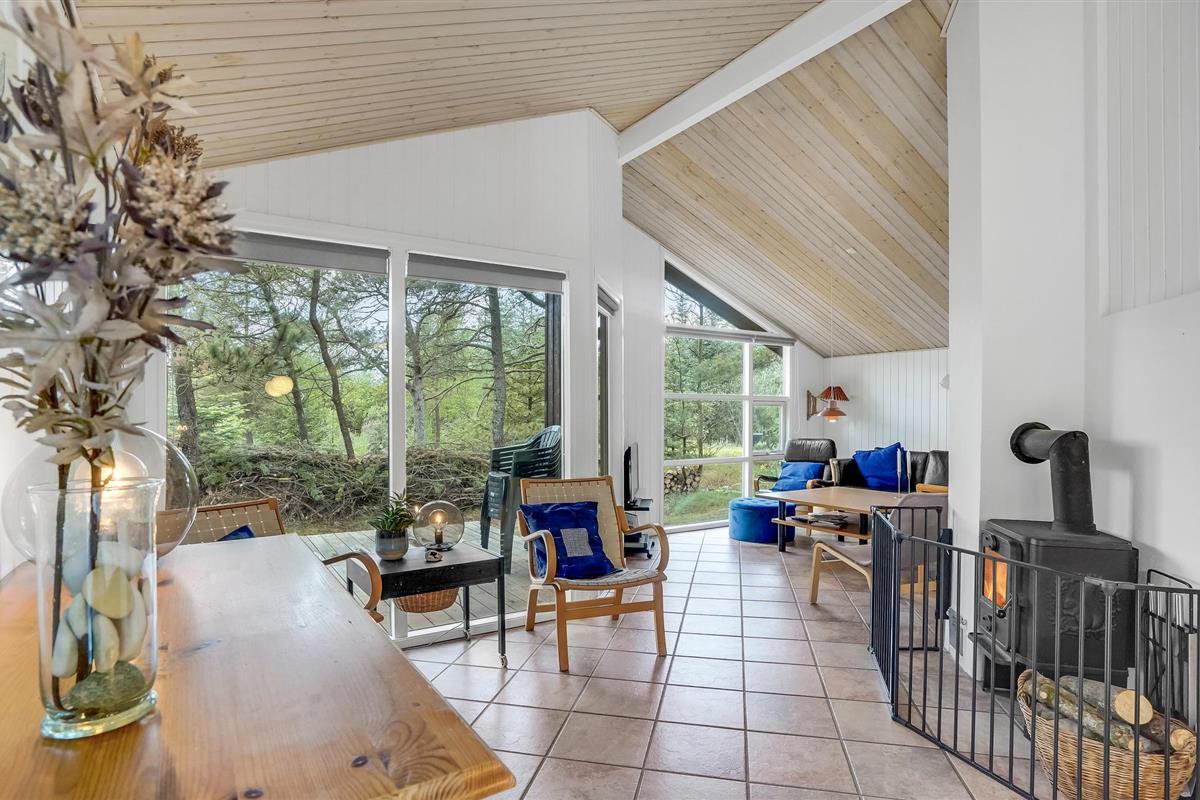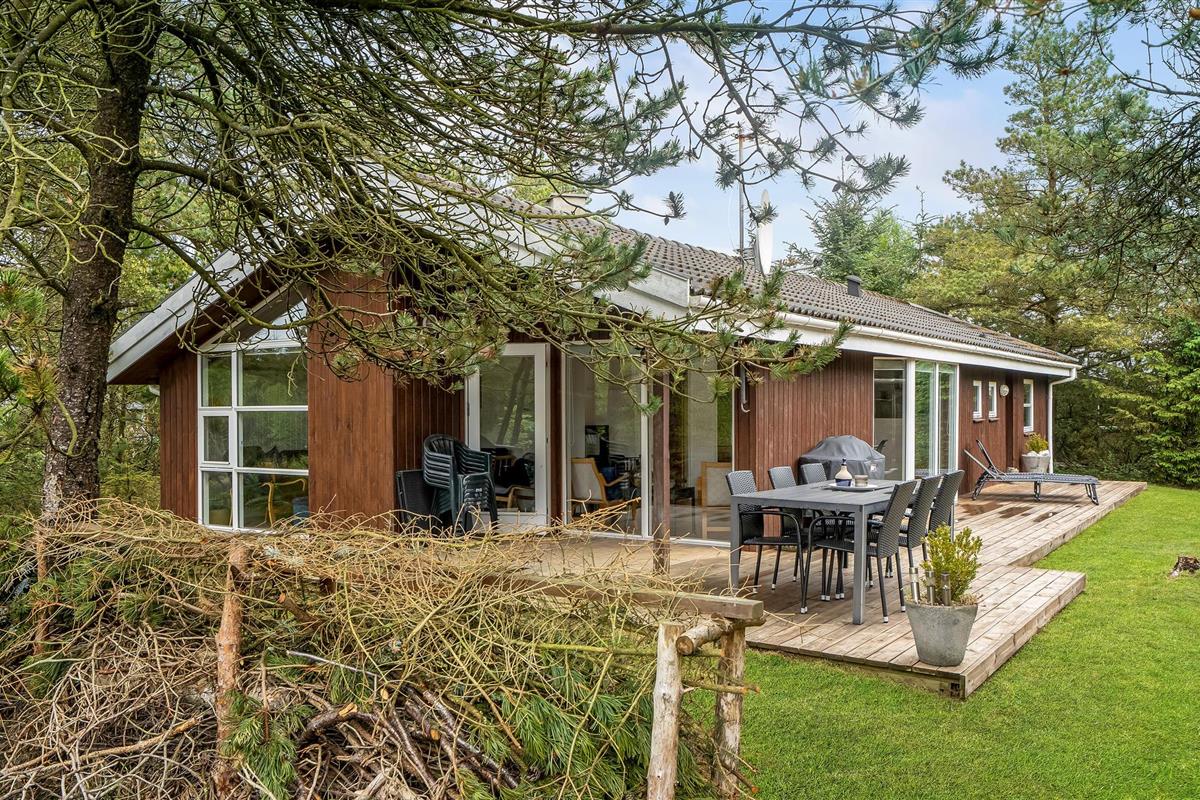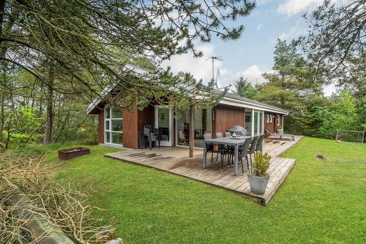 Mooi vakantiehuis op een afgesloten en beschut perceel. Op het grote terras achter het huis kunt u genieten van de natuur en het zomerleven zonder gestoord te worden door voorbijgangers en buren. Het huis is zeer praktisch ingericht en heeft zijn oorspronkelijke stijl uit de jaren '90 behouden. Buiten het seizoen kunt u het uzelf comfortabel maken bij de houtkachel of het hele jaar door ontspannen in de sauna en jacuzzi. De vier goede slaapkamers van het huis bieden voldoende ruimte voor twee gezinnen, een gezin met meerdere generaties of goede vrienden die samen van de vakantie willen genieten.Jammerbucht met zijn geweldige heuvellandschap nodigt uit tot verfrissende wandelingen met een prachtig uitzicht vanaf de "toppen". De enorme natuurkrachten die de Jammerbucht hebben doen ontstaan, hebben ook de imposante duinformaties opgeleverd die grenzen aan het 54 km lange zandstrand. Geniet daarom van het heerlijke zwemleven op de prachtige zandstranden tussen Bulbjerg en Blokhus. Neem uw badhanddoek en zonnebrandcrème onder de arm en zoek een mooi zonnig plekje op het strand. Als het te warm wordt, bieden de aanstormende golven verkoeling, want de waterkwaliteit is hier uitstekend.