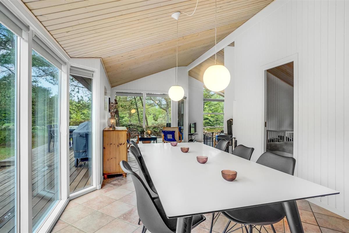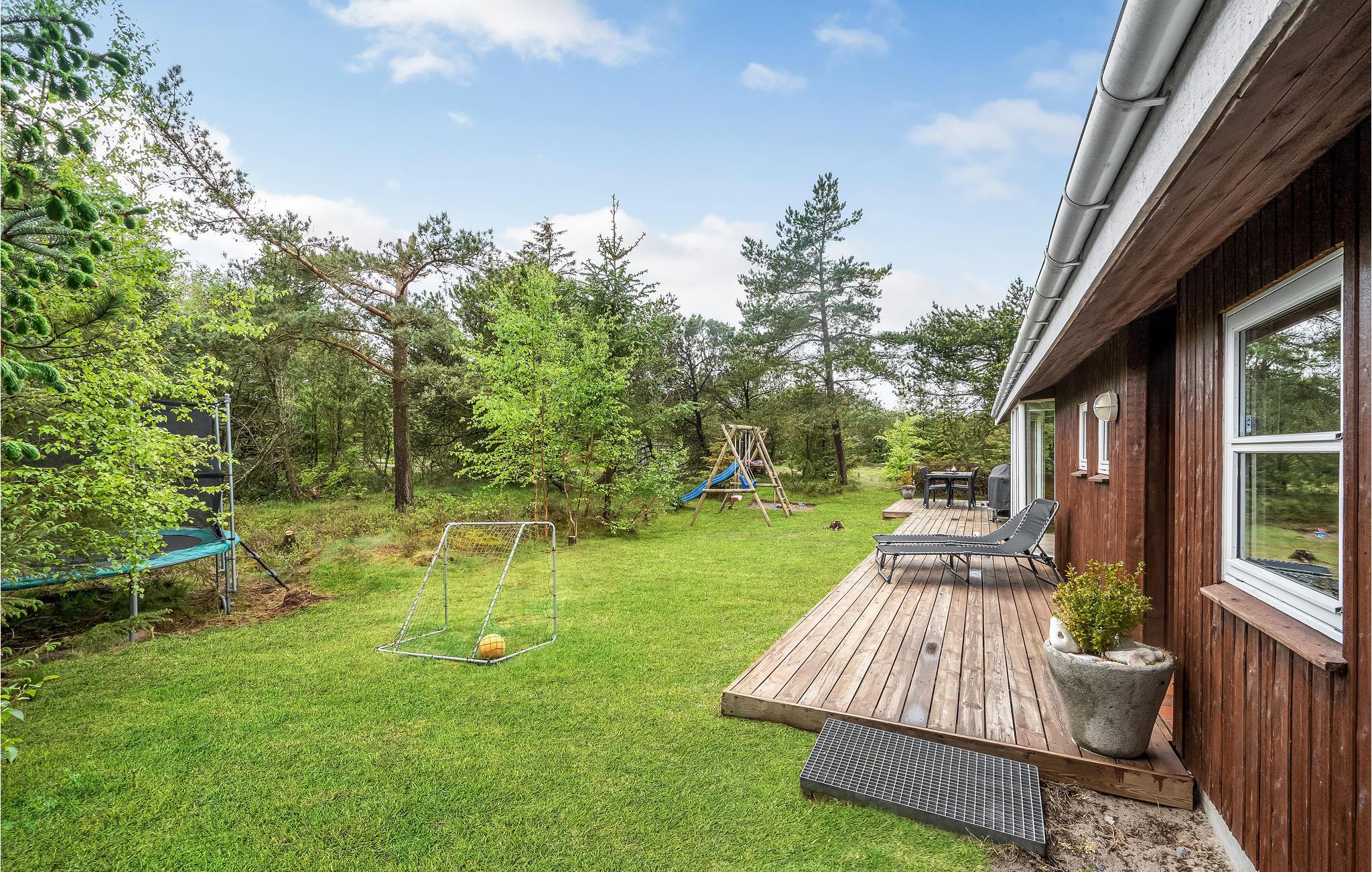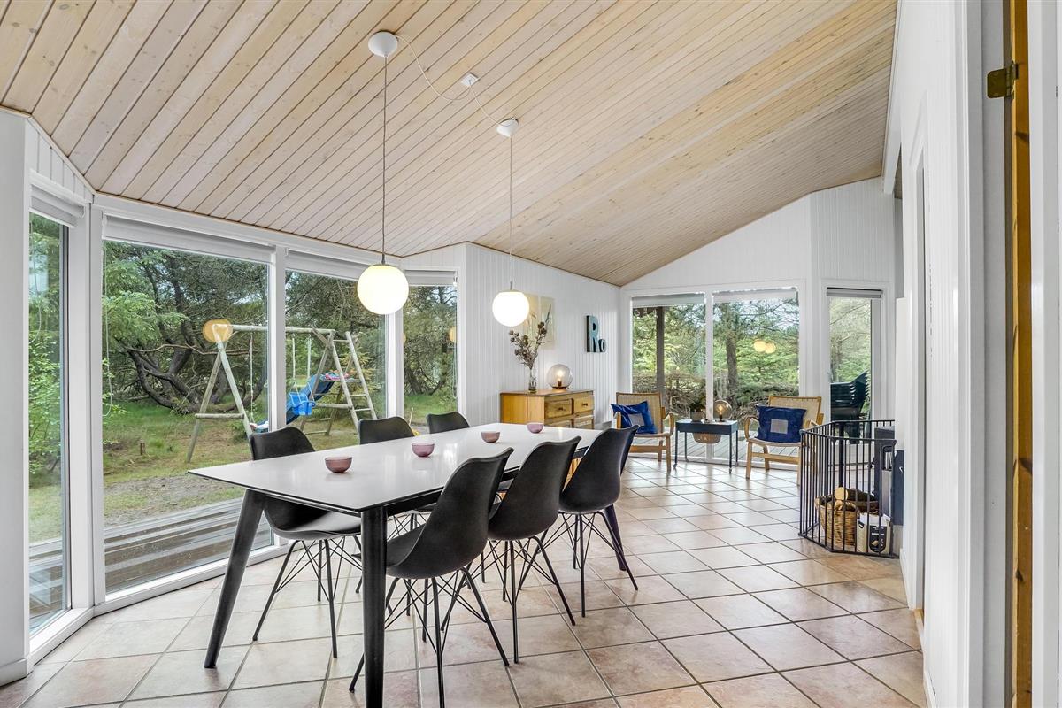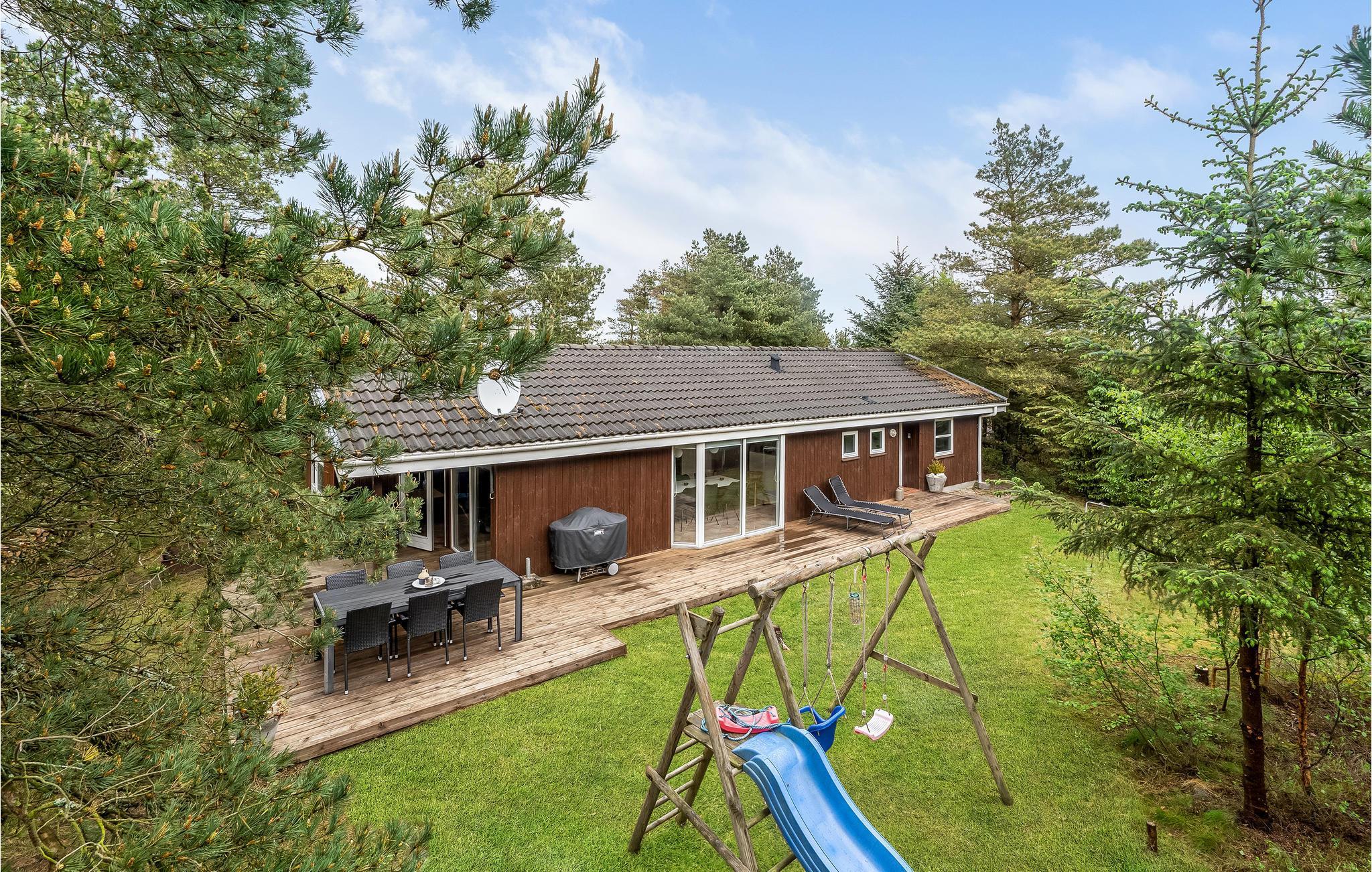 Mooi vakantiehuis op een afgesloten en beschut perceel. Op het grote terras achter het huis kunt u genieten van de natuur en het zomerleven zonder gestoord te worden door voorbijgangers en buren. Het huis is zeer praktisch ingericht en heeft zijn oorspronkelijke stijl uit de jaren '90 behouden. Buiten het seizoen kunt u het uzelf comfortabel maken bij de houtkachel of het hele jaar door ontspannen in de sauna en jacuzzi. De vier goede slaapkamers van het huis bieden voldoende ruimte voor twee gezinnen, een gezin met meerdere generaties of goede vrienden die samen van de vakantie willen genieten.Jammerbucht met zijn geweldige heuvellandschap nodigt uit tot verfrissende wandelingen met een prachtig uitzicht vanaf de "toppen". De enorme natuurkrachten die de Jammerbucht hebben doen ontstaan, hebben ook de imposante duinformaties opgeleverd die grenzen aan het 54 km lange zandstrand. Geniet daarom van het heerlijke zwemleven op de prachtige zandstranden tussen Bulbjerg en Blokhus. Neem uw badhanddoek en zonnebrandcrème onder de arm en zoek een mooi zonnig plekje op het strand. Als het te warm wordt, bieden de aanstormende golven verkoeling, want de waterkwaliteit is hier uitstekend.