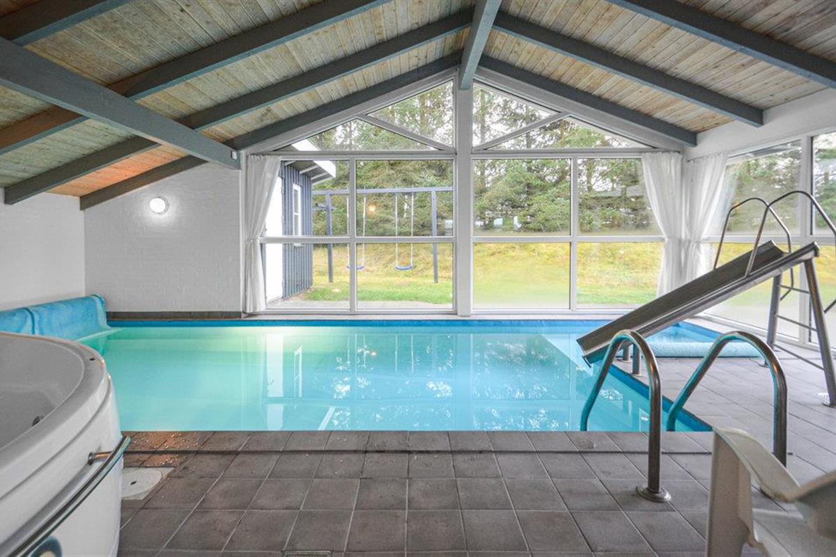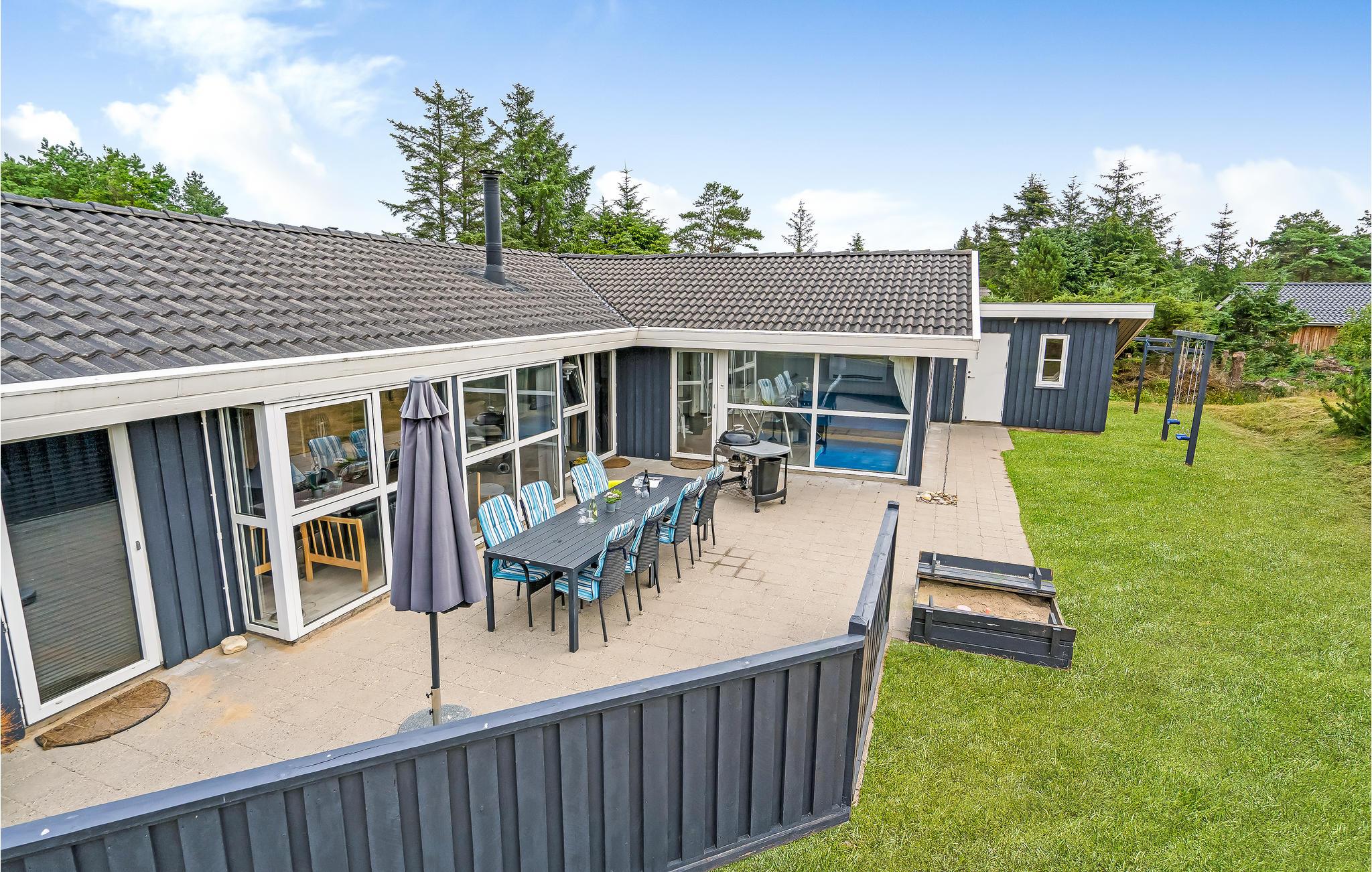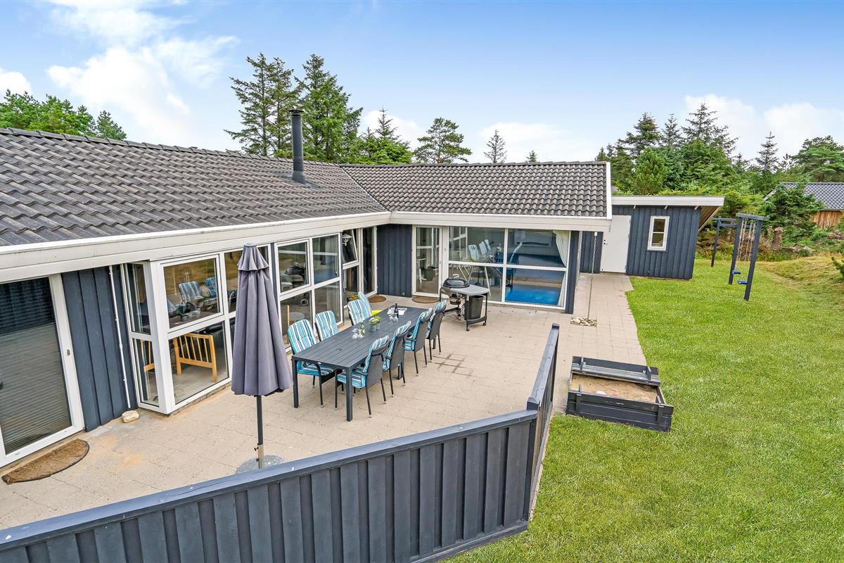 Omgeven door bos, heide en duinen ligt het gezellige vissersdorp Torup, niet ver van het enorme Bulbjerg-duin. Op deze locatie is het vakantiehuis een uitstekende uitvalsbasis voor een rustige vakantie, rustig gelegen aan het einde van een doodlopende straat. De mooie woonkamer staat in open verbinding met de keuken en de eethoek, van waaruit u de kinderen zich kunt zien vermaken in het zwembad met de waterglijbaan en in het kinderbad. Er is ook een kinderbad voor kleine kinderen. Het zwembad wordt verwarmd door een luchtwarmtepomp. Relaxen op het terras, of liever een partijtje petanque?