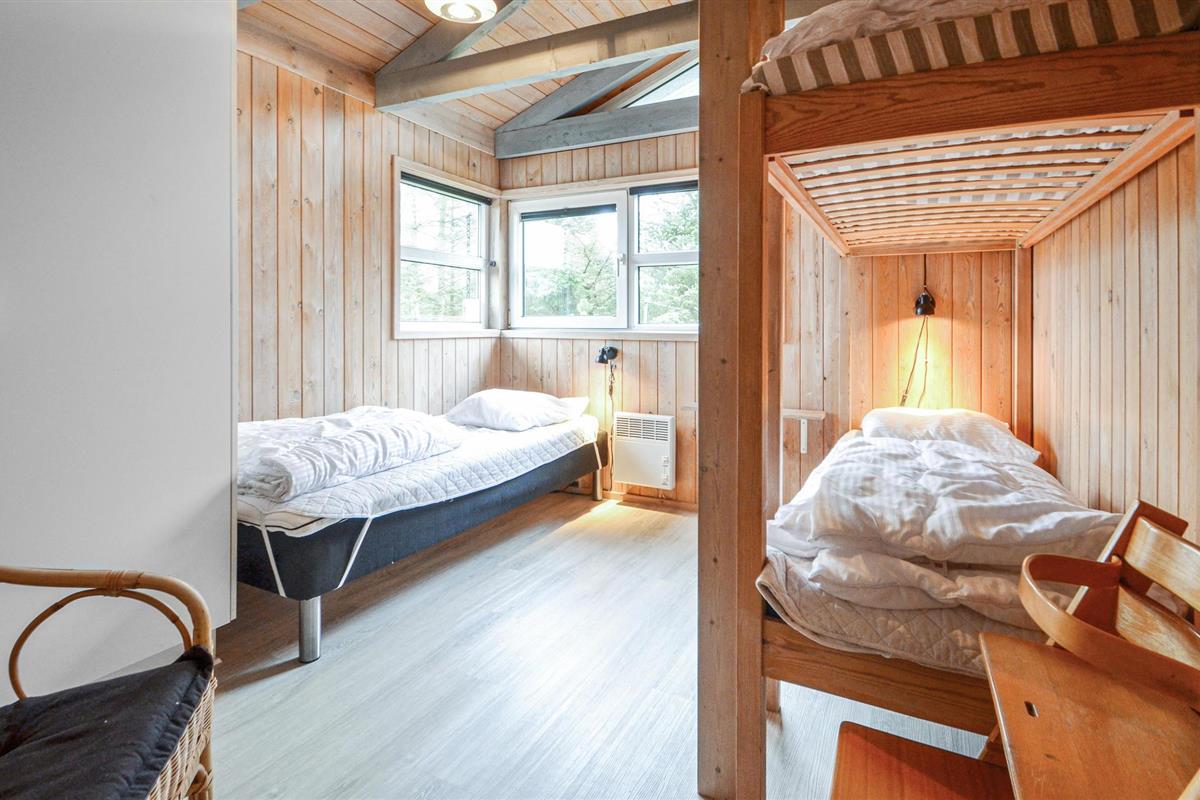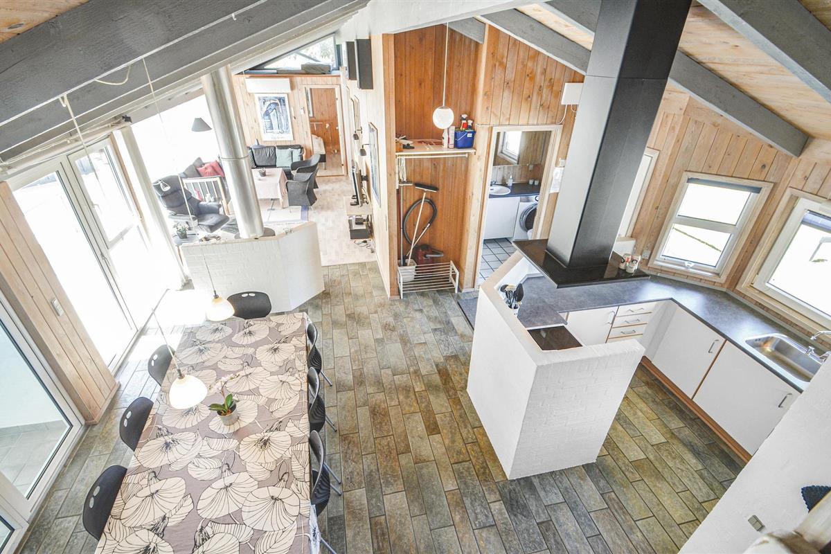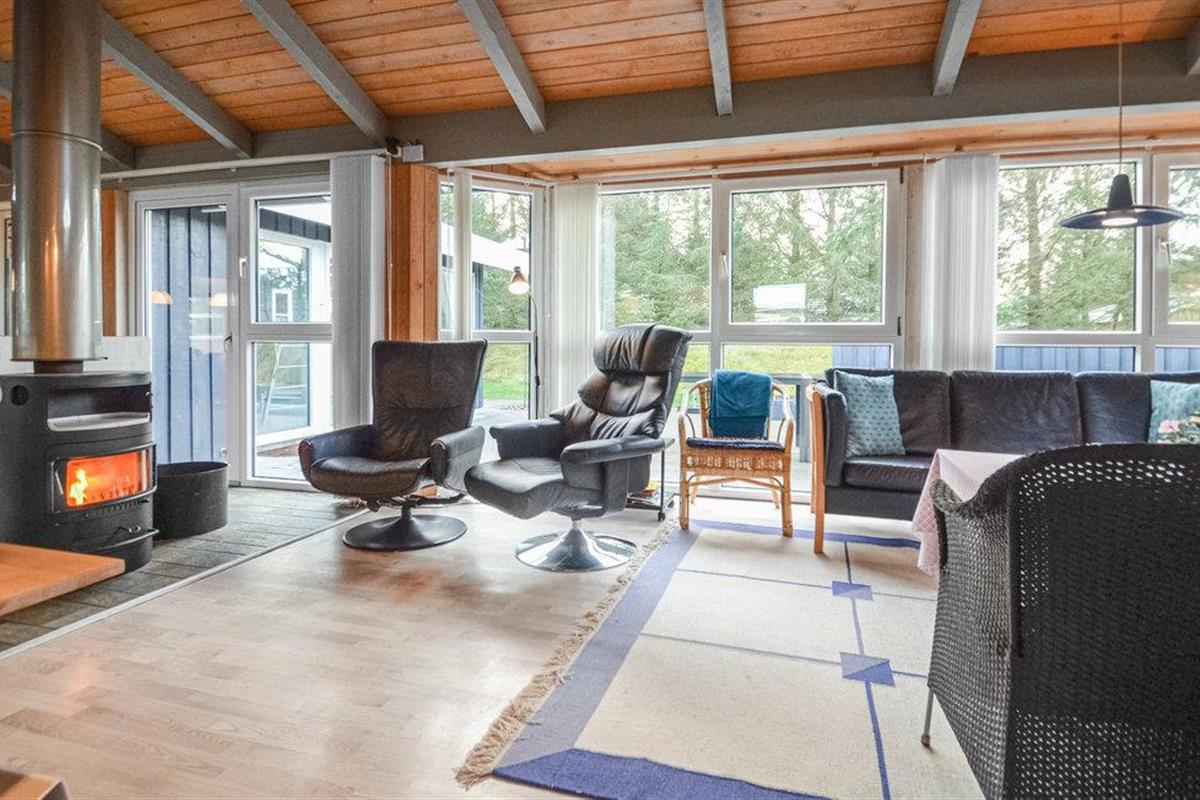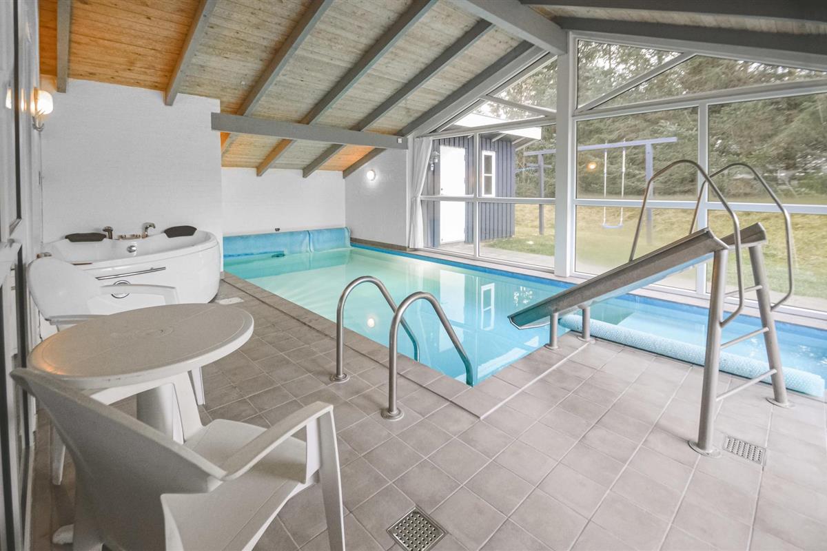 Omgeven door bos, heide en duinen ligt het gezellige vissersdorp Torup, niet ver van het enorme Bulbjerg-duin. Op deze locatie is het vakantiehuis een uitstekende uitvalsbasis voor een rustige vakantie, rustig gelegen aan het einde van een doodlopende straat. De mooie woonkamer staat in open verbinding met de keuken en de eethoek, van waaruit u de kinderen zich kunt zien vermaken in het zwembad met de waterglijbaan en in het kinderbad. Er is ook een kinderbad voor kleine kinderen. Het zwembad wordt verwarmd door een luchtwarmtepomp. Relaxen op het terras, of liever een partijtje petanque?
