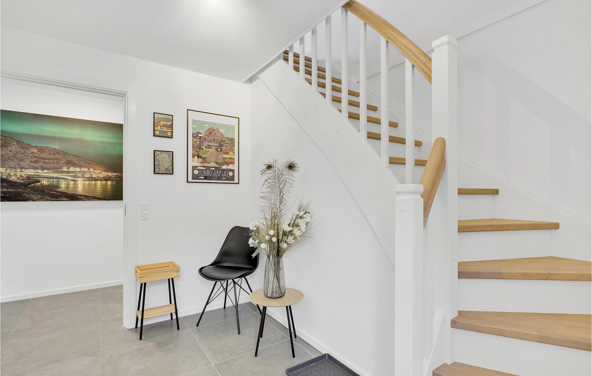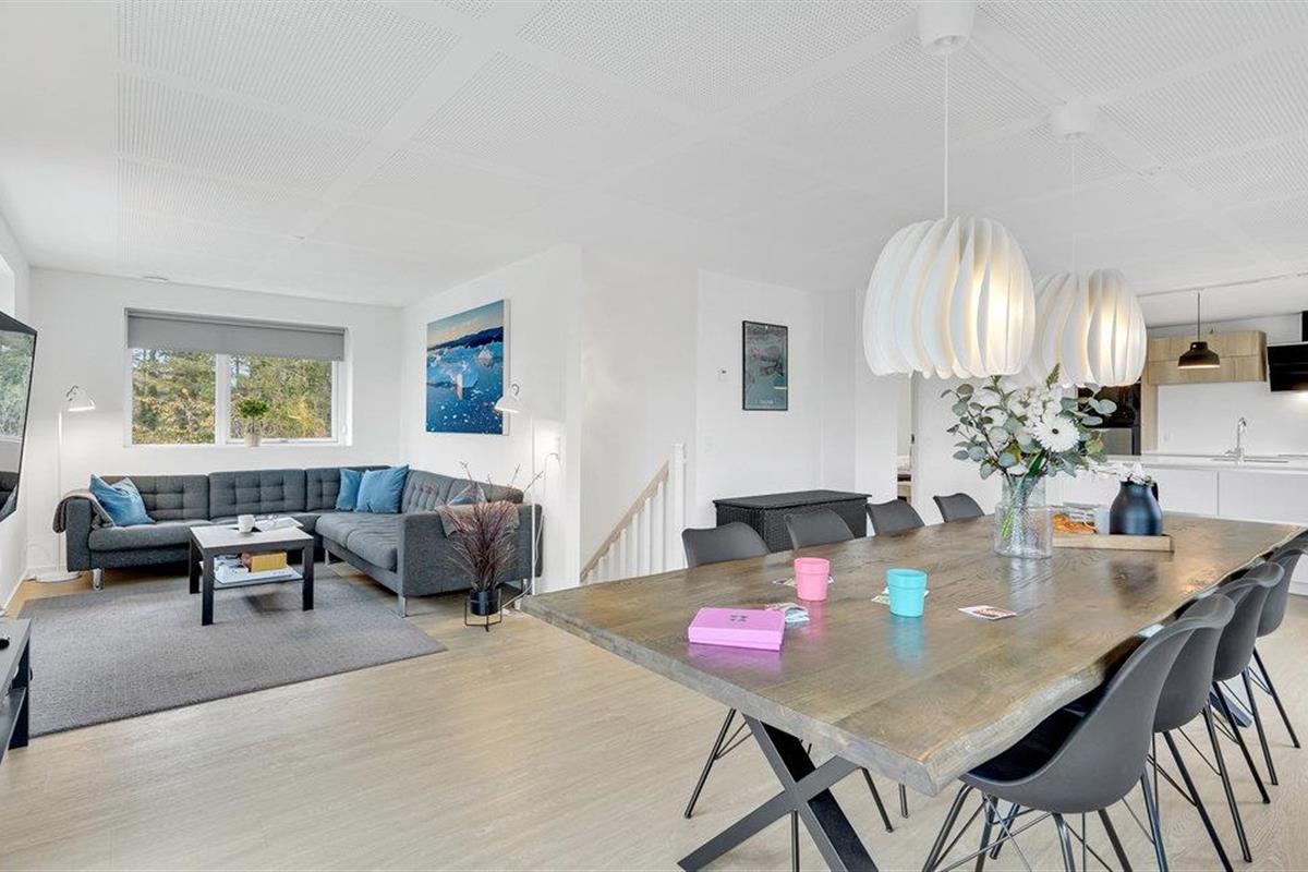 Dit ongelooflijk ruime vakantiehuis heeft twee verdiepingen en biedt plaats aan maximaal 8 personen, met 4 slaapkamers en 2 badkamers. Boven vindt u een grote open woonkamer met eetkamer, keuken en bankstel, evenals toegang tot een balkon waar u kunt uitkijken over het omringende landschap en de zee terwijl u van de zon geniet. Op de begane grond vindt u drie van de slaapkamers, evenals toegang tot het terras waar een Fins houten bad op u wacht, evenals een barbecue en open haard voor aangename en heerlijke dagen.