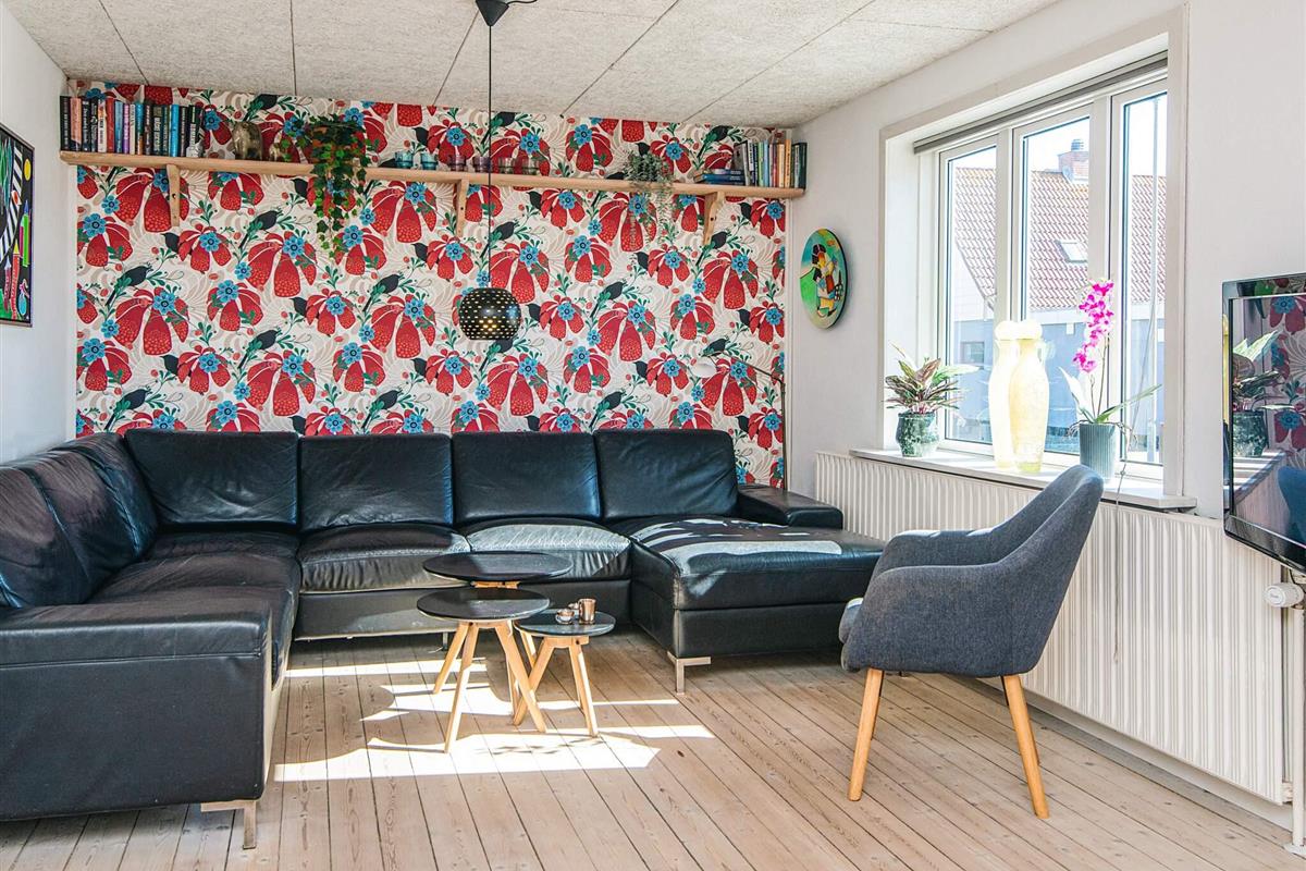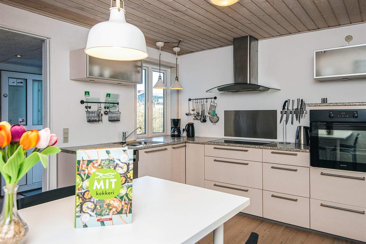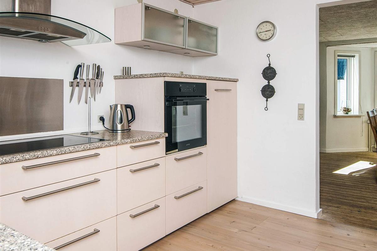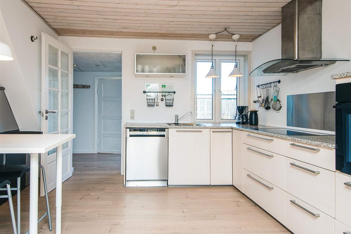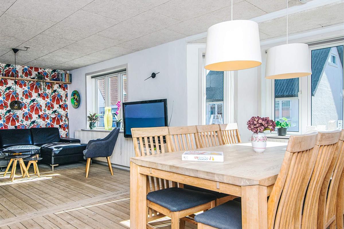 Im geräumigen Haus offener Küchen-/Wohnbereich mit WLAN, TV und Chromecast zum Streamen sowie deutsche und dänische Sender zur Auswahl. Badezimmer mit Dusche/WC und angenehmer Fußbodenheizung. Die Küche ist u.a. mit Mikrowelle und Geschirrspülmaschine ausgestattet. Es gibt auch vier Schlafzimmer im Haus, alle mit jeweils einem Doppelbett eingerichtet. Die Treppe in die obere Etage ist steil.
