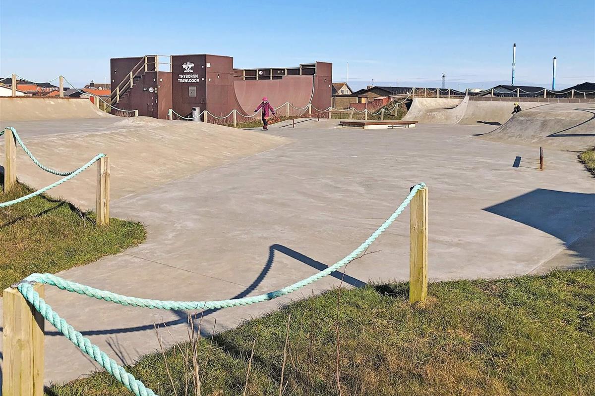 Darüber hinaus bietet Thyborøn einen Skatepark, ein Surfzentrum mit Ausrüstungsverleih und Tageskursen, einen Rasenplatz für Fußball, Schlagball und vieles mehr sowie einen Spielplatz (gleich um die Ecke vom Ferienhaus) mit Klettertürmen, einem Ballspielplatz und Spielgeräten. Alles ist vom Haus aus zu Fuß erreichbar. Nicht für Jugendgruppen mietbar.