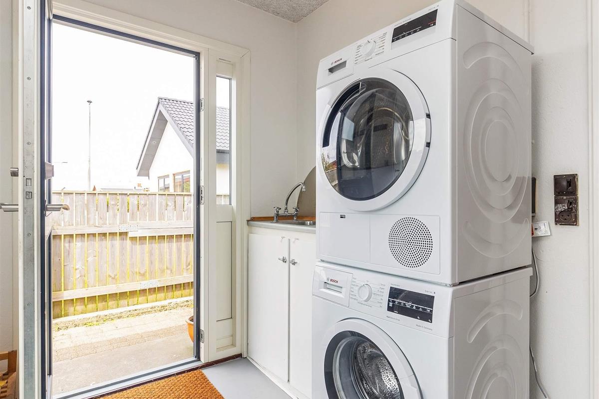 Das Haus ist hell und einladend und praktisch eingerichtet und verfügt über eine offene Wohnküche. Das Wohnzimmer bietet bequeme Möbel, kostenloses Internet und einen Flachbildfernseher mit Chromecast, auf dem Sie Ihre eigenen Fernsehprogramme streamen können. Die Küche verfügt über einen Cerankochfeld, einen Wasserkocher, einen Geschirrspüler und einen Kühlschrank. Es gibt ein helles Badezimmer mit Badewanne, Dusche und Fußbodenheizung. Es gibt sowohl eine Waschmaschine als auch einen Trockner.