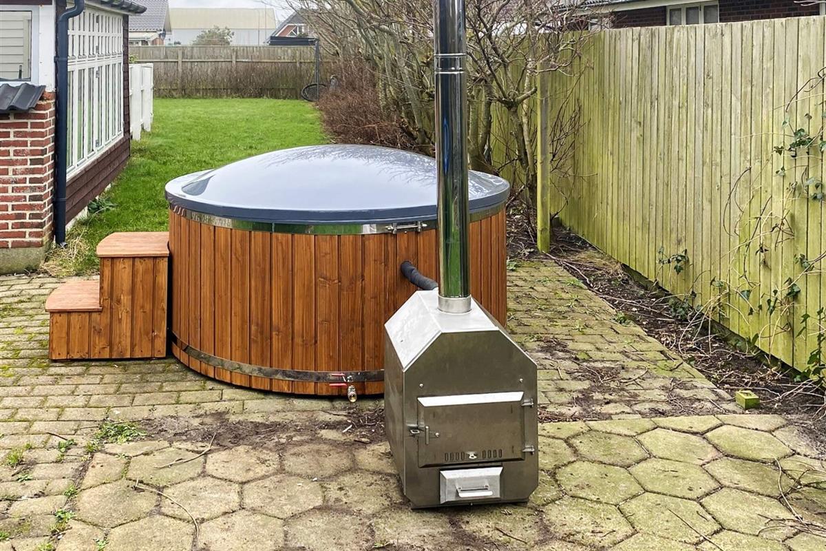 Auf der Terrasse befindet sich auch das brandneue Wildnisbad des Hauses für 6 Personen, das mit Brennholz beheizt wird. Brennholz kann vor Ort erworben werden.