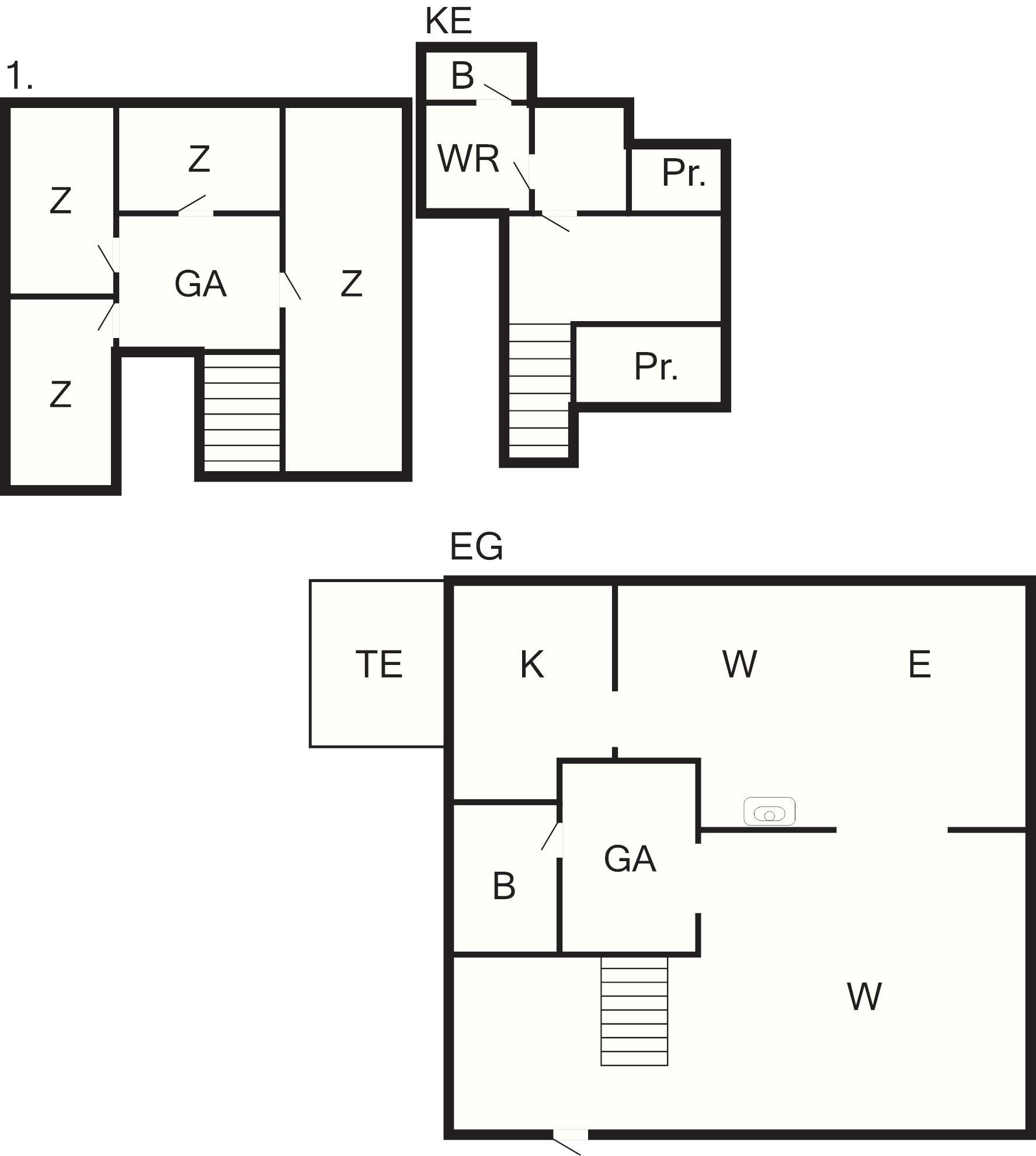 4 Schlafz.: (1DB)+(3B)+(1B)+(2K), Kinderbett
