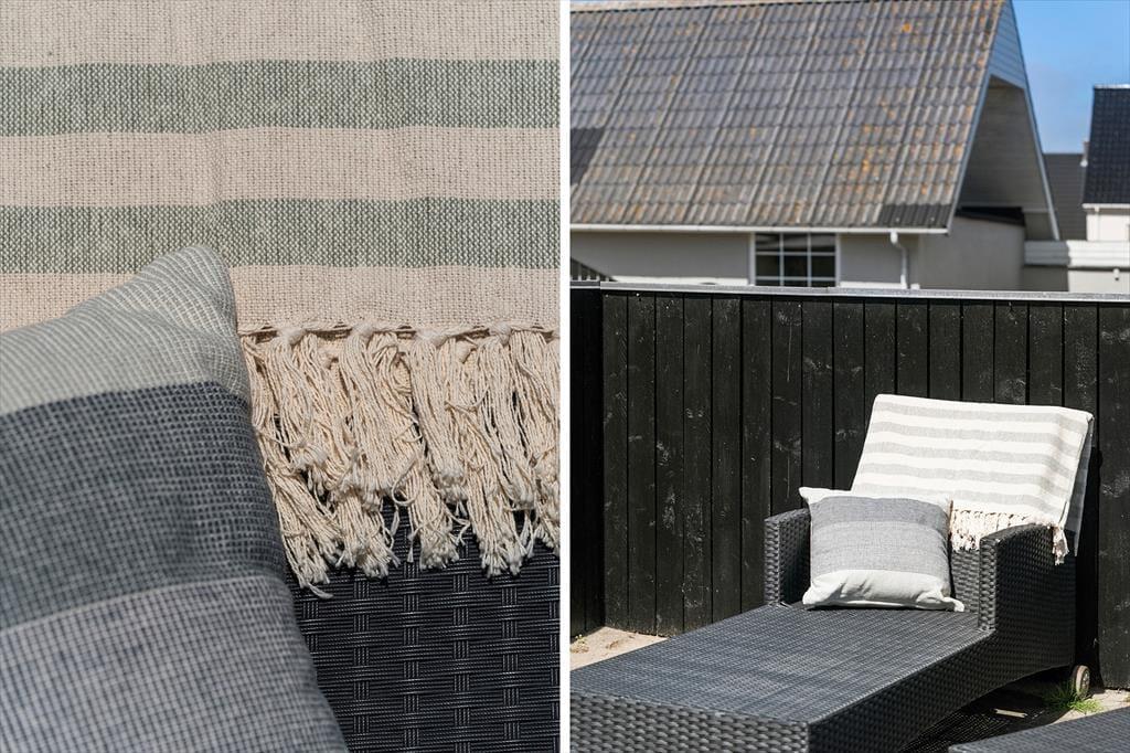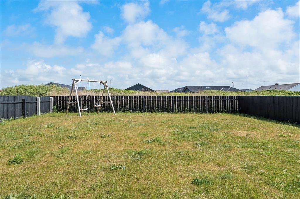 The holiday home's garden is fully enclosed, allowing both children and parents to relax in safe surroundings. There’s a swing and sandbox to encourage hours of outdoor play, and while the little ones dig and swing, the adults can enjoy the sun from the terrace or unwind with a cup of coffee and a view of the peaceful holiday home area. The outdoor space is ideal for both relaxing and spending time together – whether that’s playing ball on the lawn or enjoying a cosy barbecue under the open sky. With the beach just a short walk away, it’s easy to head down for a spontaneous swim, and after a refreshing dip, it’s a joy to return to a holiday home that combines comfort and coziness.