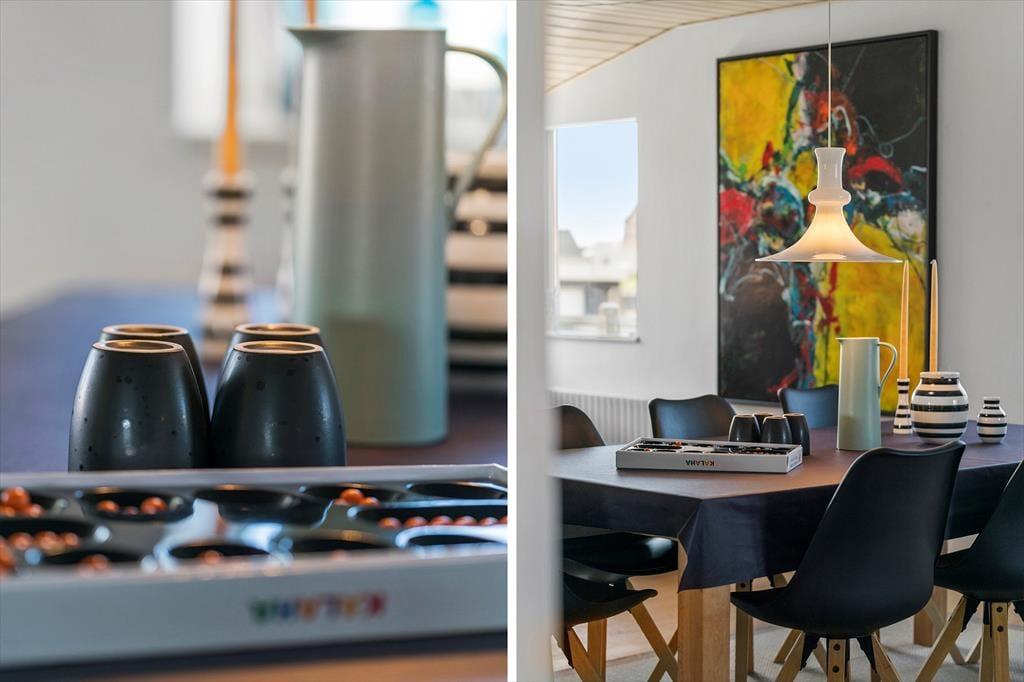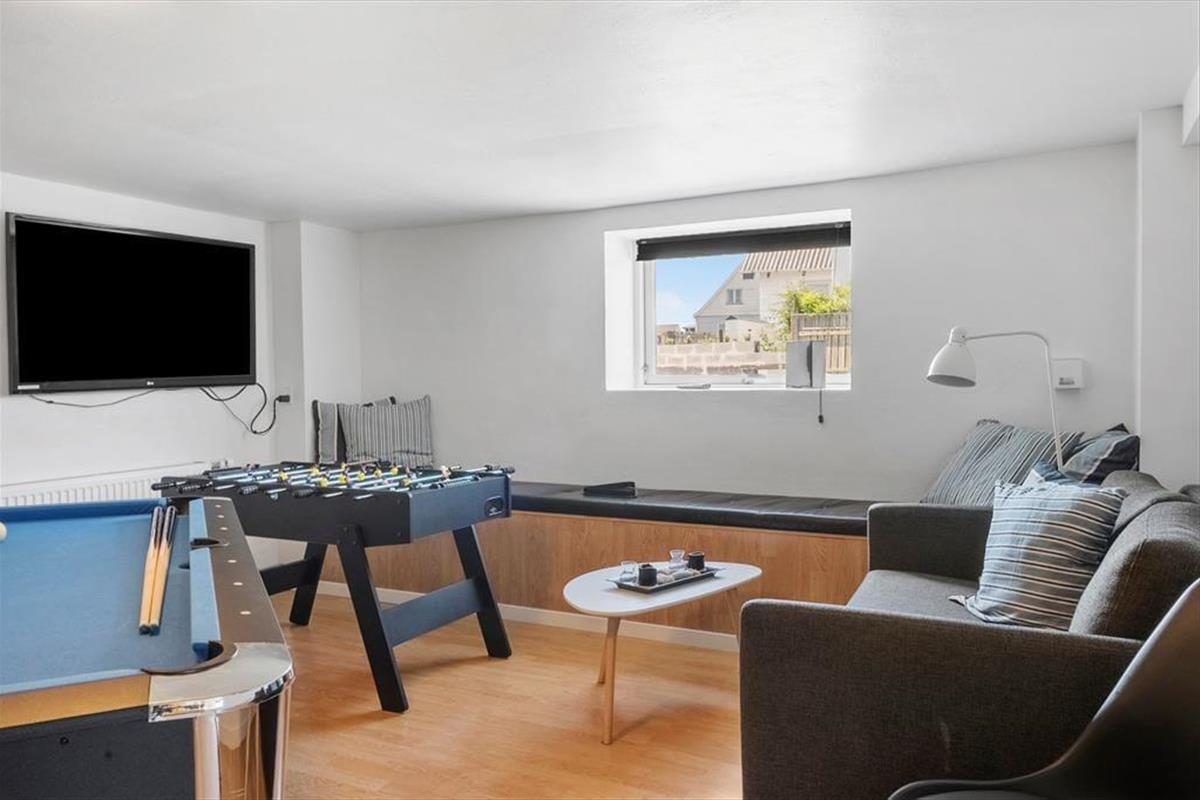 The first thing you’ll notice when stepping into the house is the bright and inviting atmosphere. The interior has been designed with an eye for both aesthetics and functionality, and you’ll instantly feel at home. On the ground floor, you’ll find a lovely kitchen in open connection with the living room – a natural gathering place for cooking, games, and relaxed conversation. Head up the stairs to the first floor, and you’ll discover even more options – including an activity room with both table football and a pool table, sure to delight children and adults alike. The home is decorated in a calm and harmonious style, offering plenty of space for everyone to find a quiet corner or come together for some quality time.