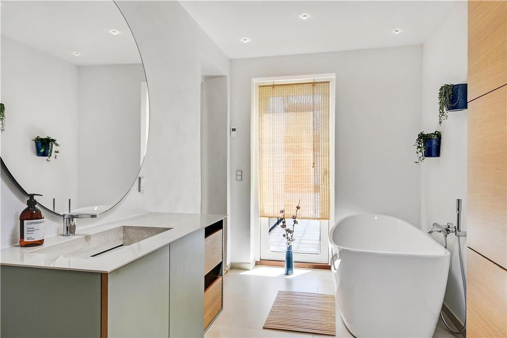 Step inside and you'll be greeted by a holiday home that perfectly balances modern comfort with warmth and personality. The light colours and exposed ceiling beams create an open and welcoming atmosphere, where natural light floods in and highlights the room’s elegant details. The living room is a cosy gathering spot – whether you're playing board games, reading a book, or sipping coffee while gazing out at the waves of the North Sea. The kitchen is in open connection with the living area and is designed to be a natural hub of the home. As an extra treat, one of the bathrooms features a bathtub – perfect for unwinding after a day in the fresh sea air. The entire home is tastefully decorated in a calm and cohesive style, making it easy to settle in and ease into the holiday spirit. And yes – the family dog is of course very welcome here too.