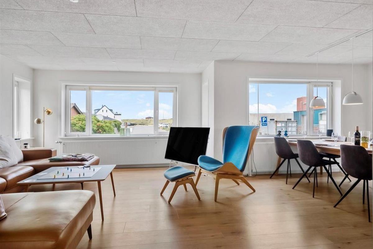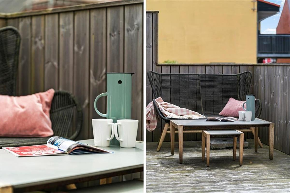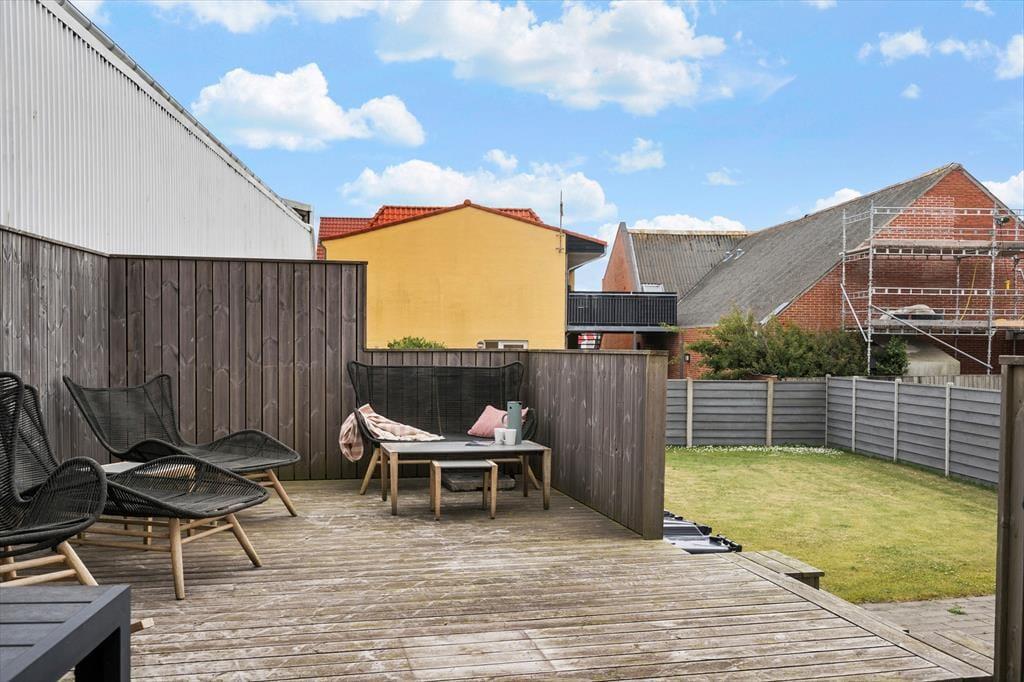 On the lovely terrace, you can lean back and breathe in the fresh West Jutland air while the gentle hum of the town provides a soothing background. From here, you can smell the sea, hear the soft buzz of harbour life, and feel the warmth of the sun on a good day. The terrace is an ideal spot for outdoor meals, and on warm evenings, you can light the grill and stay out until dusk settles over Thyborøn. The various outdoor areas offer space for peace and social moments alike – and the children can easily move between indoors and out depending on their mood. With city life close by, yet in peaceful surroundings, this is the ideal setting for both relaxation and classic holiday cosiness.