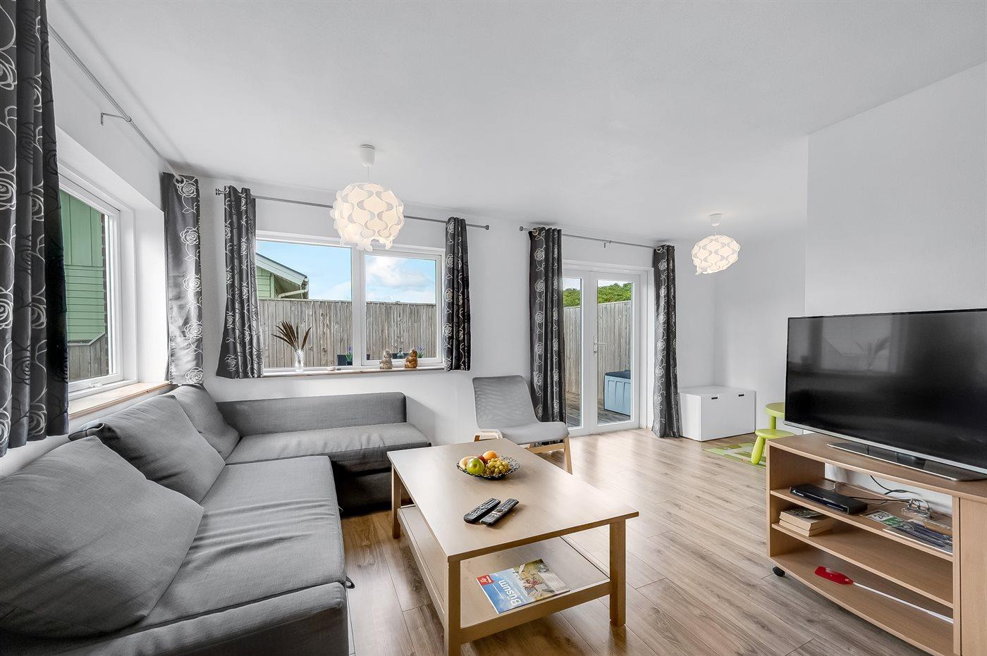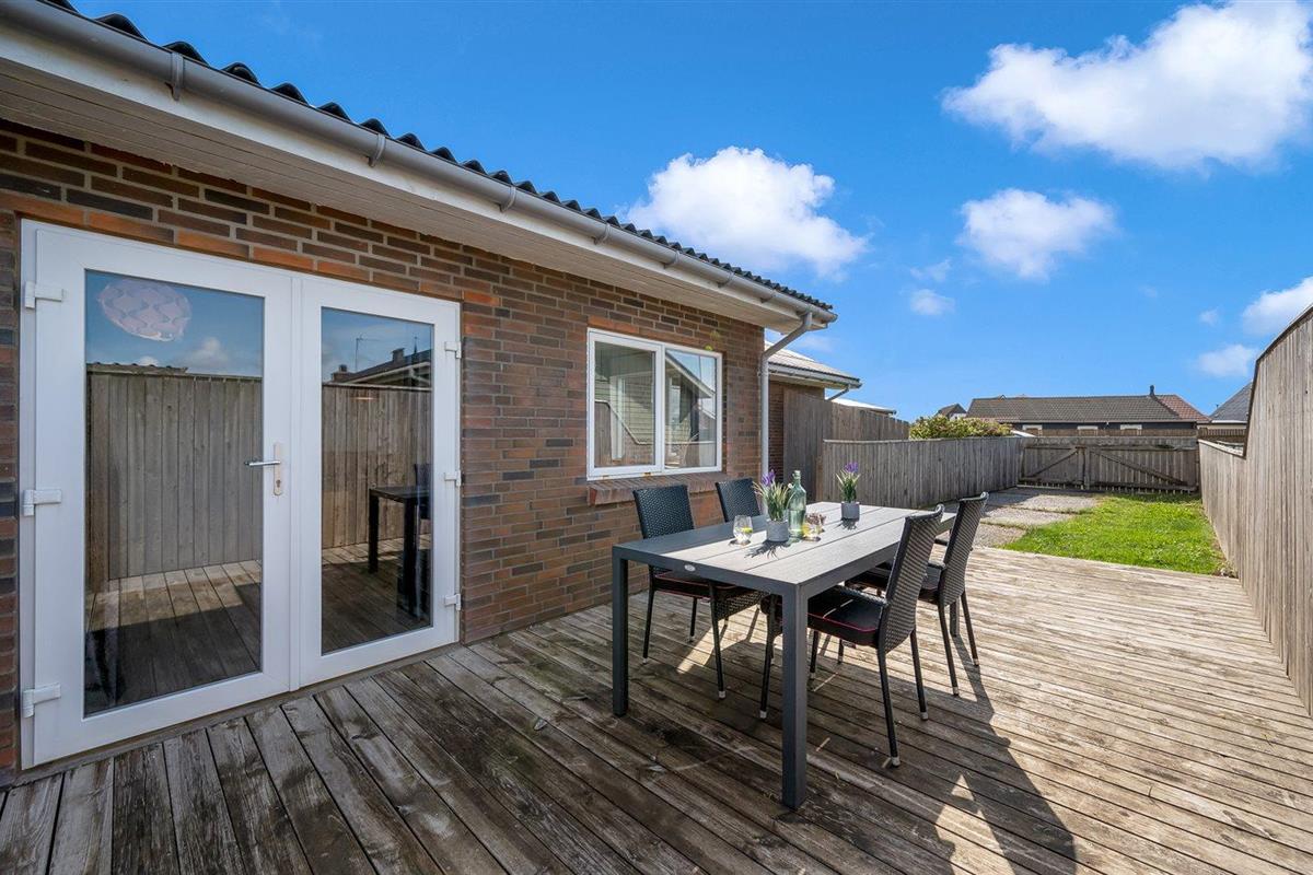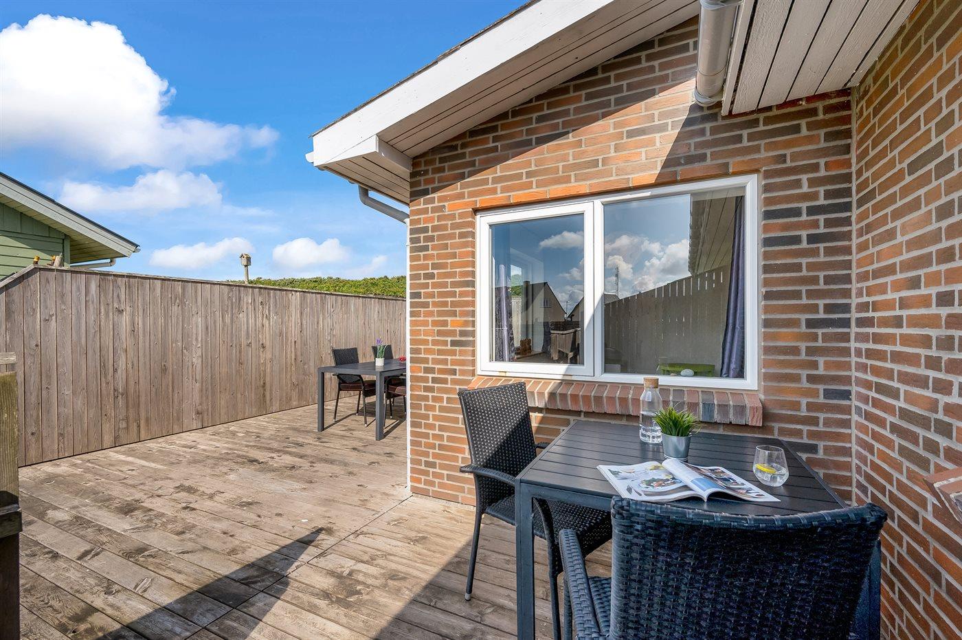 Gezellig vakantiehuis in Thyborøn, op 100 m van zee, met terras, vloerverwarming en gratis wifi.