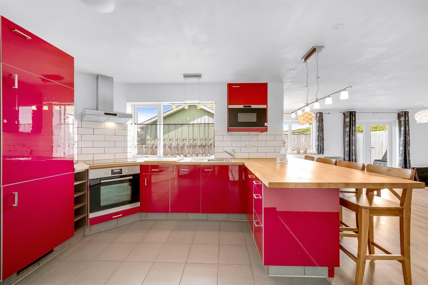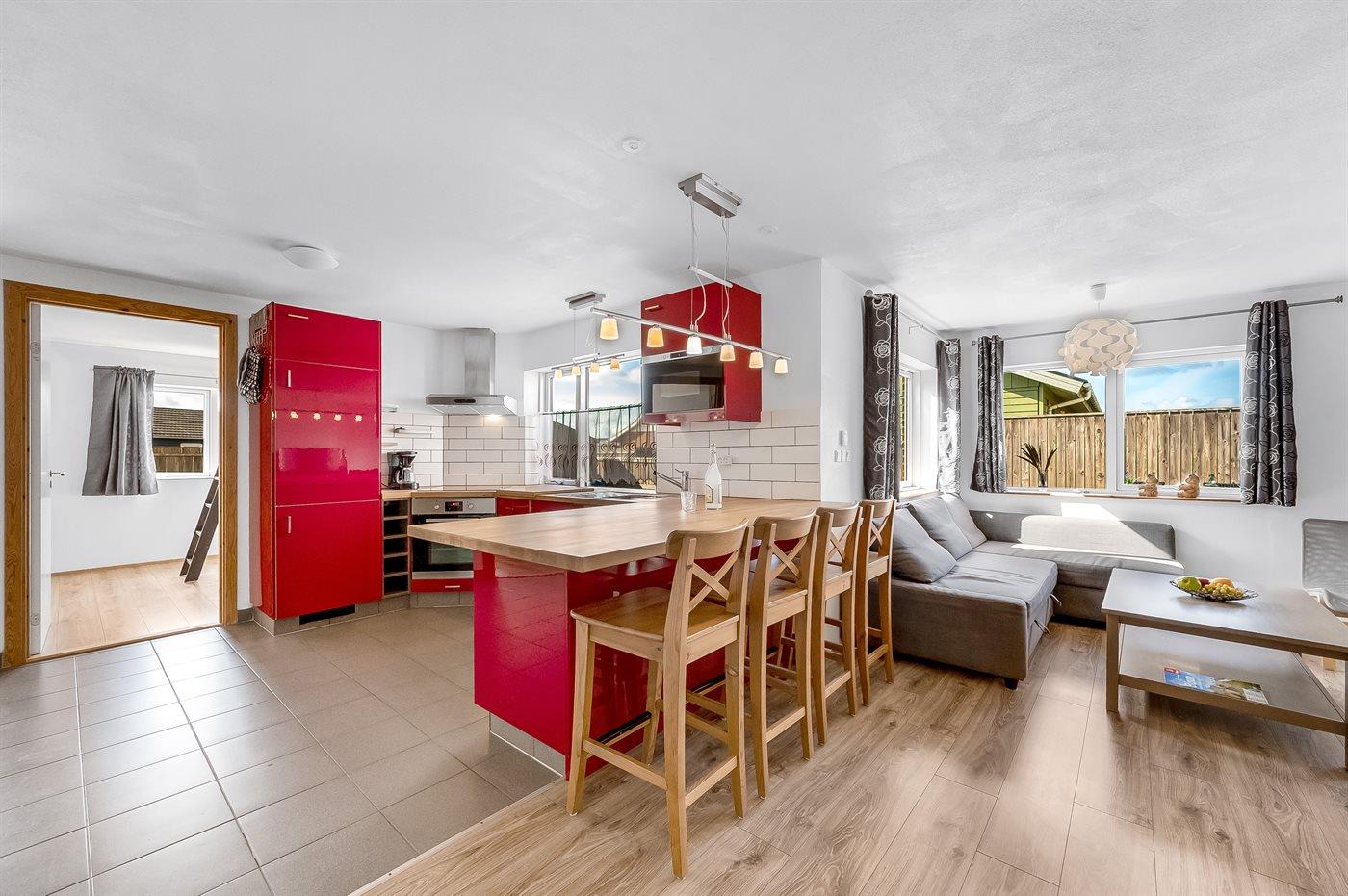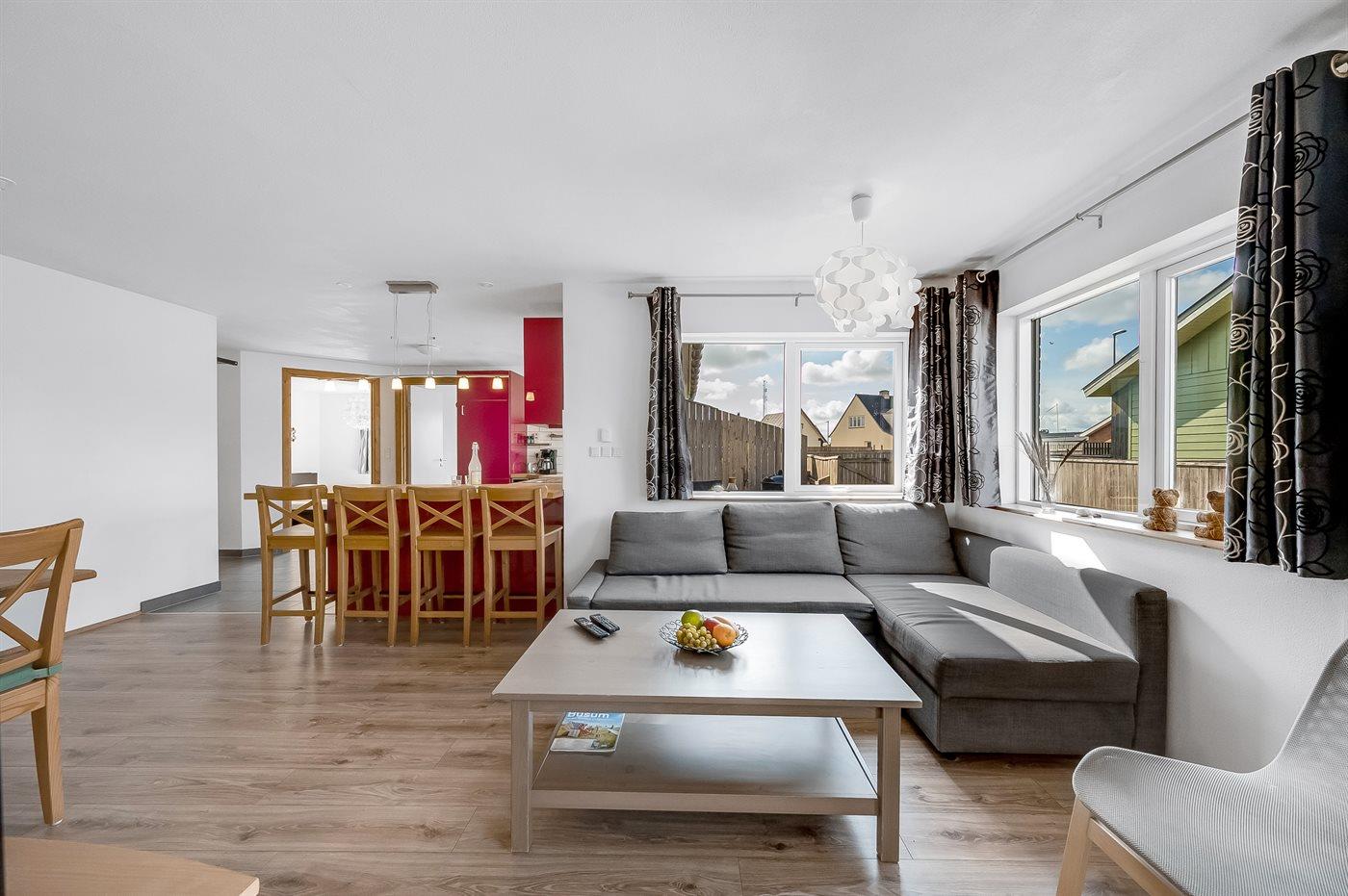 Gezellig vakantiehuis in Thyborøn, op 100 m van zee, met terras, vloerverwarming en gratis wifi.